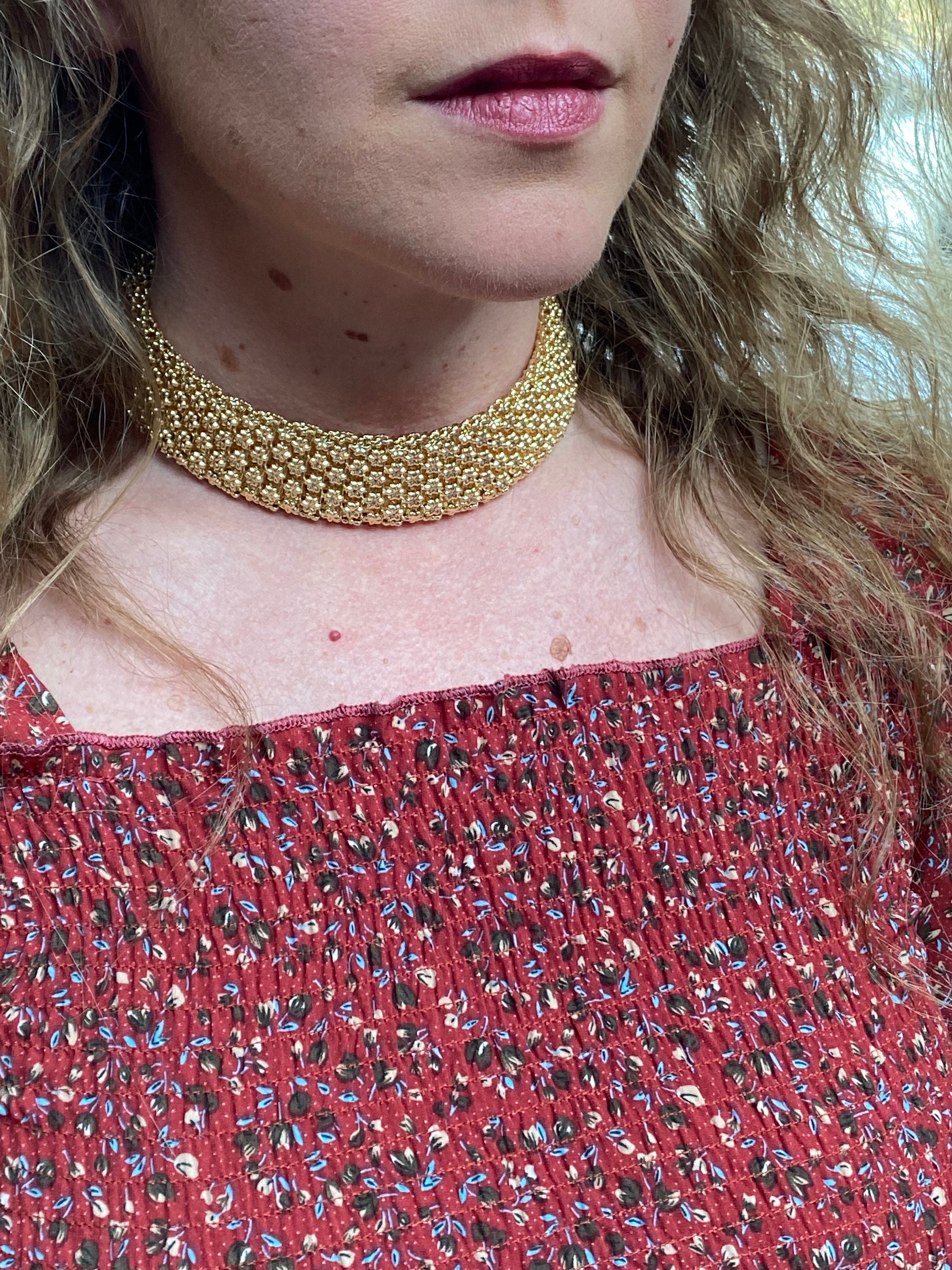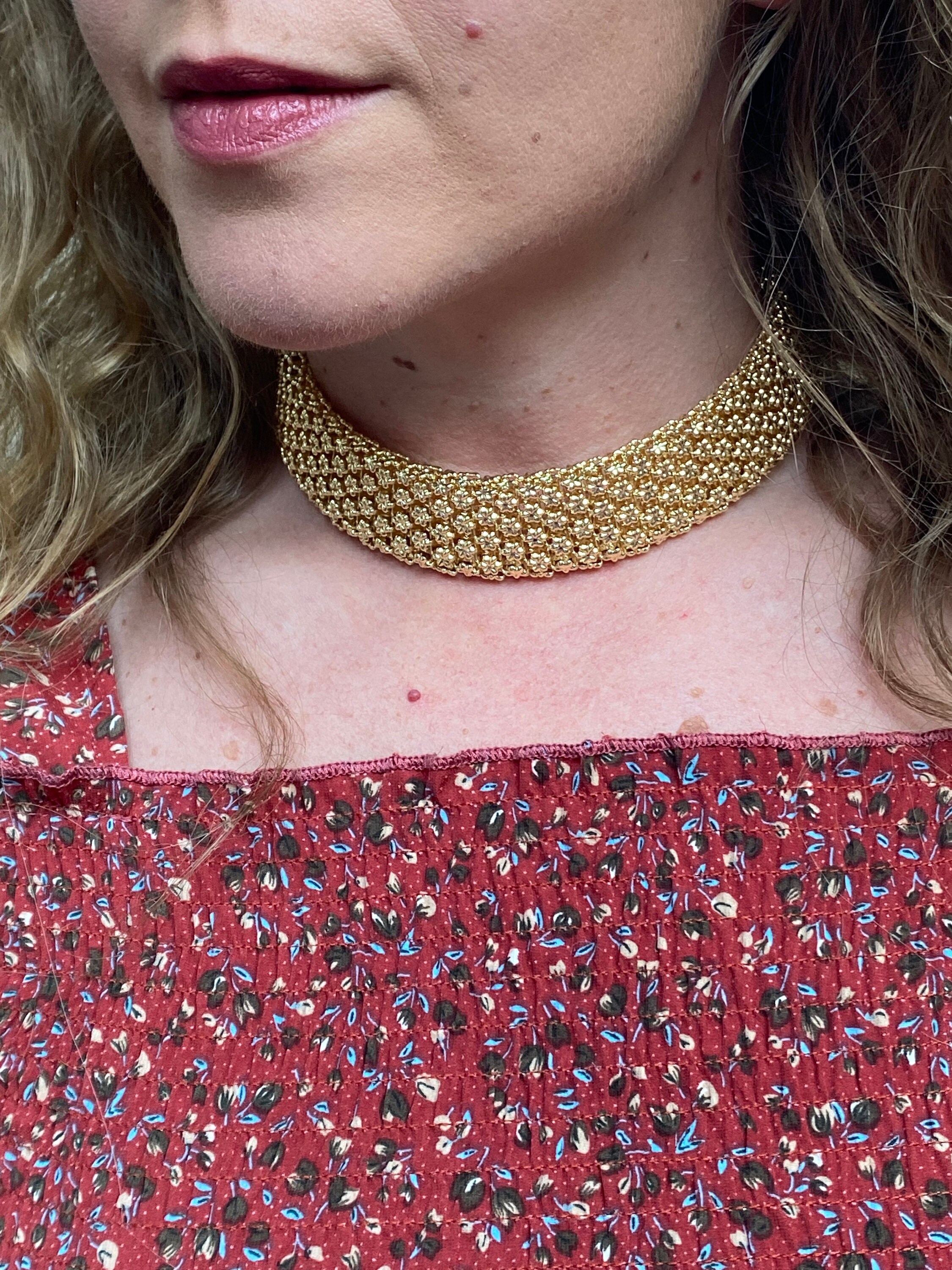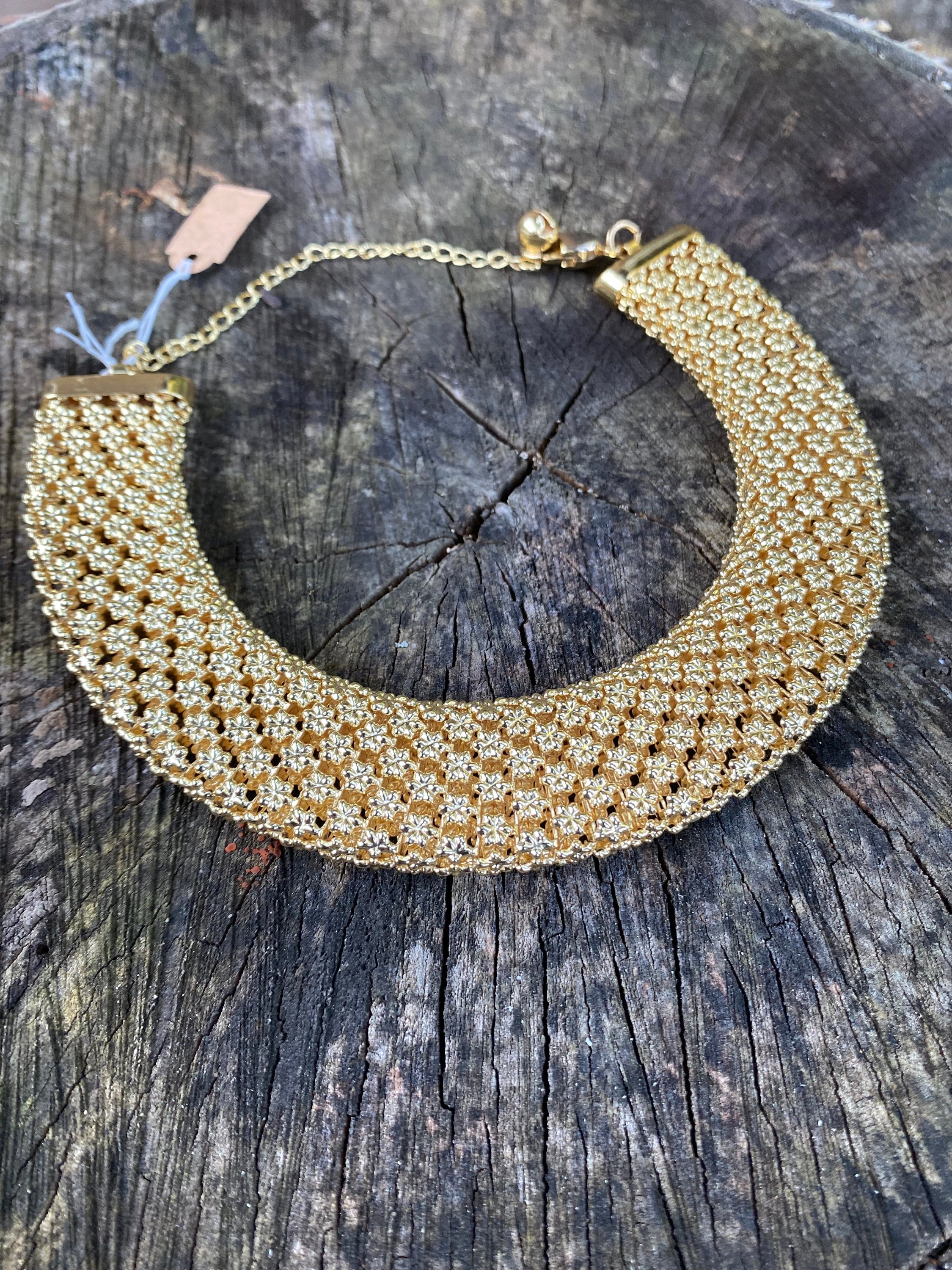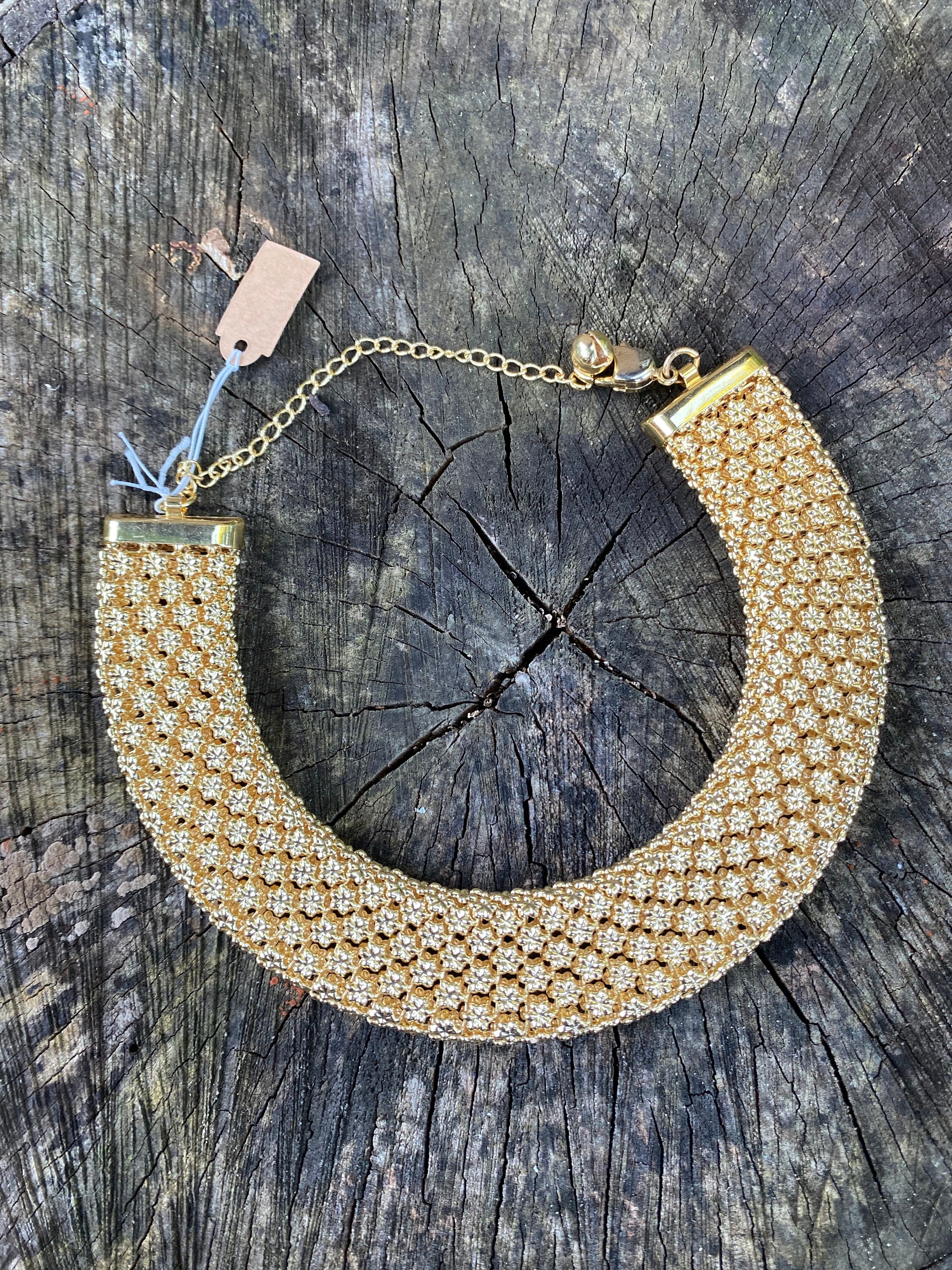 Adjustable length wide vintage choker necklace.