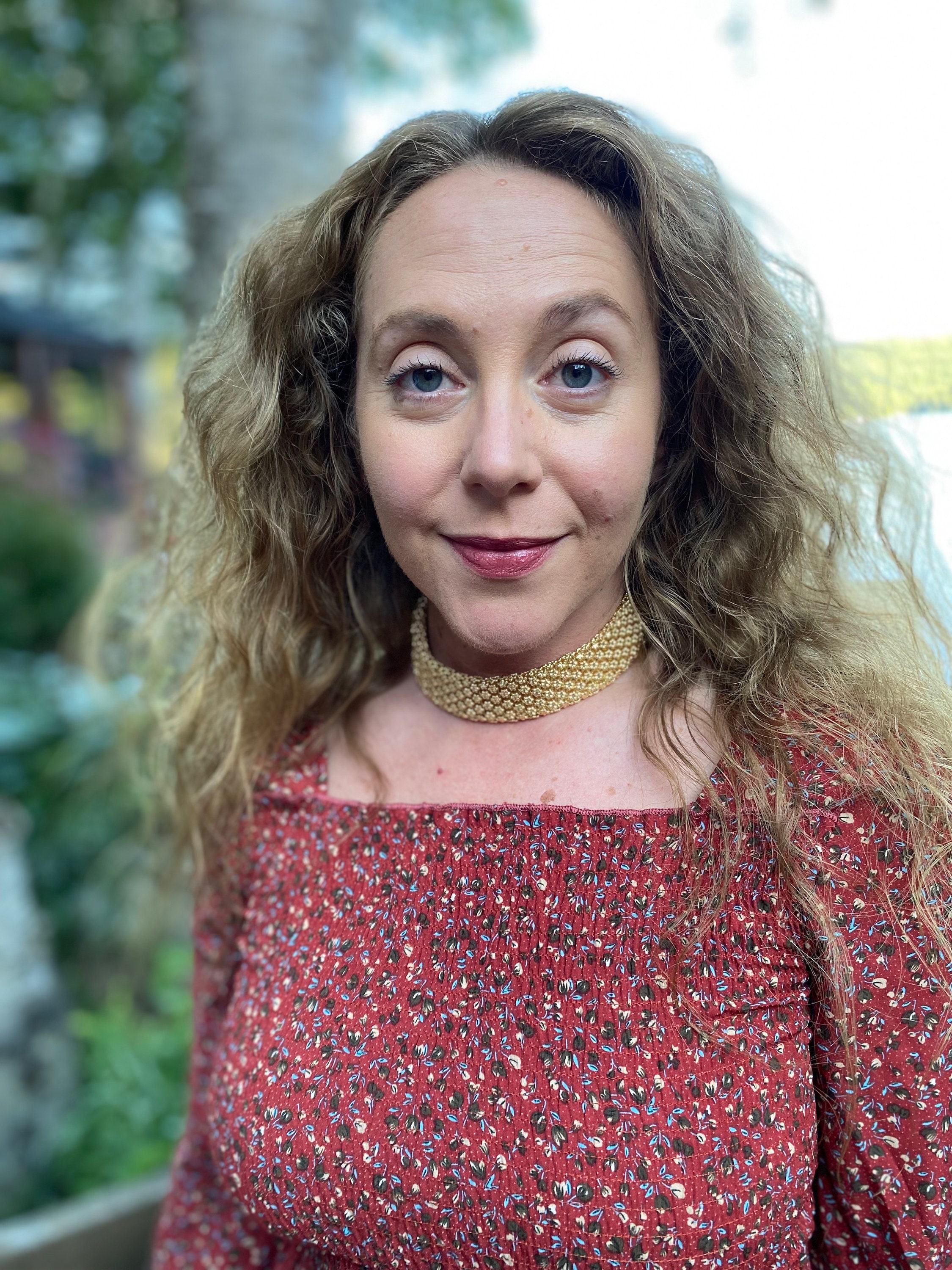 Thick chunky gold choker necklace.