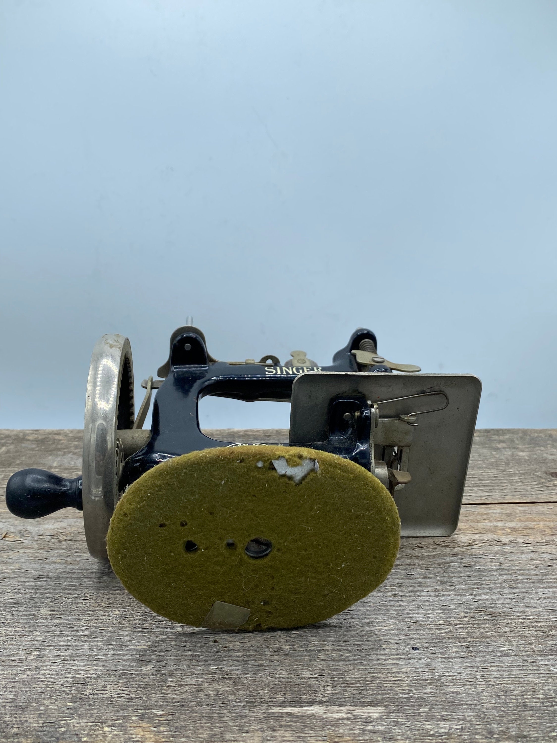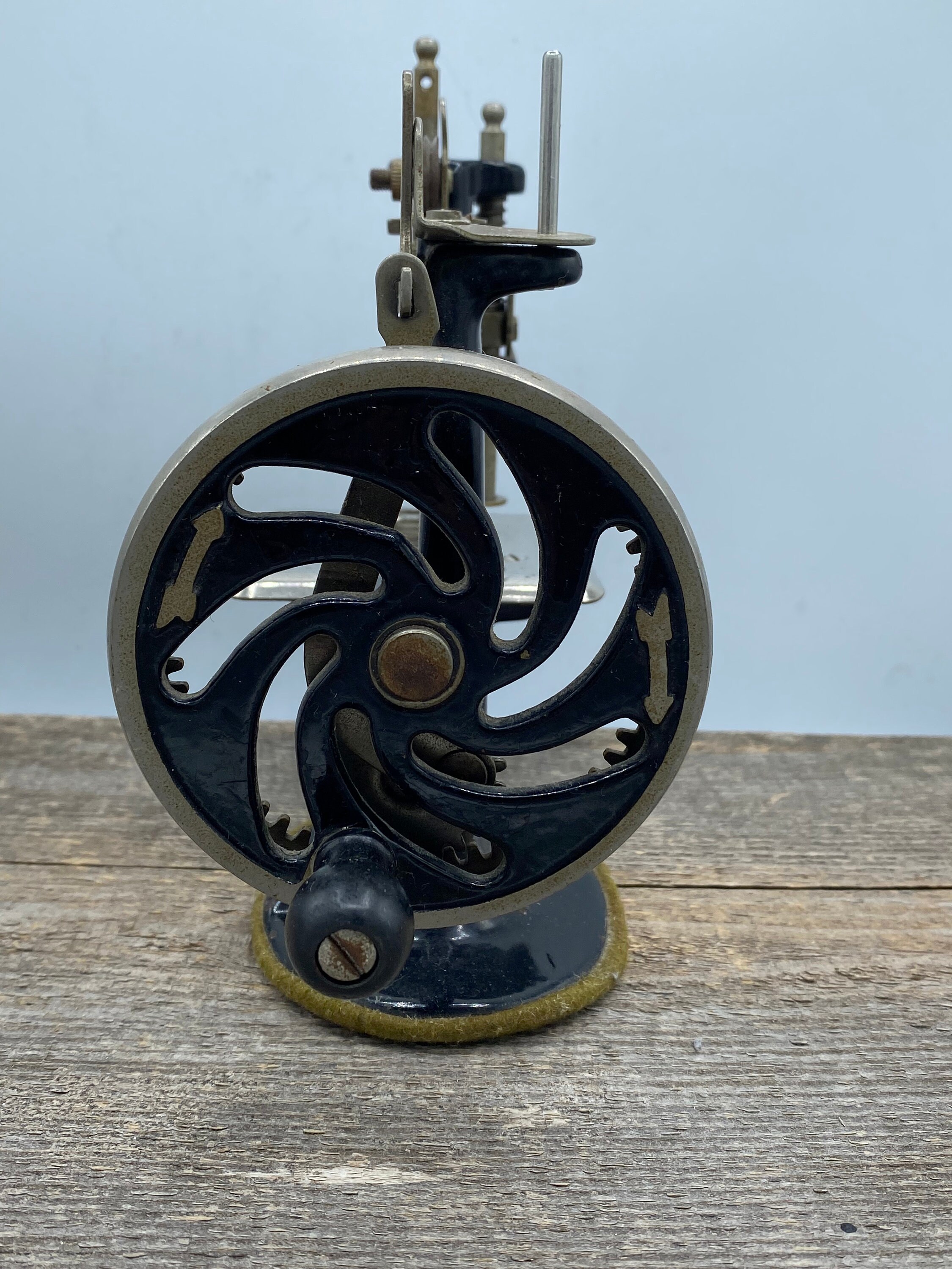 Sturdy as ever, it turns by hand. Would be a fantastic gift for the sweing enthusiast who "Has everything" or the collector!