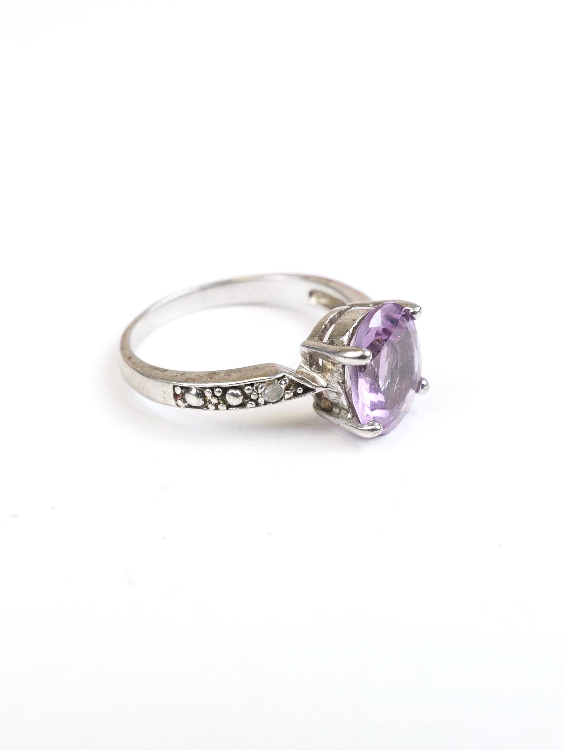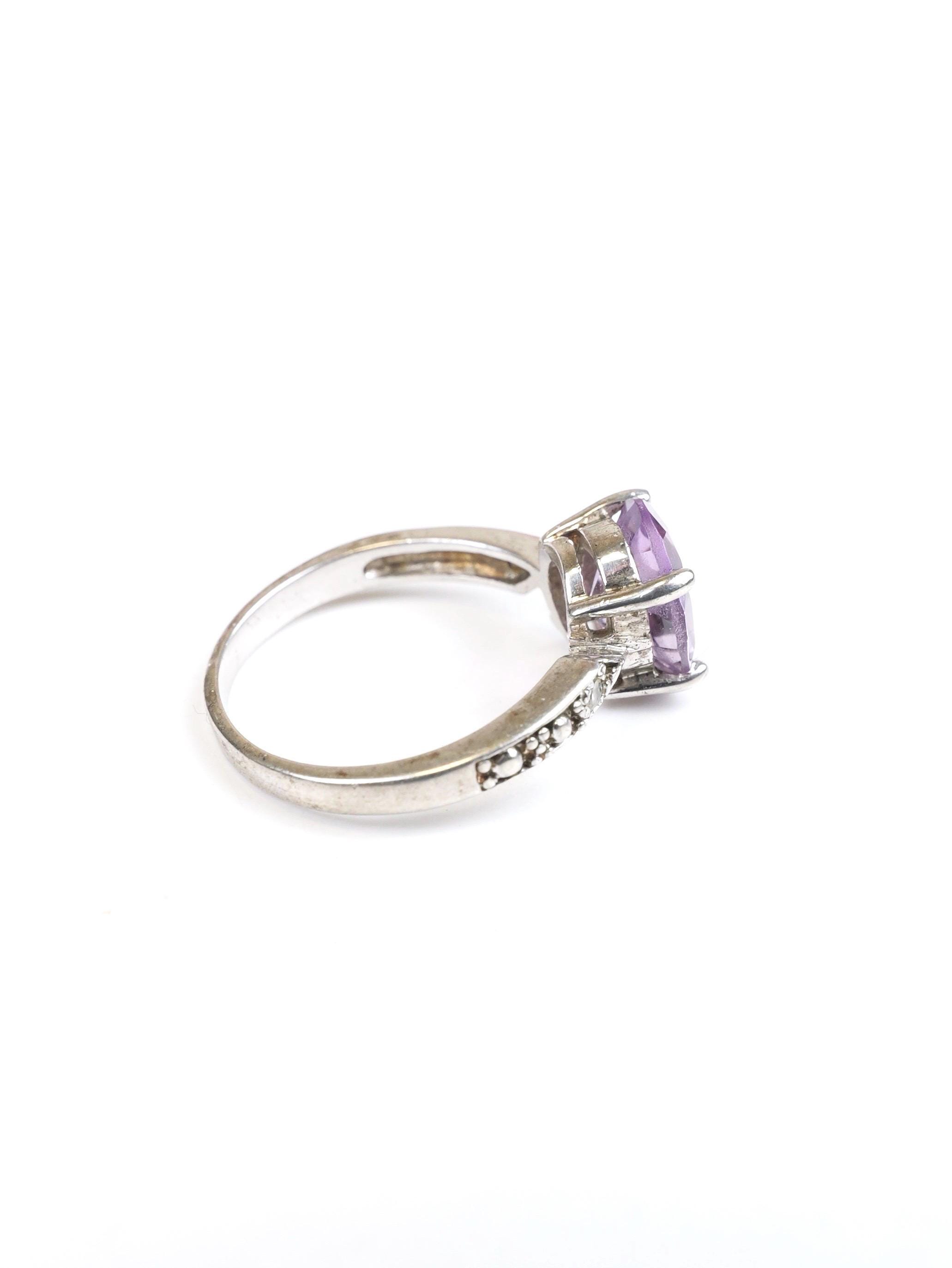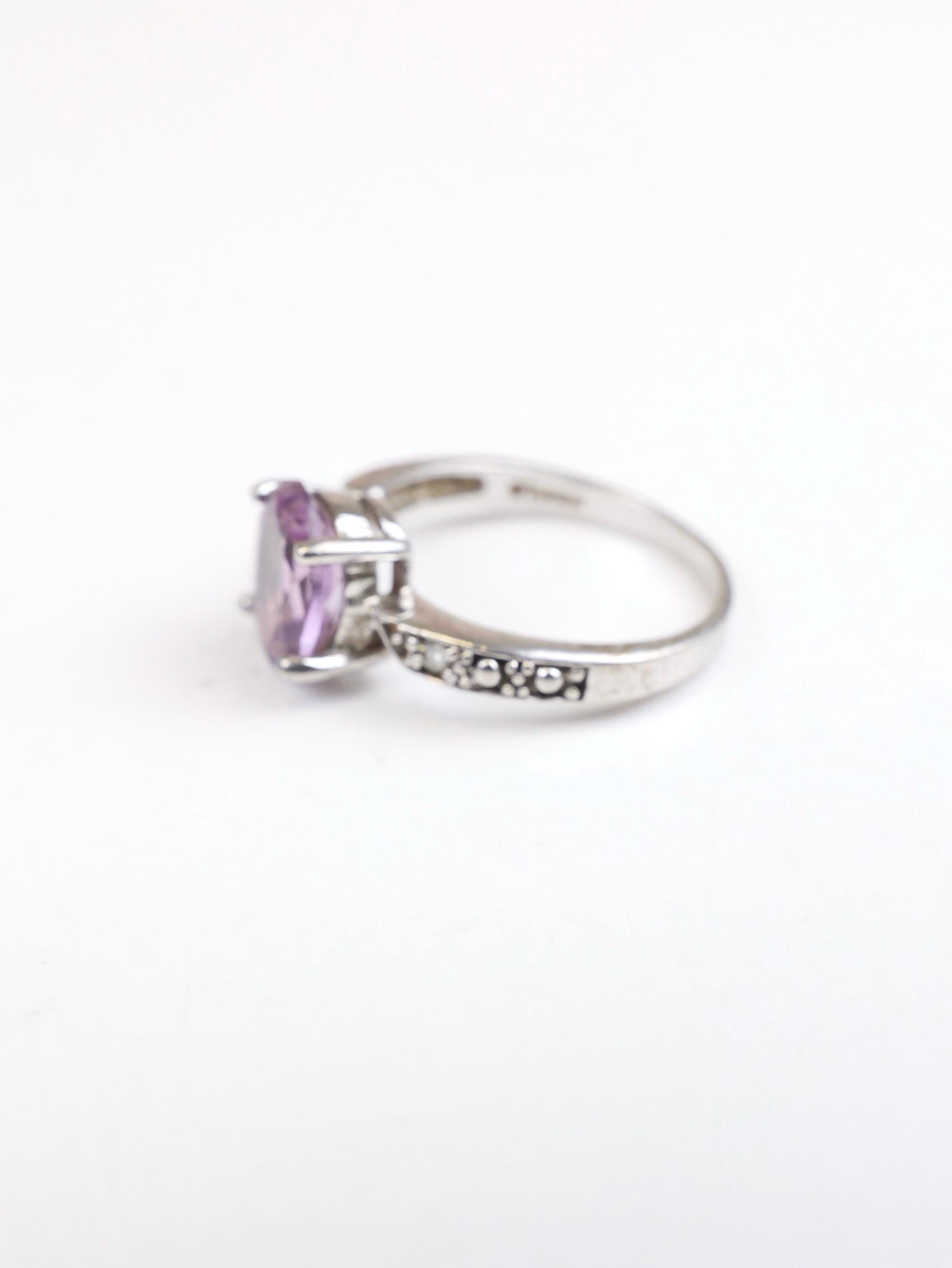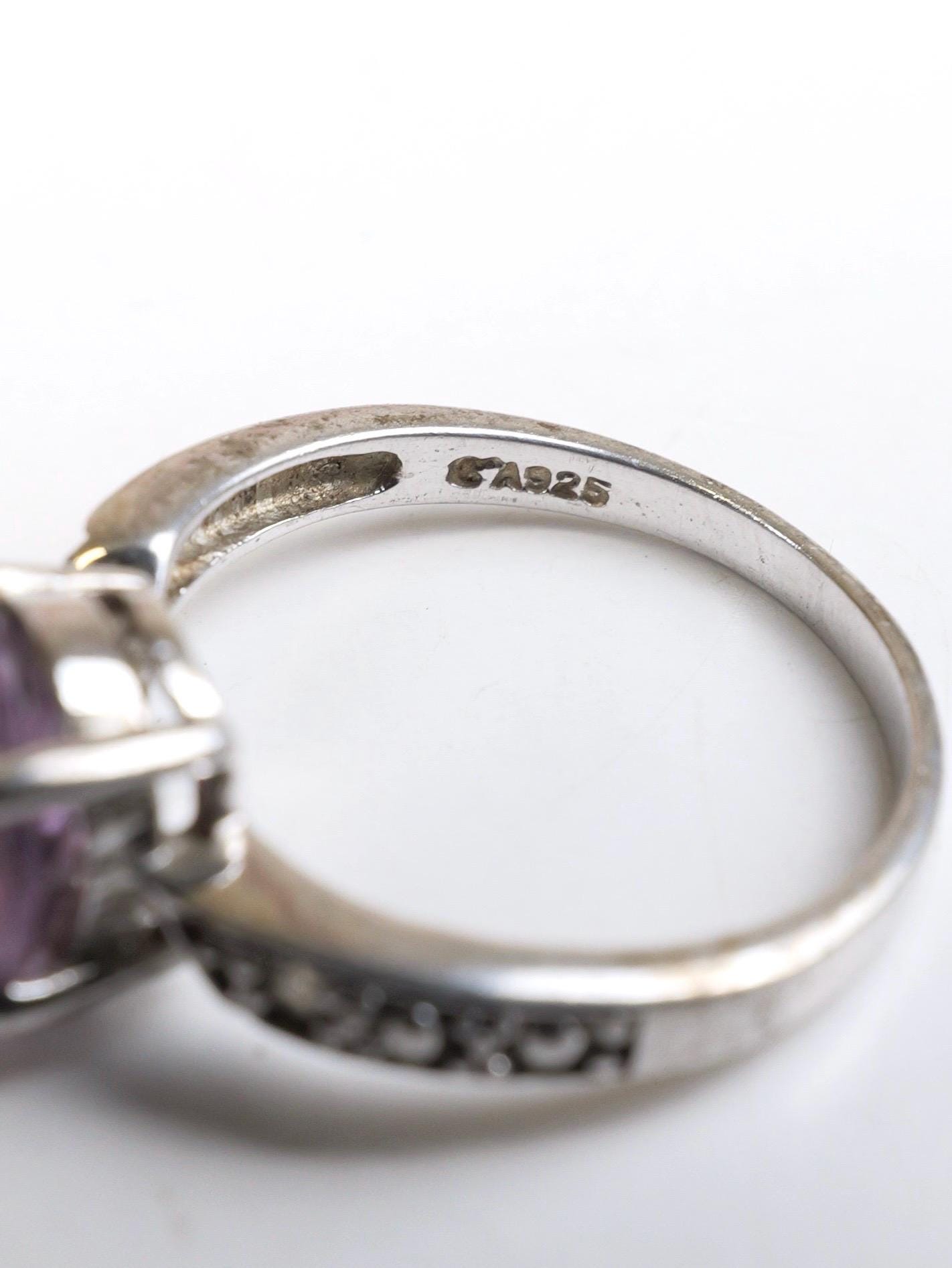 Signed “925” sterling silver vintage amethyst and clear cubic zirconia solitaire ring. Size 7 1/2.