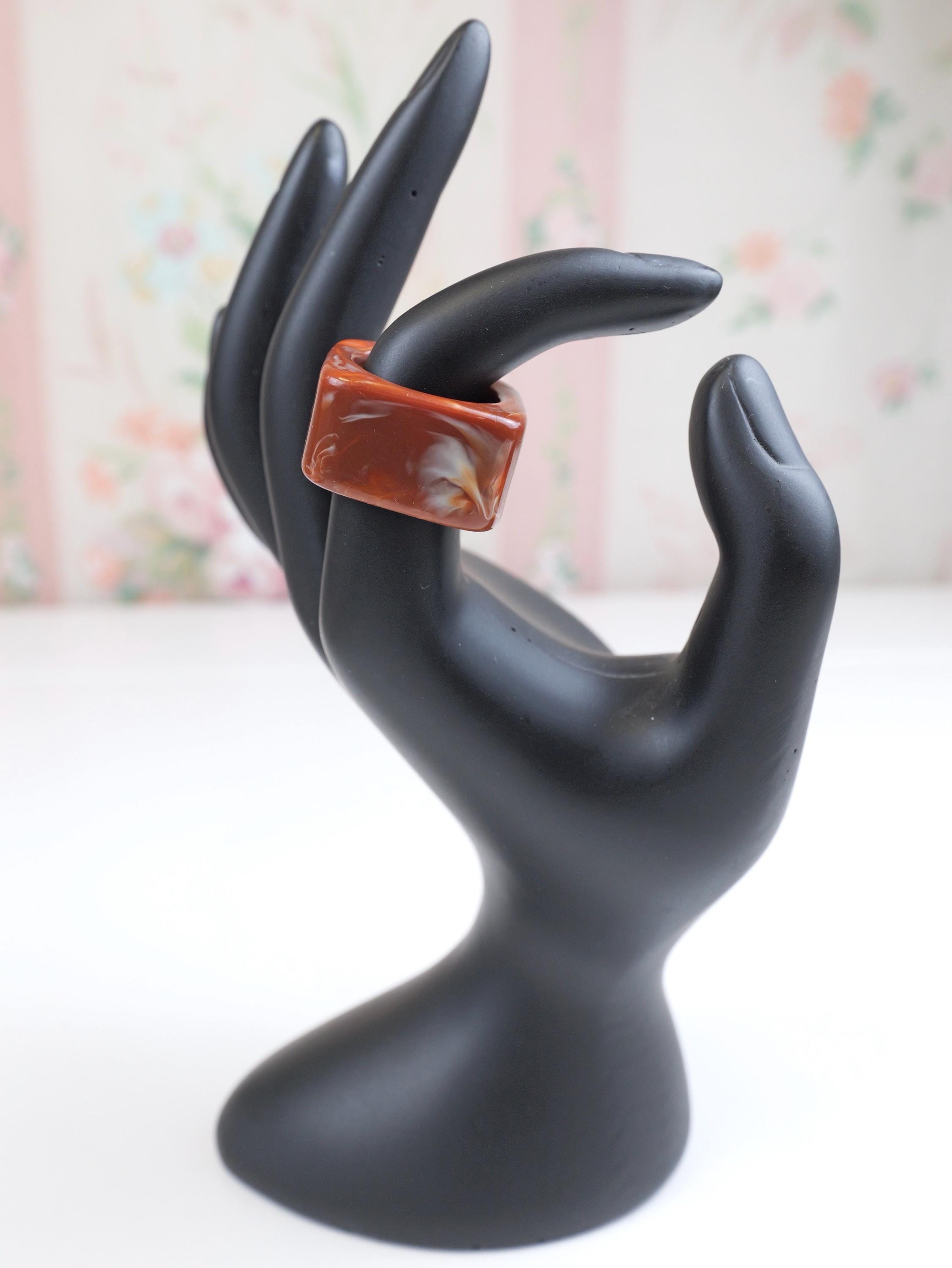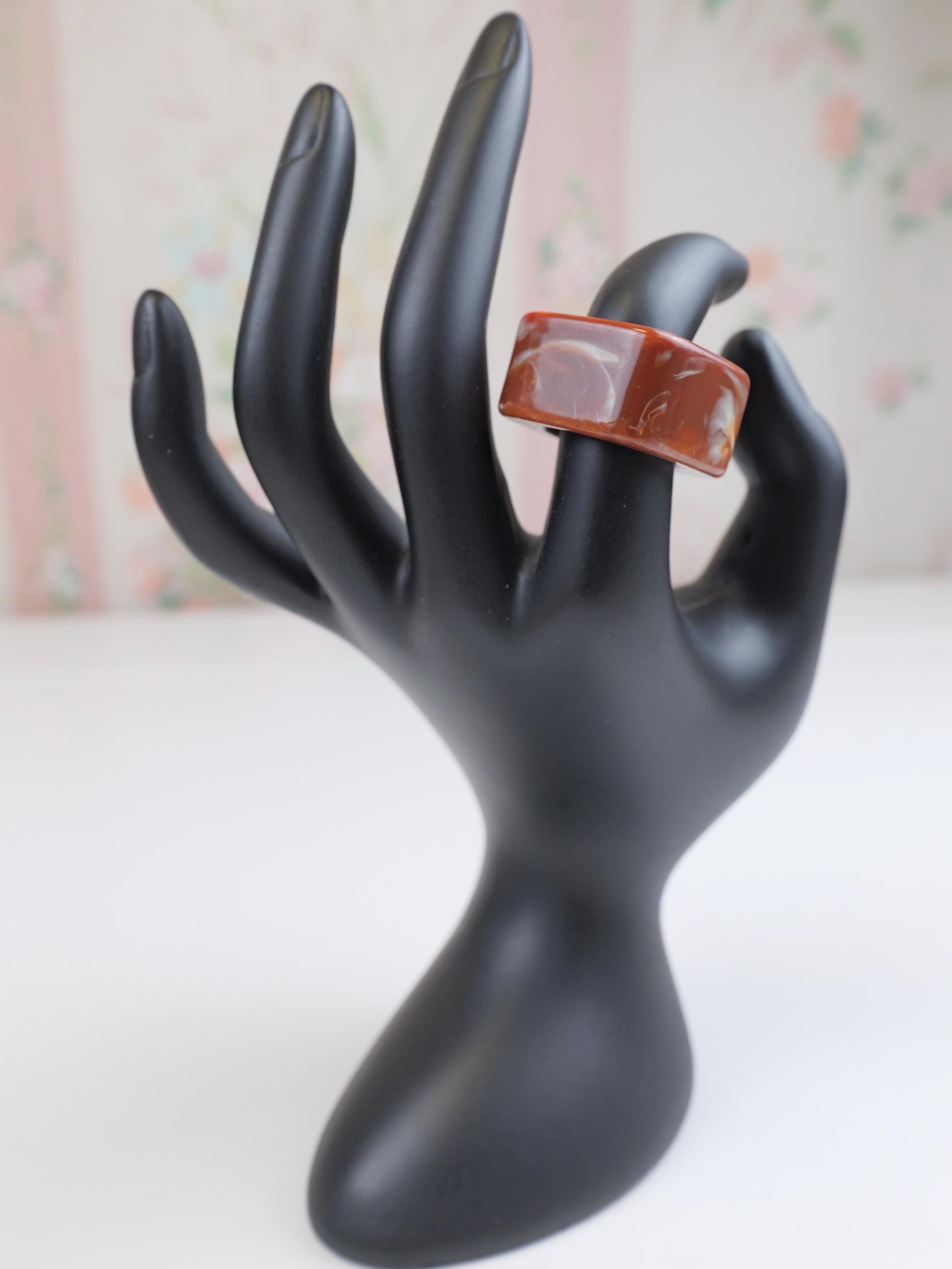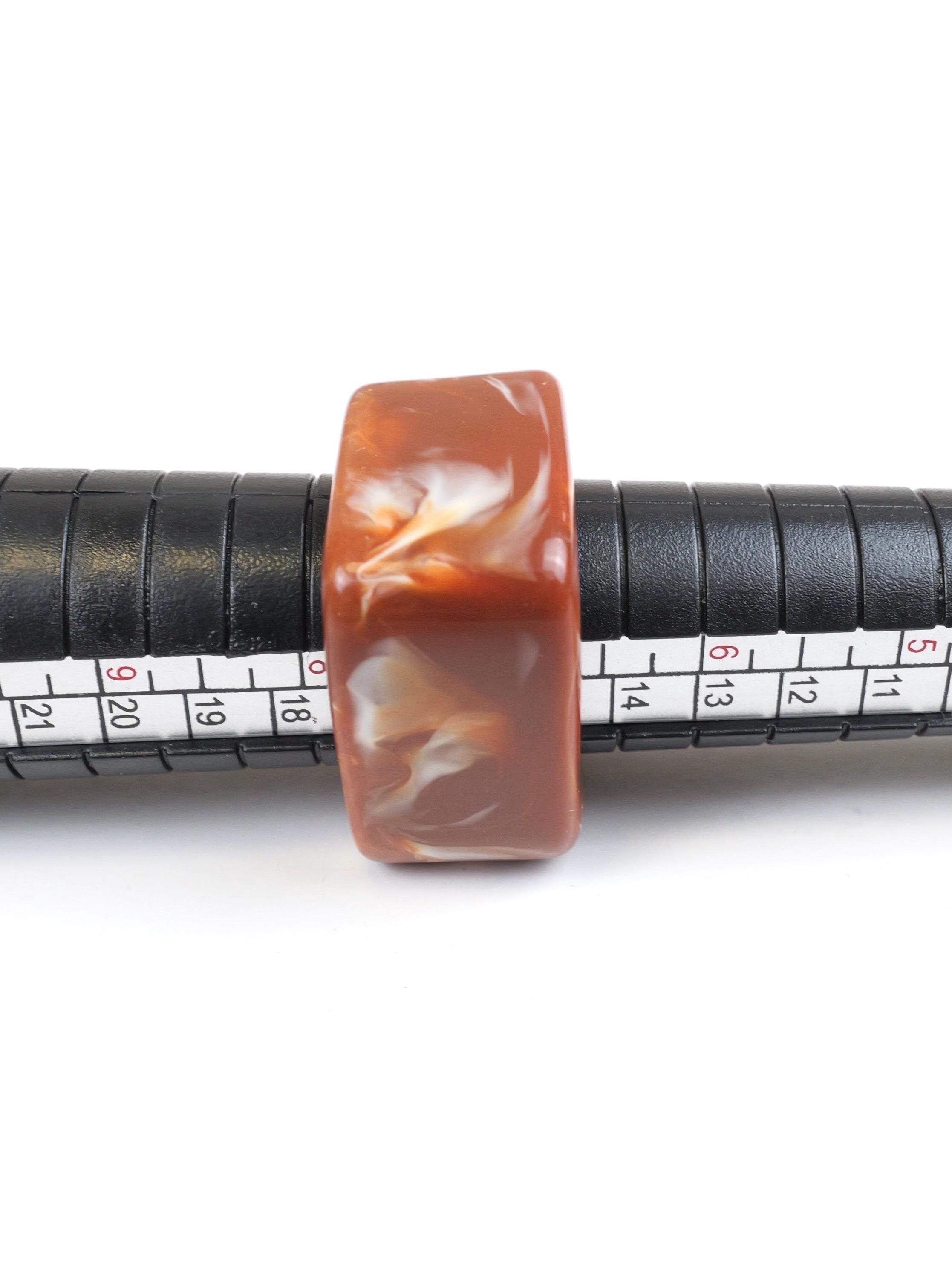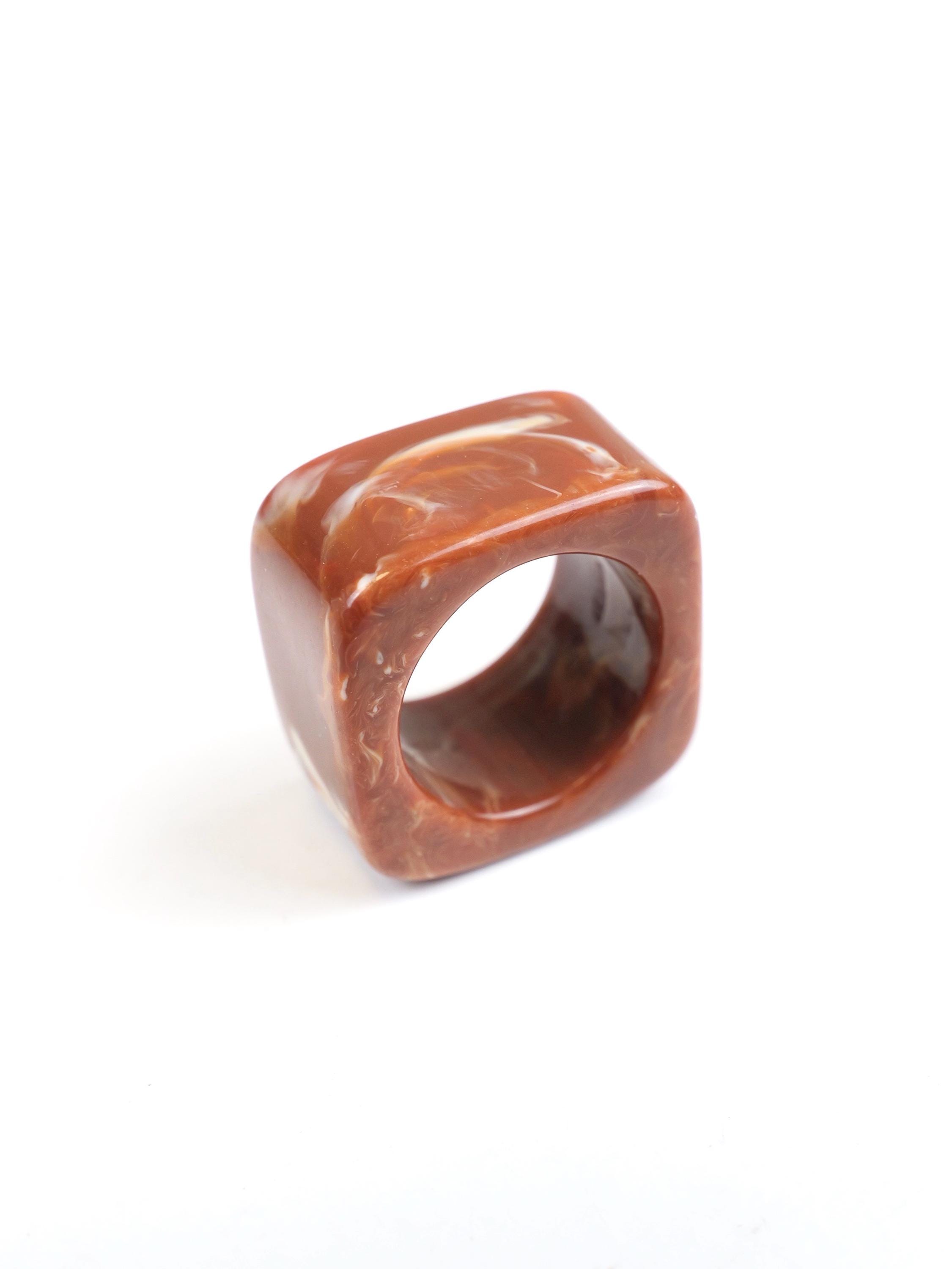 Vintage Mod square mottled swirled clay brown lucite ring. Circa 1960’s.