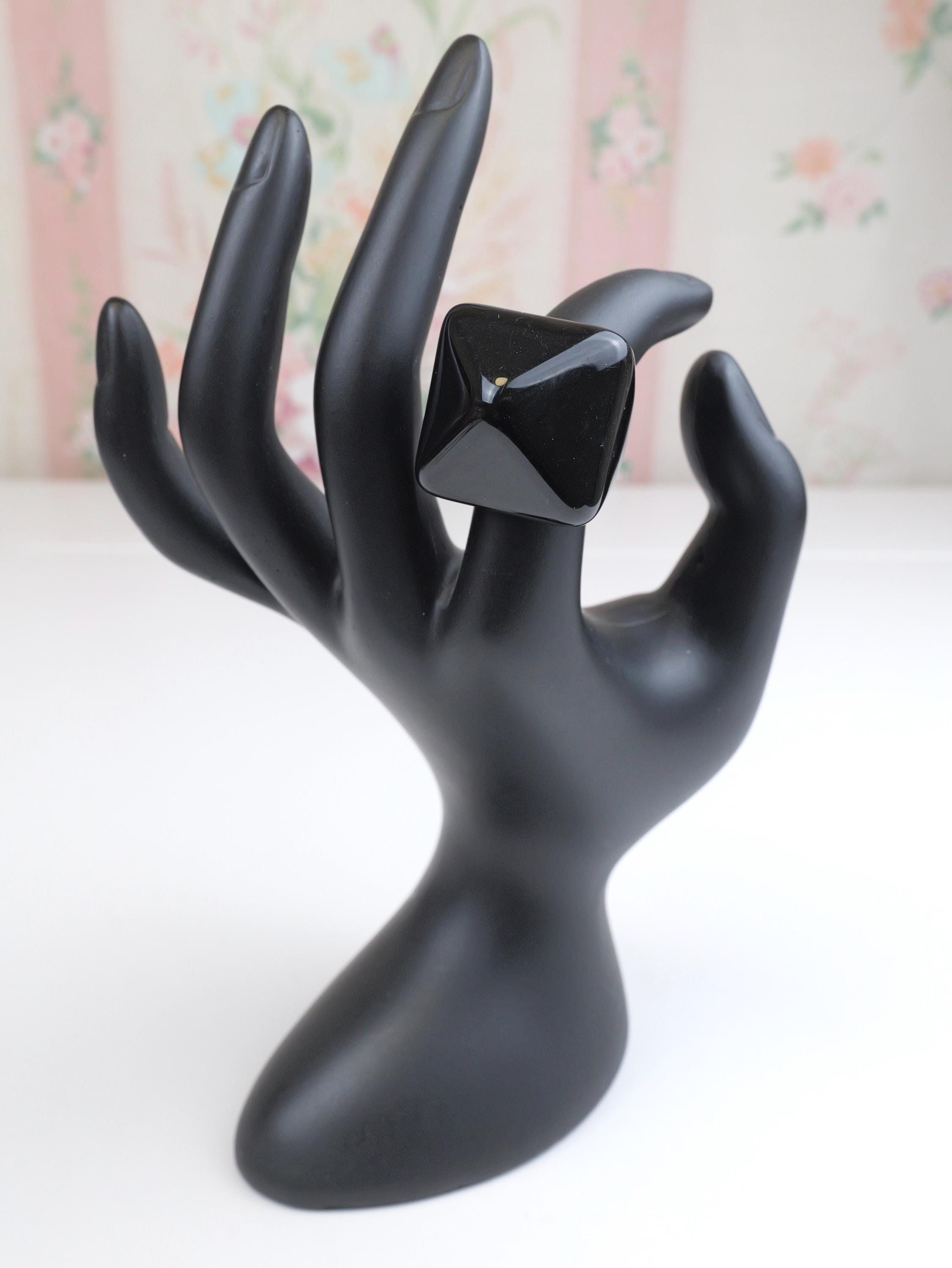 Size 6 1/4. This ring sits up about 1/2 and the ring face measures 1" square.