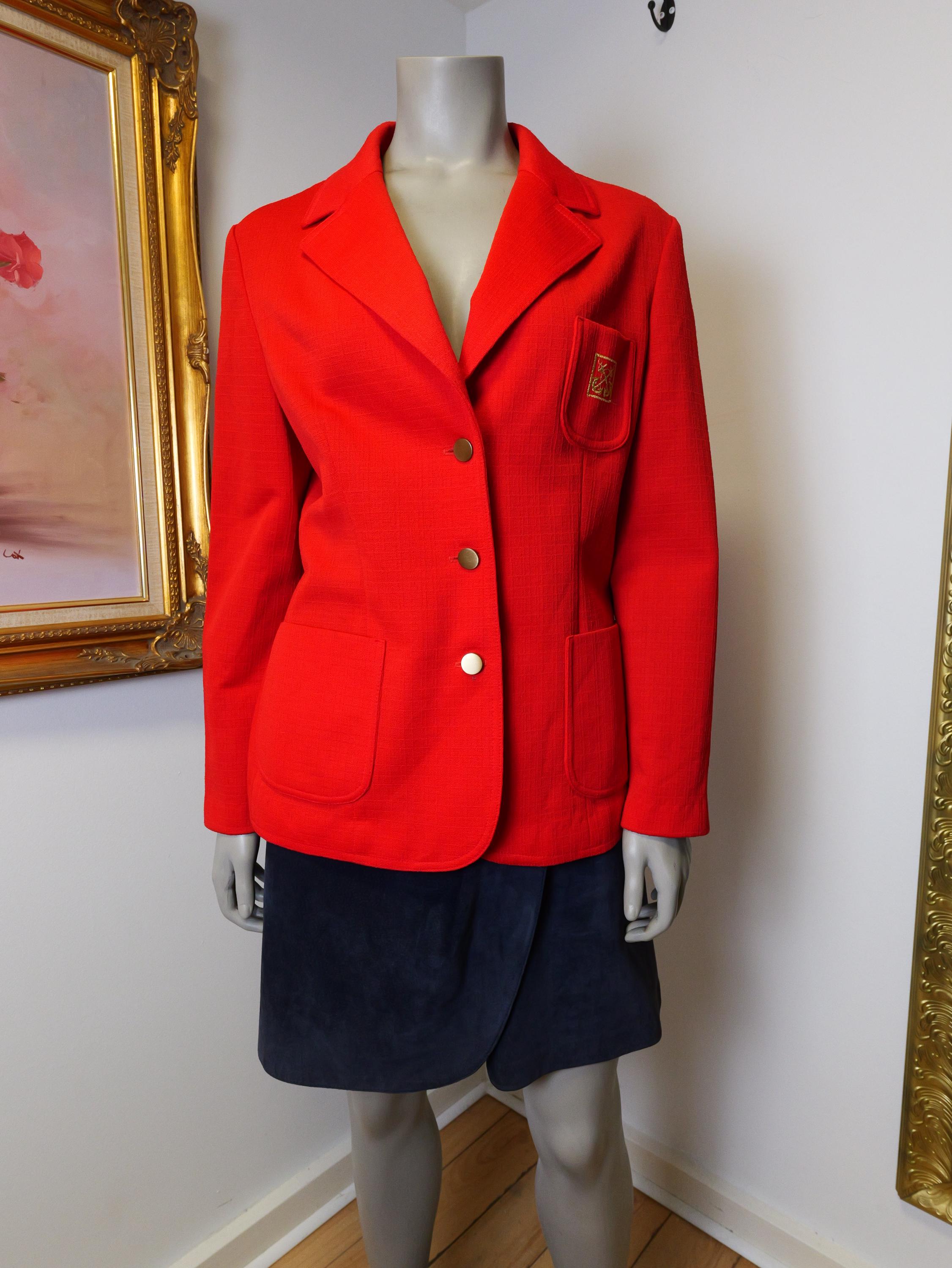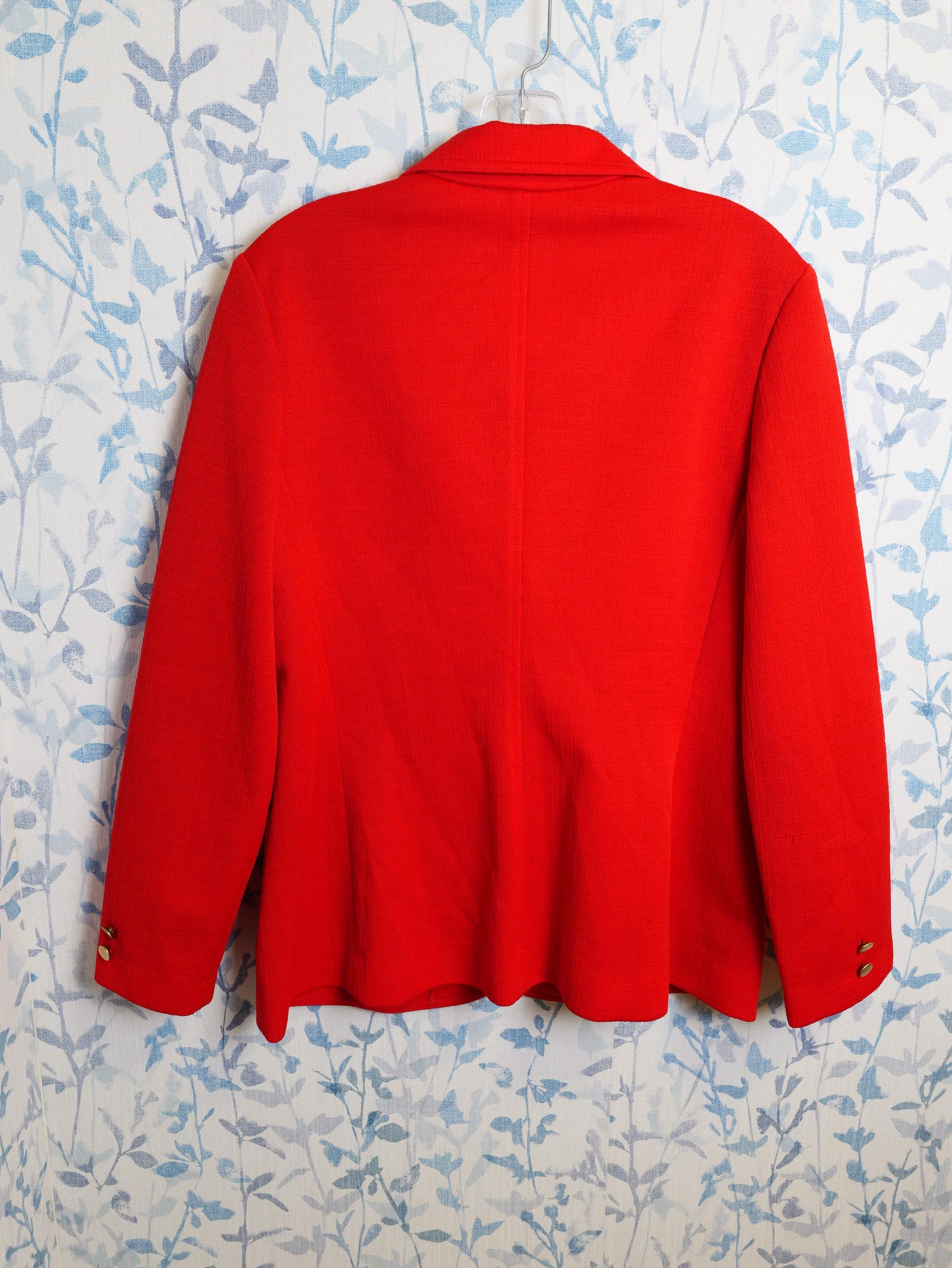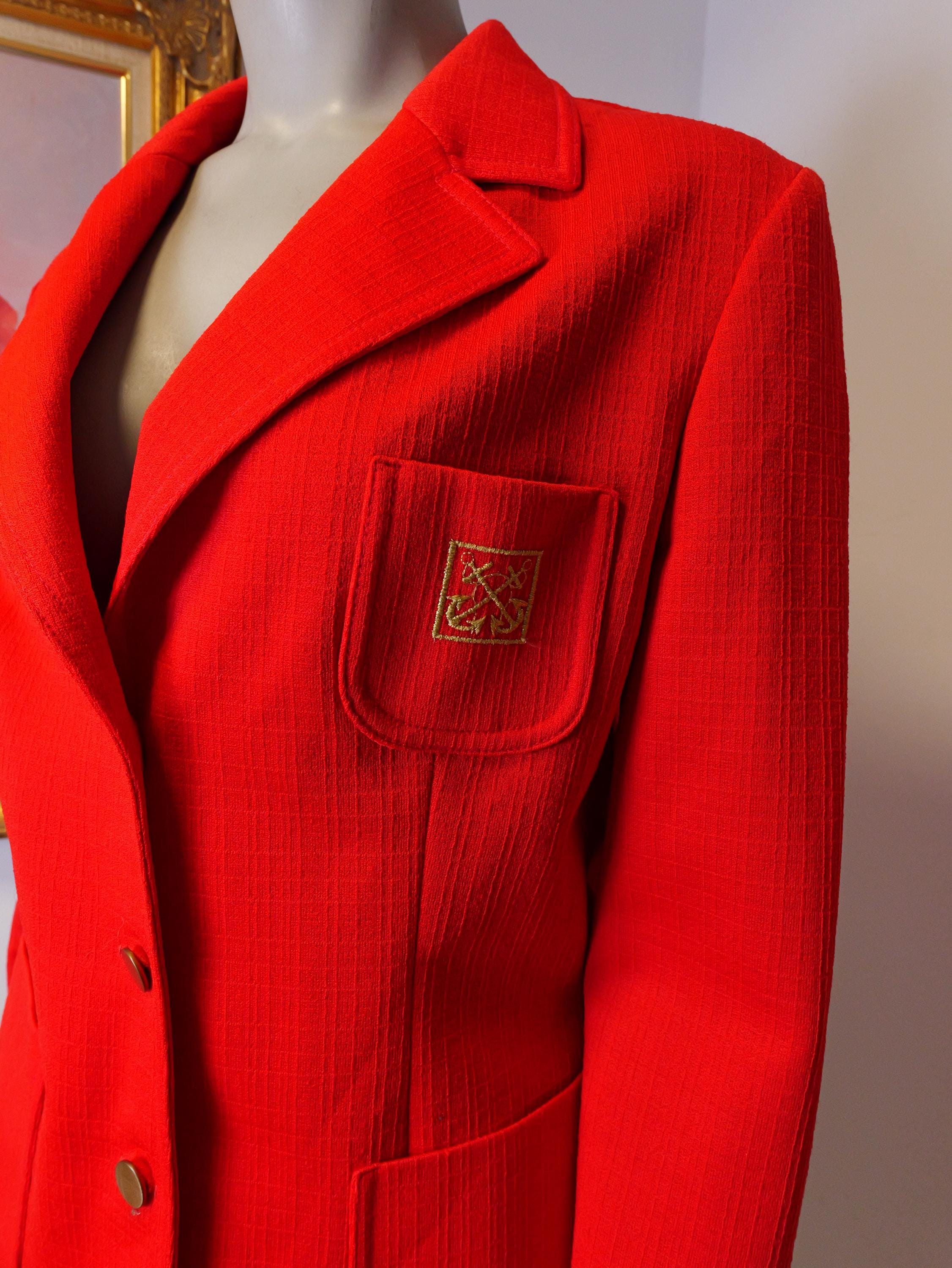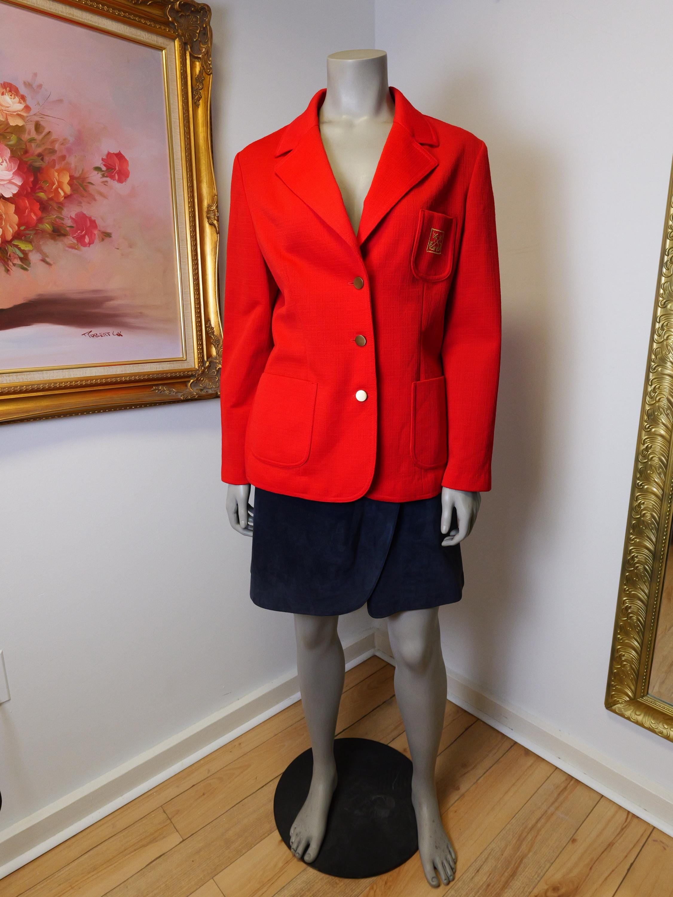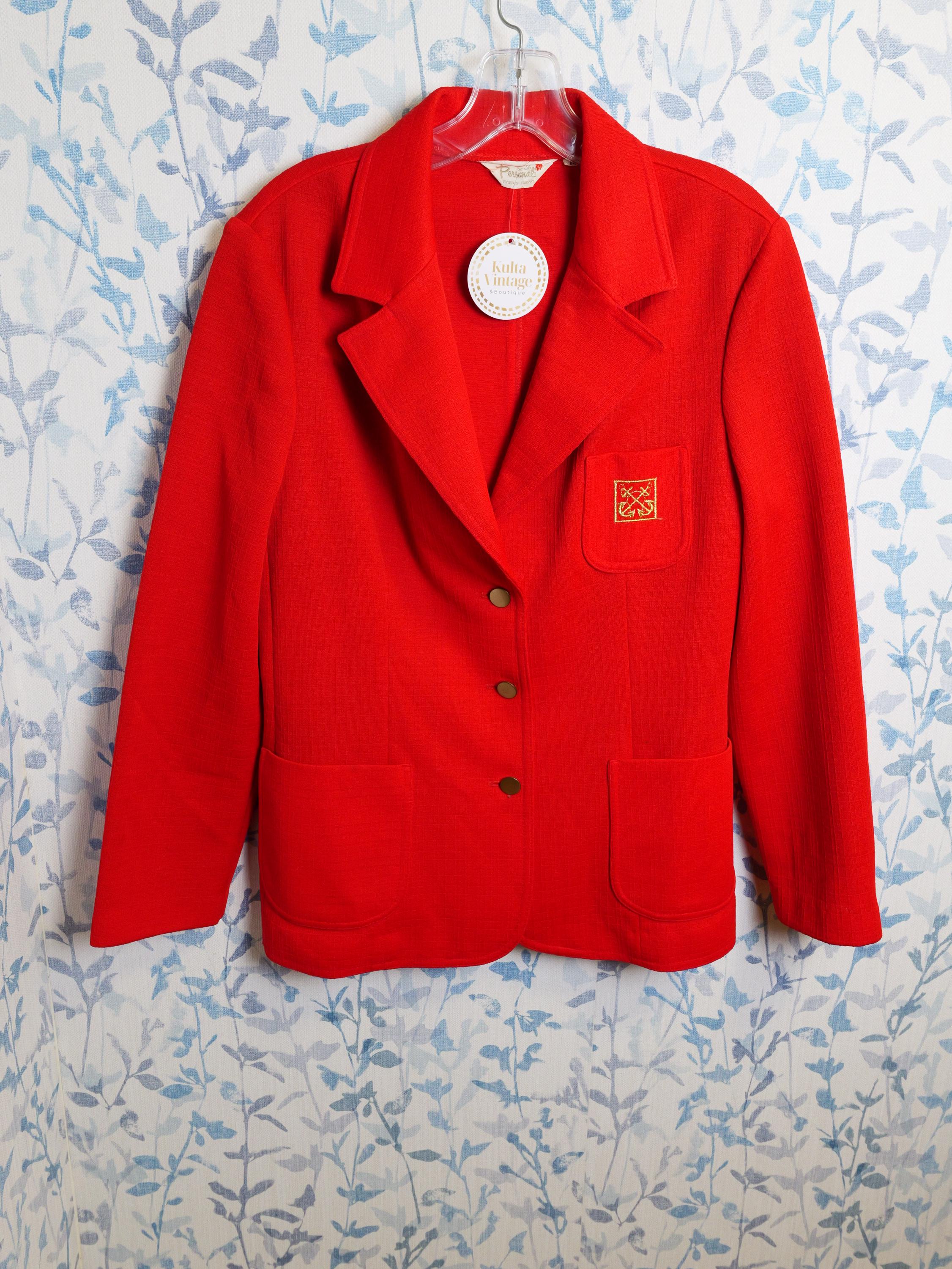 Personal by Leslie Fay True Red Vintage Women's Nautical Blazer with gold embroidery of an anchor and ships wheel on the pocket.