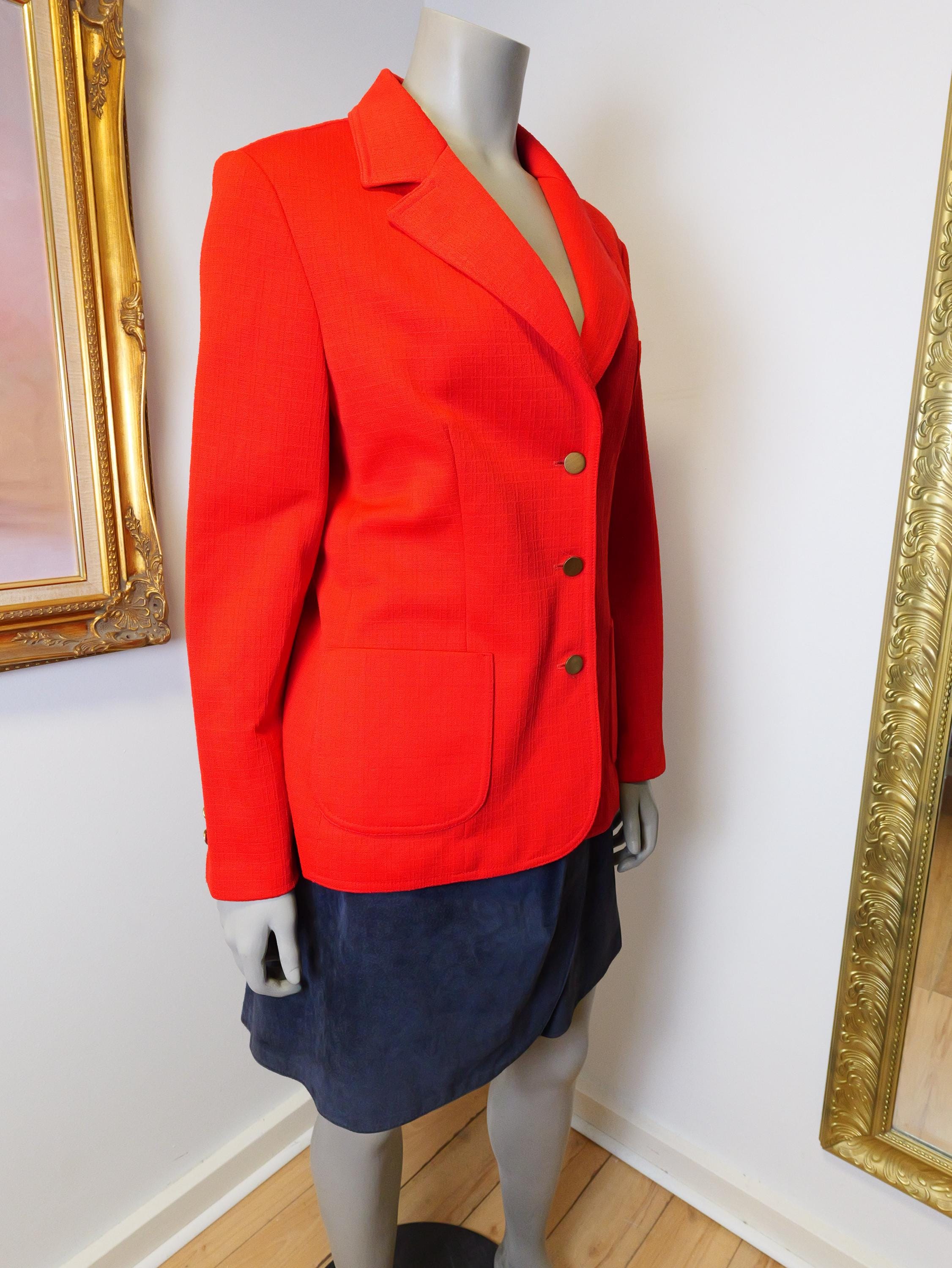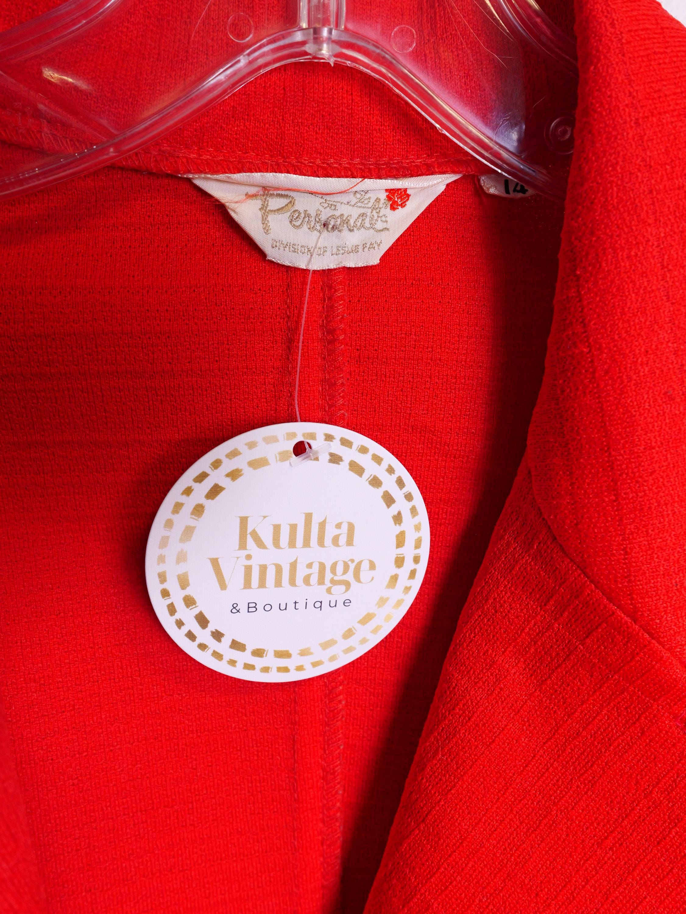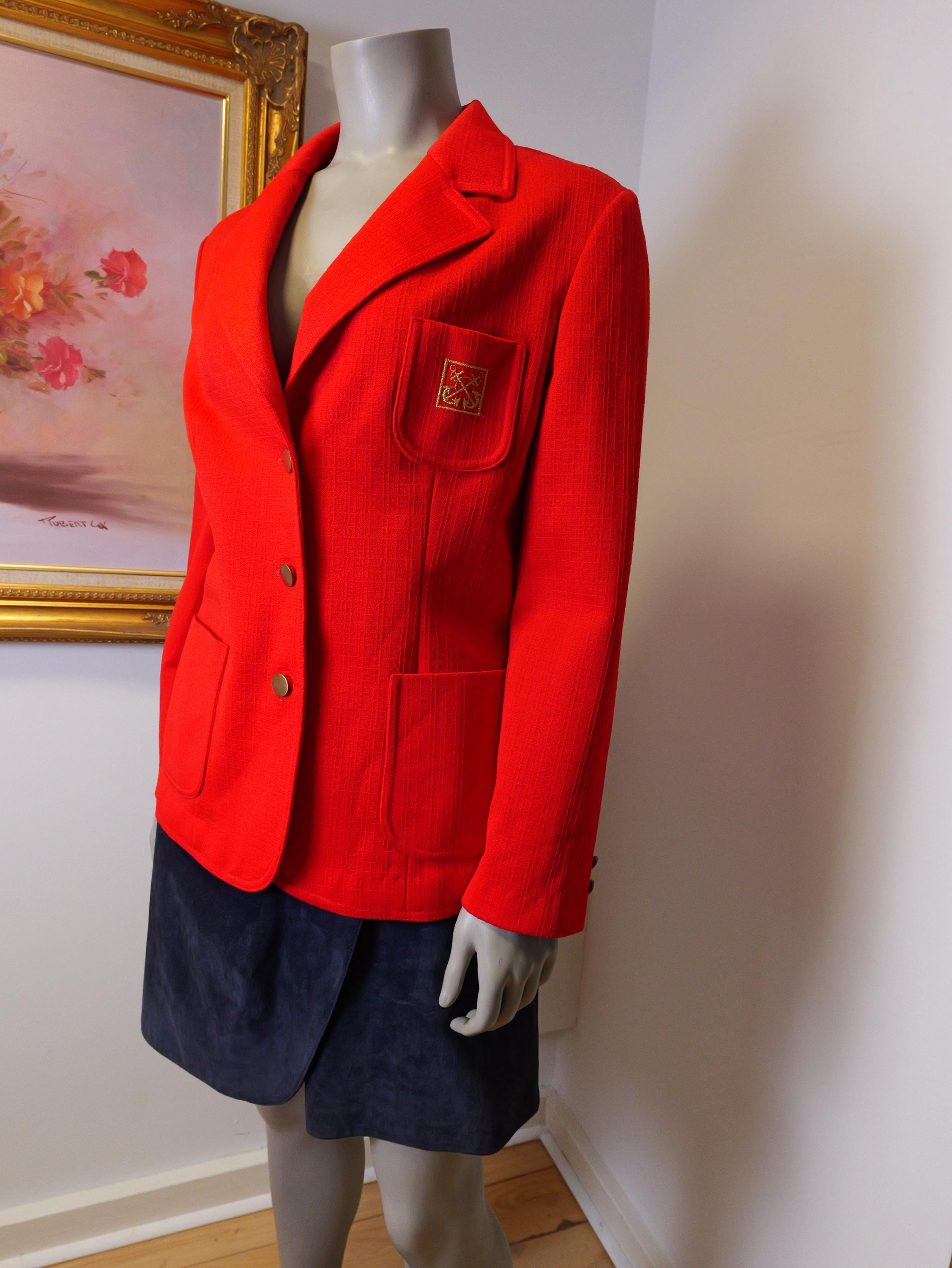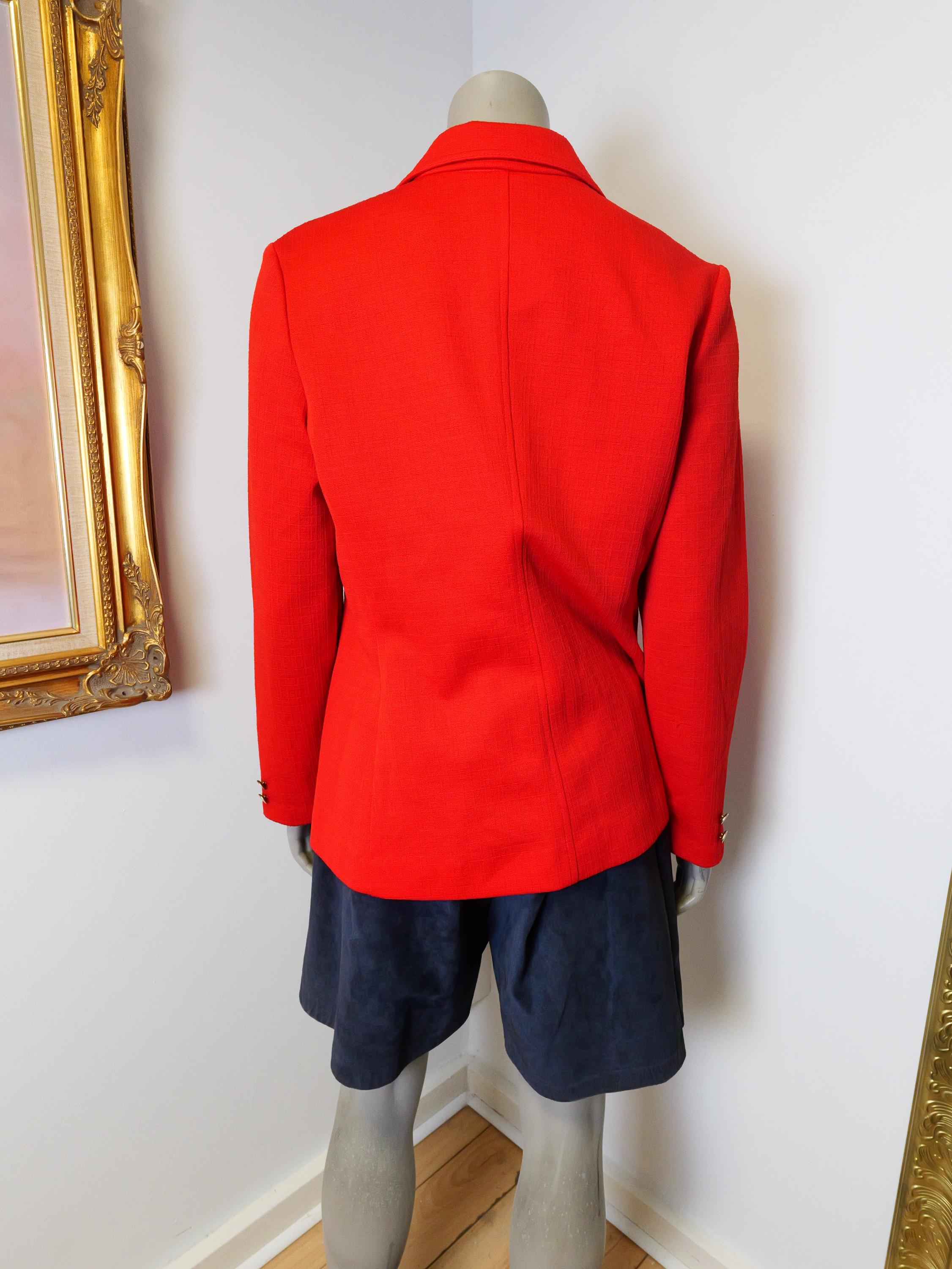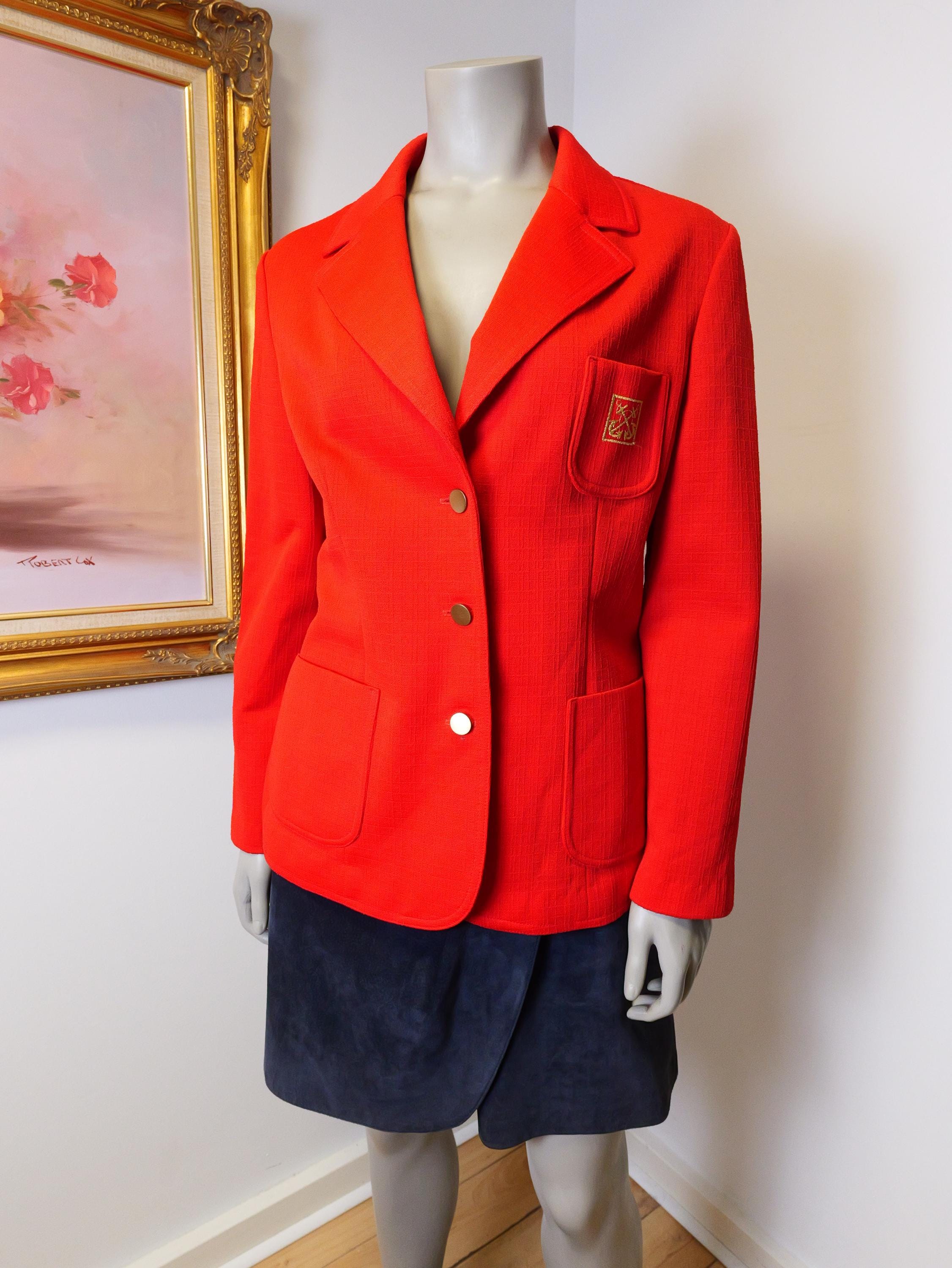 Personal by Leslie Fay True Red Vintage Women's Nautical Blazer with gold embroidery of an anchor and ships wheel on the pocket.