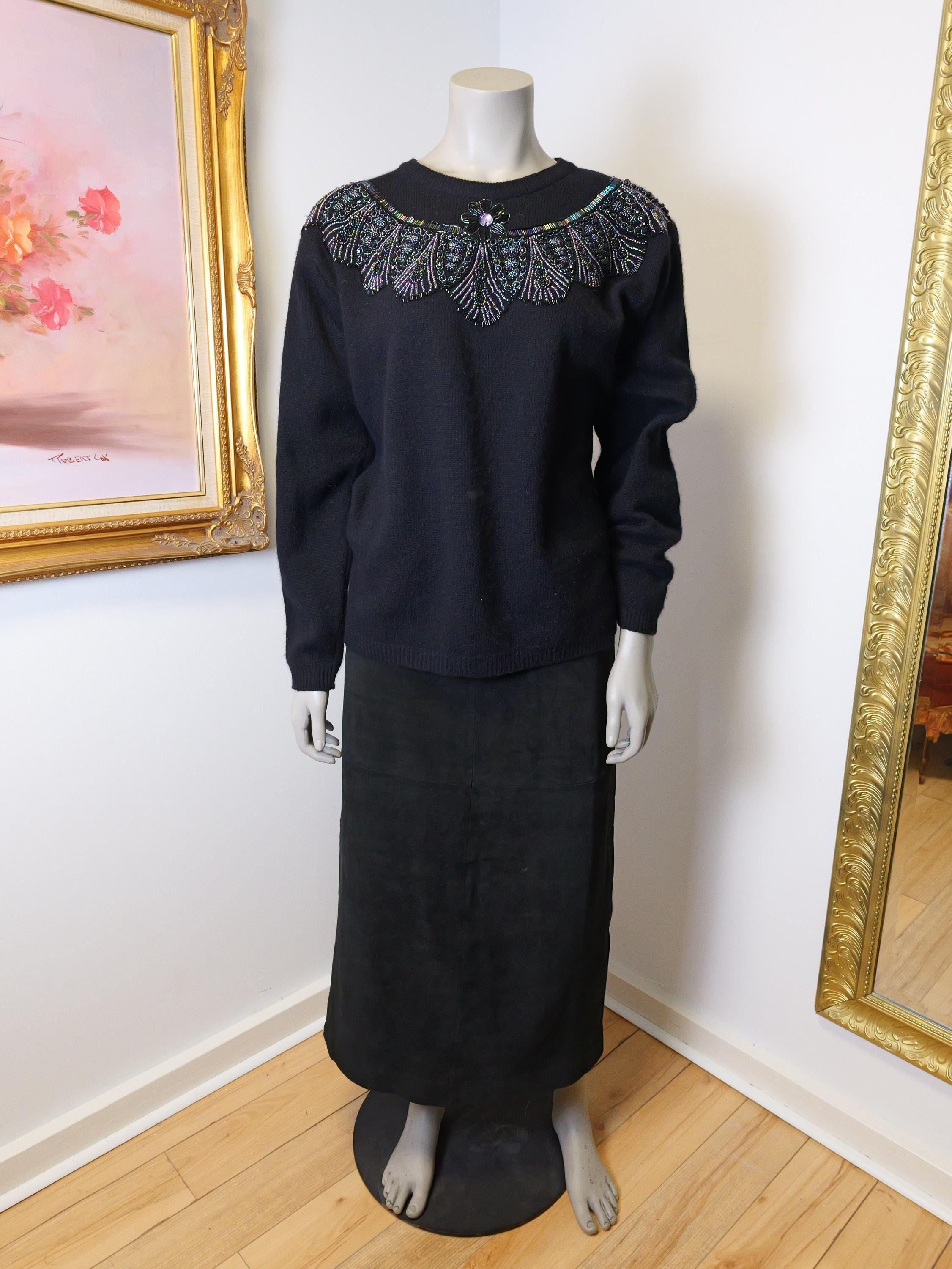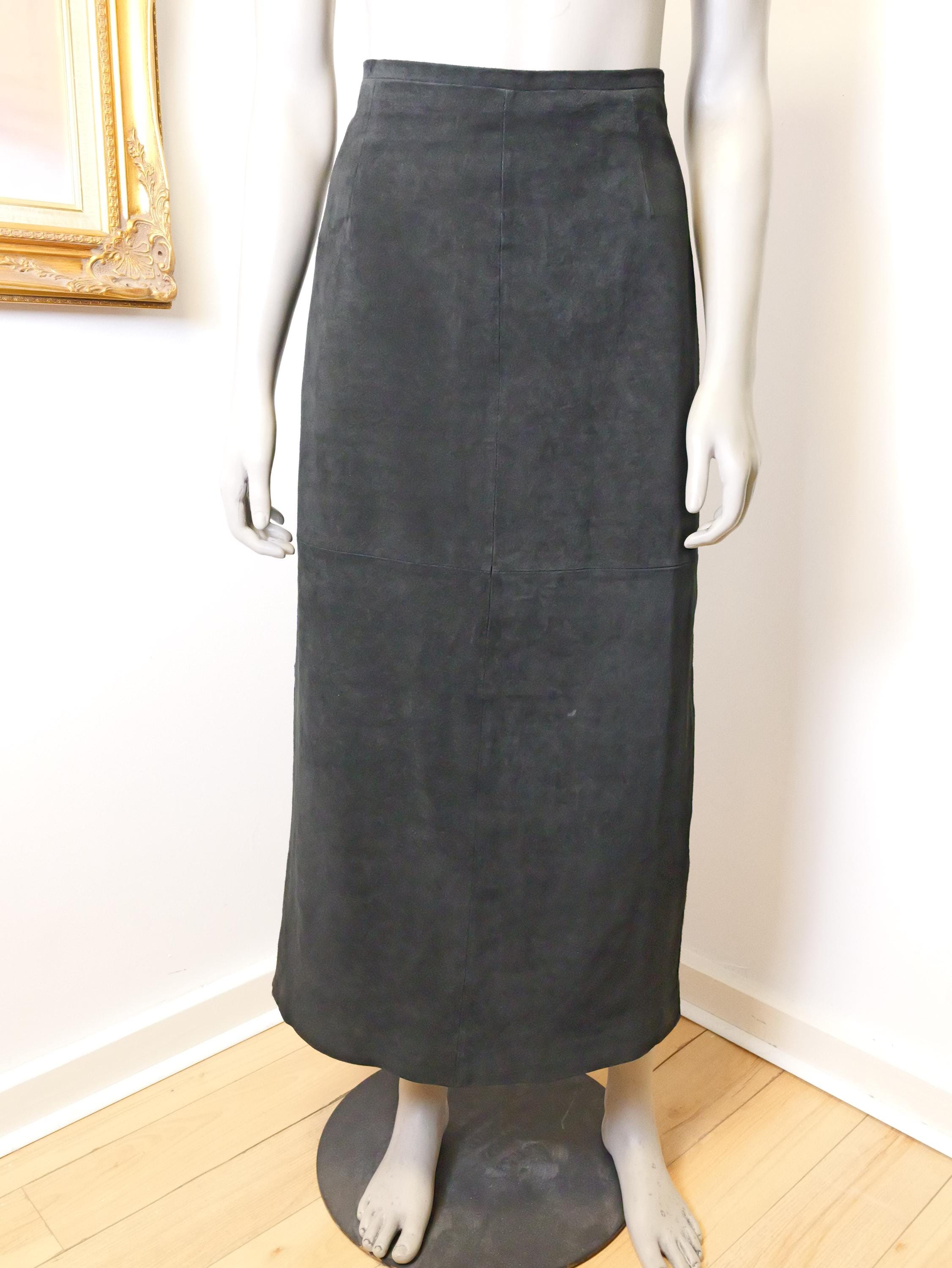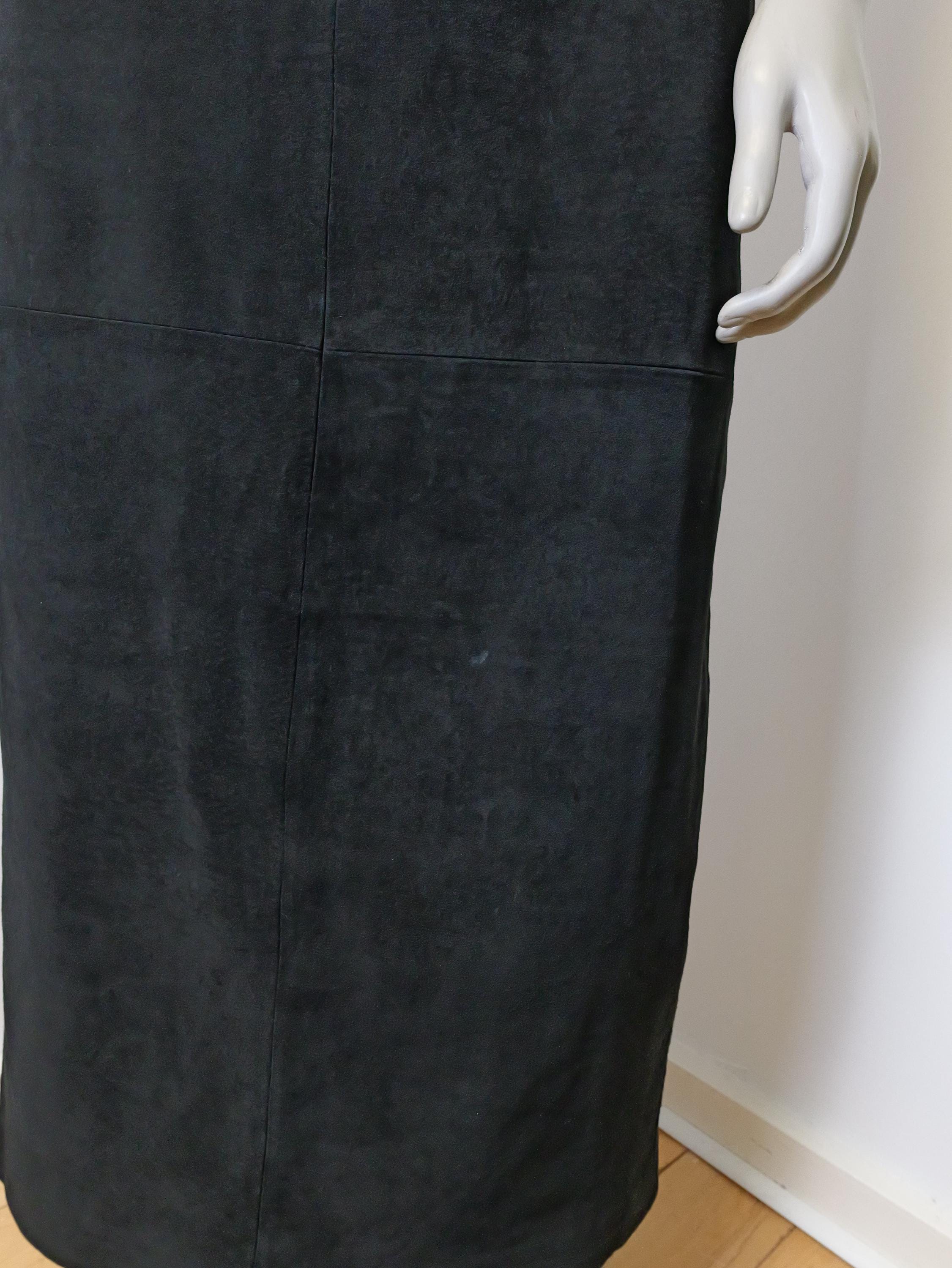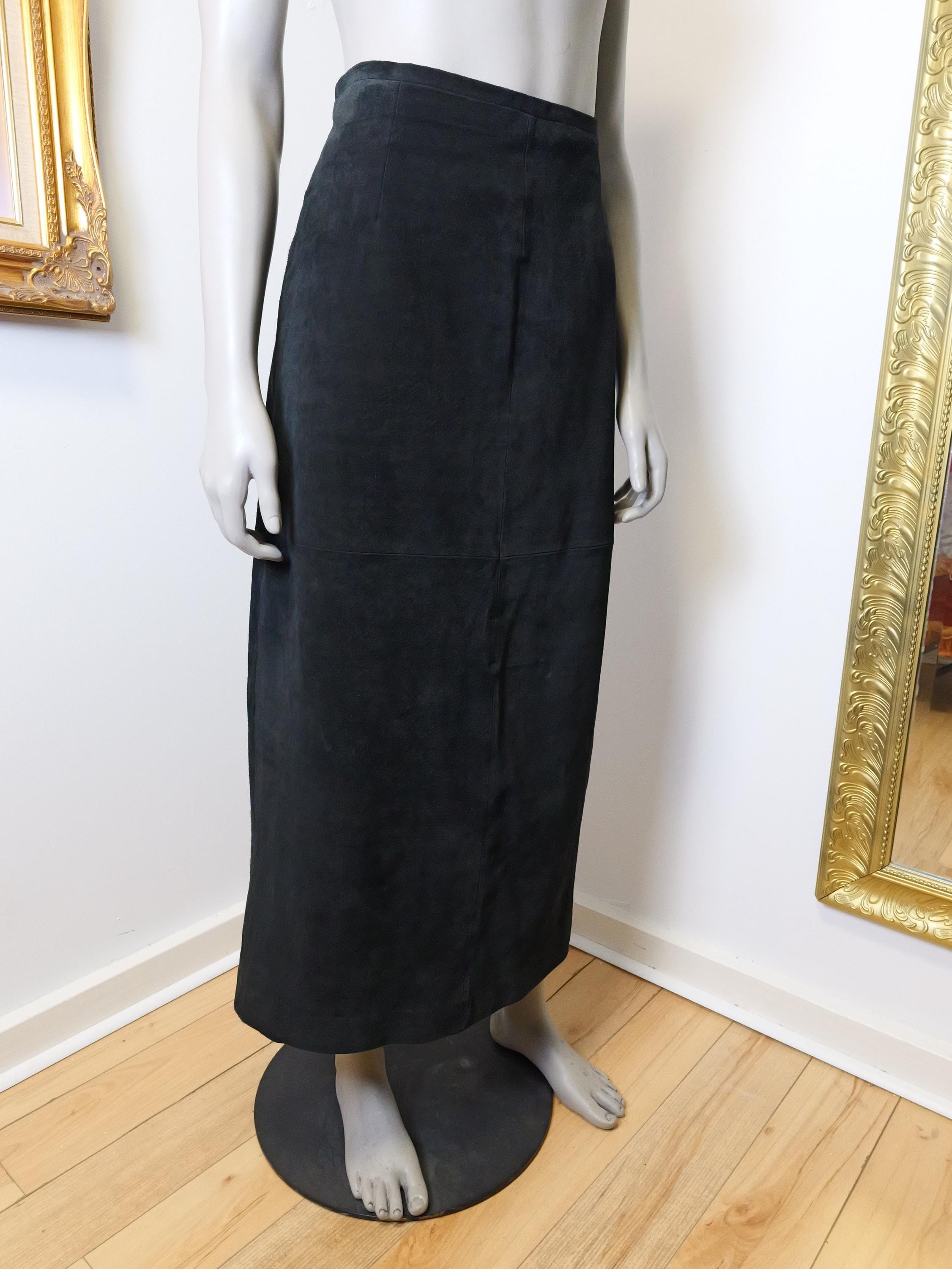 Classic long black suede leather skirt.