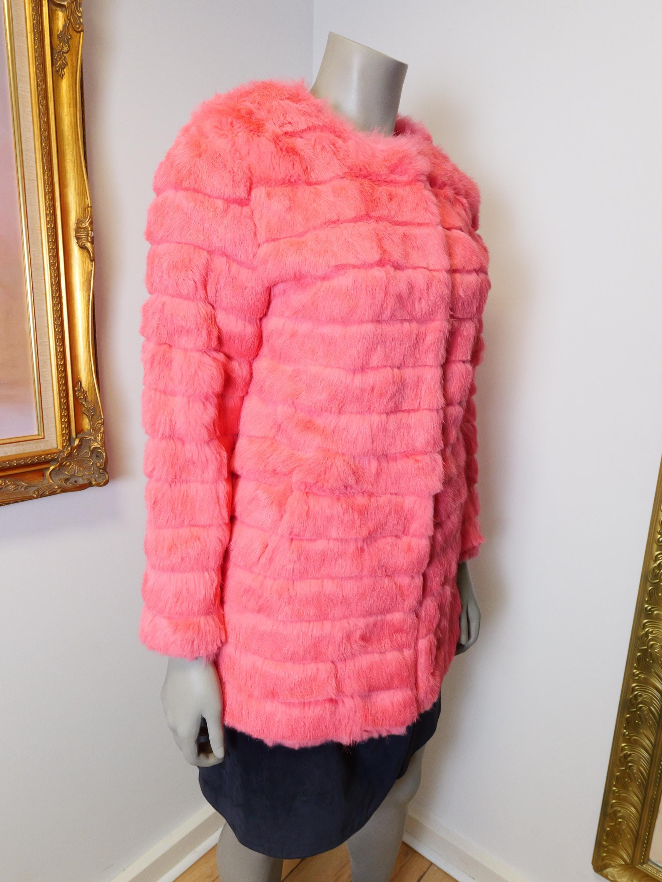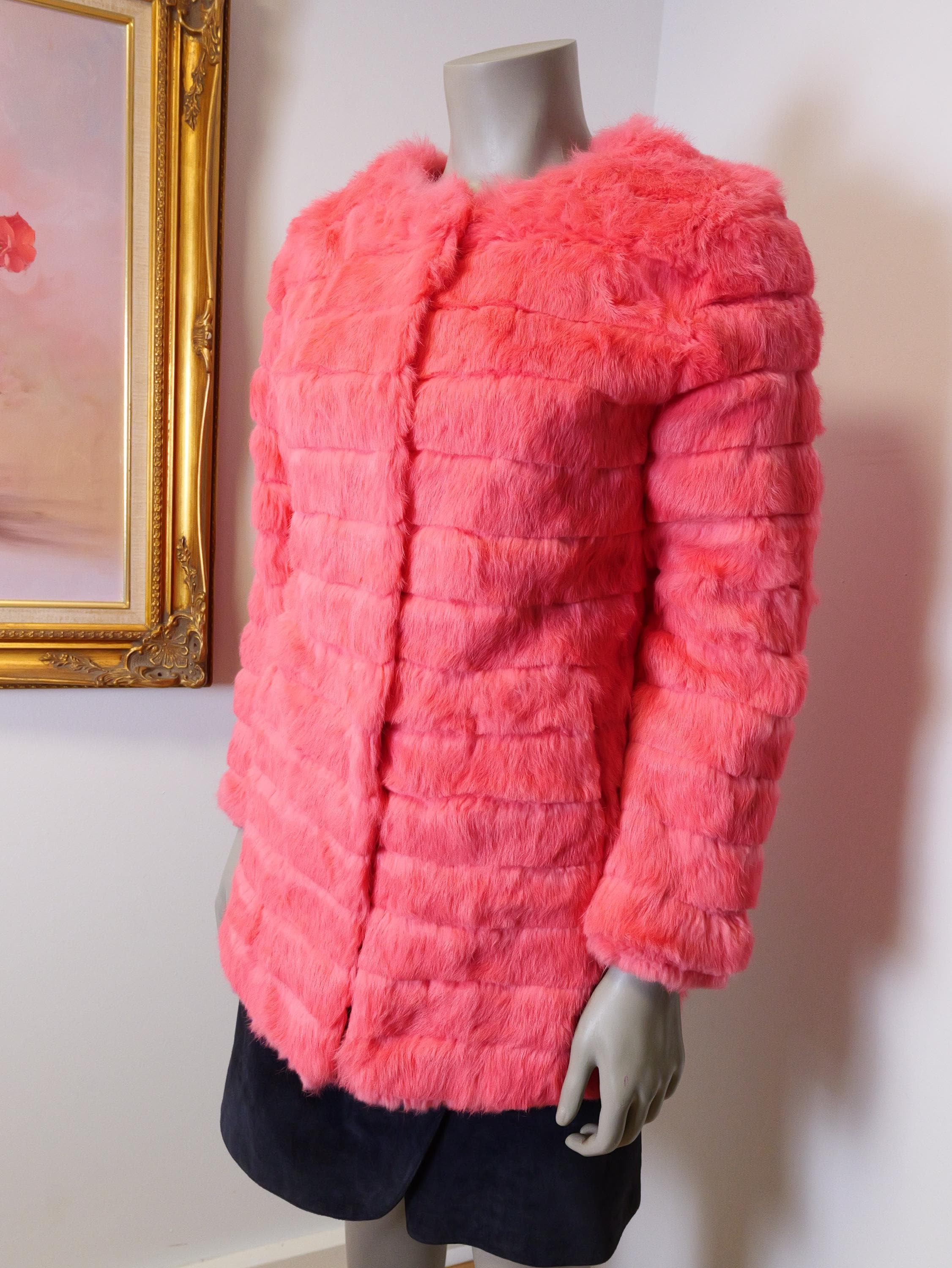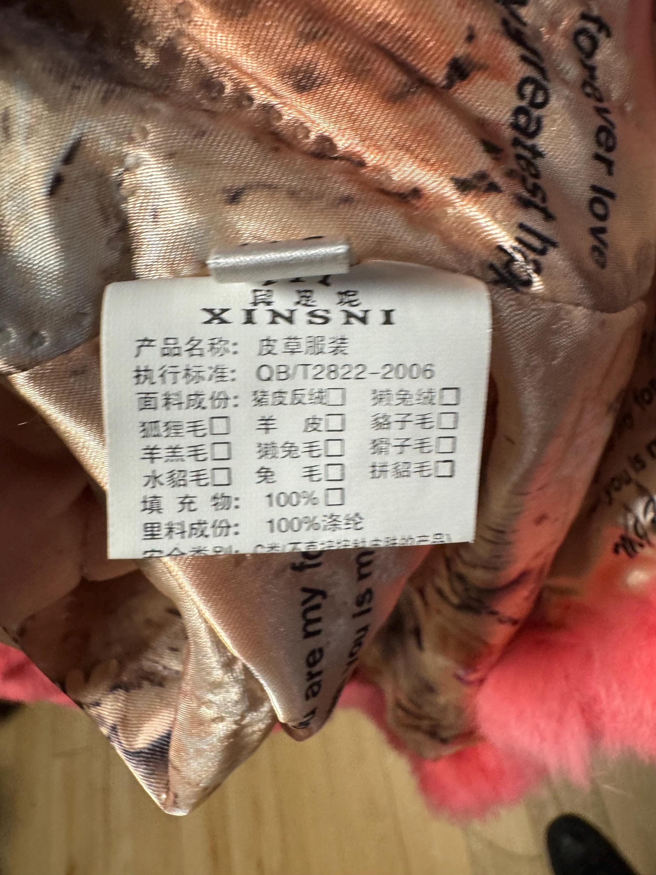 Best fit will be an XS to Small. Closes with hidden fur clips. Close snaps down.