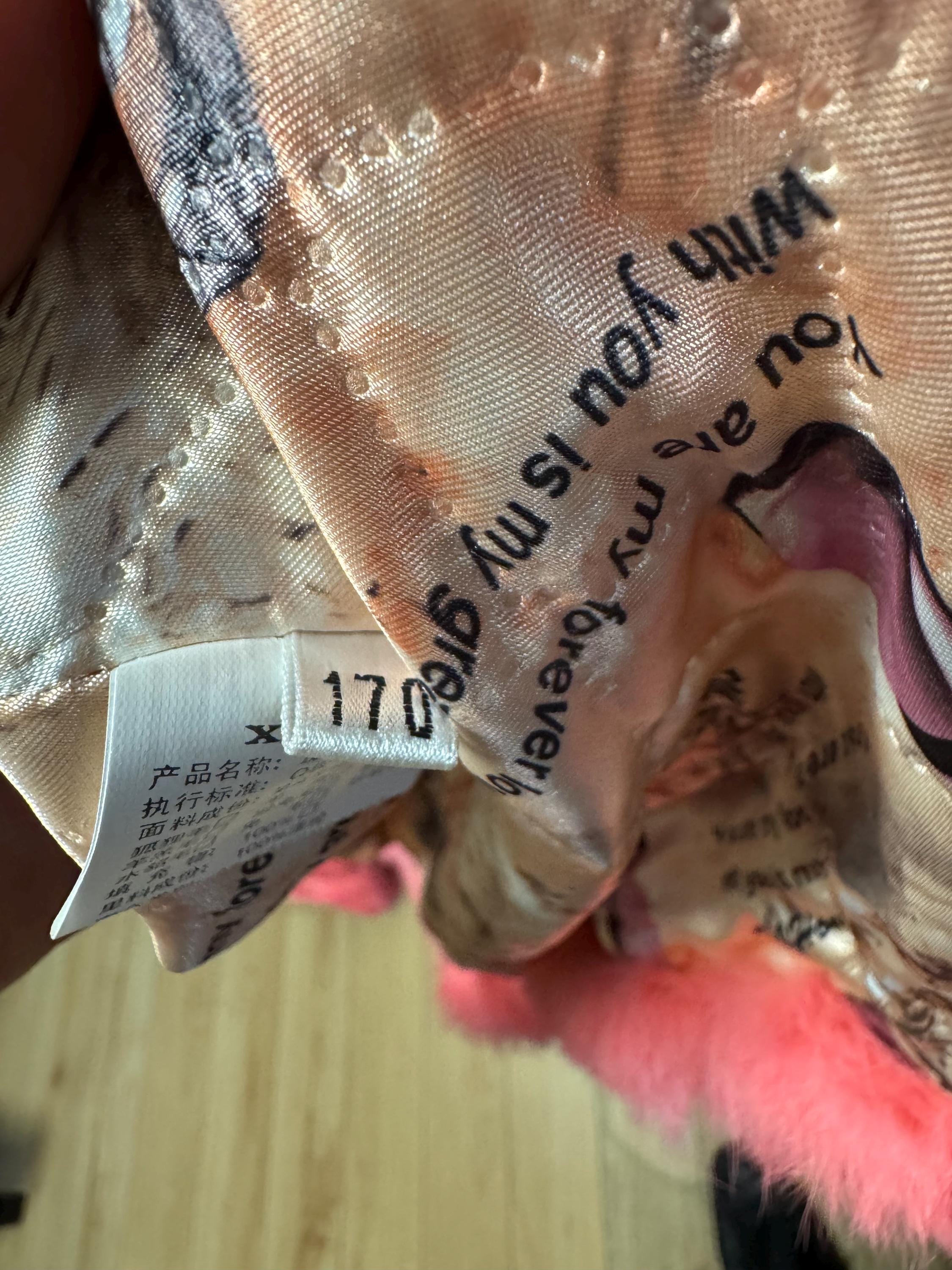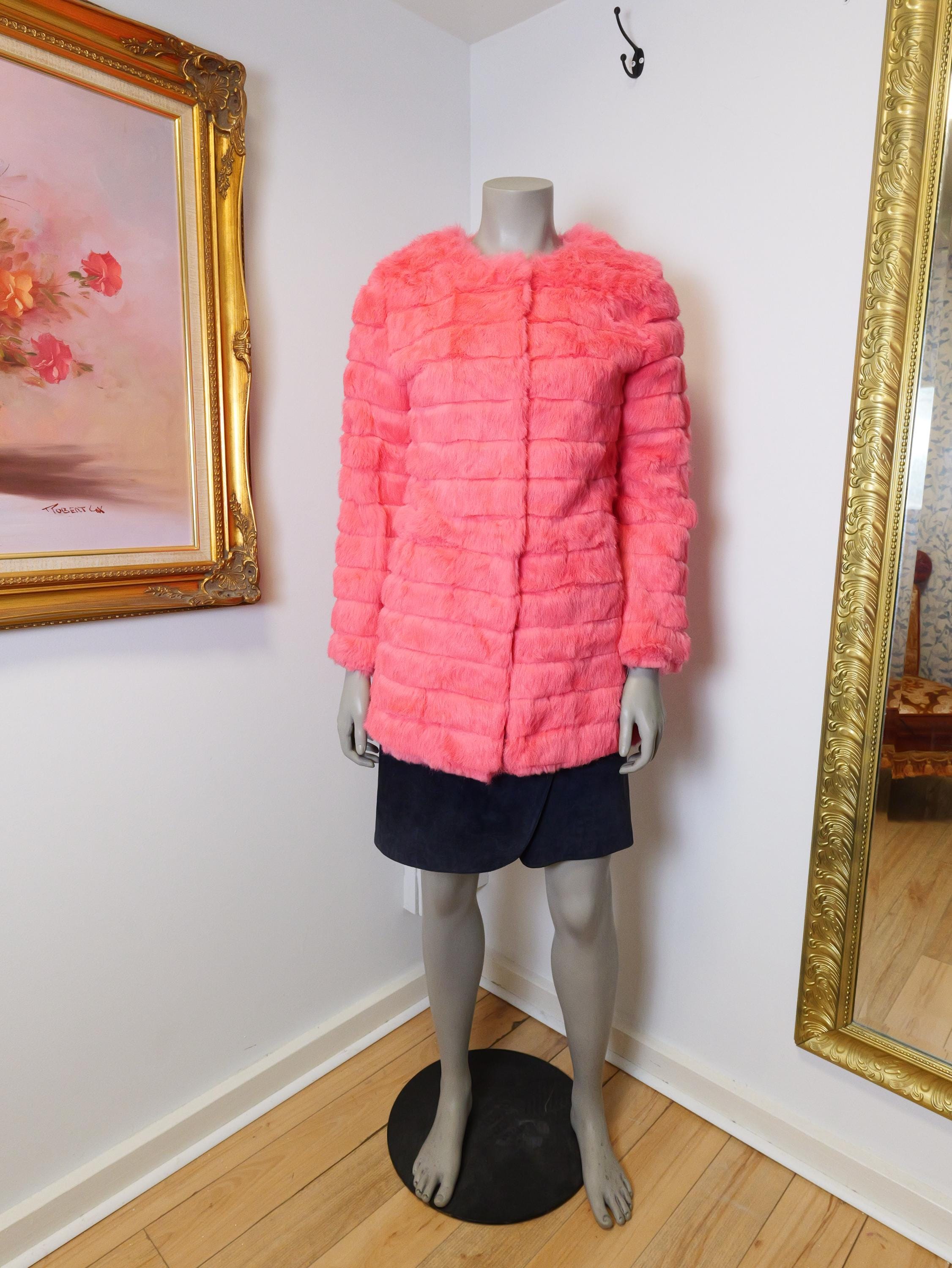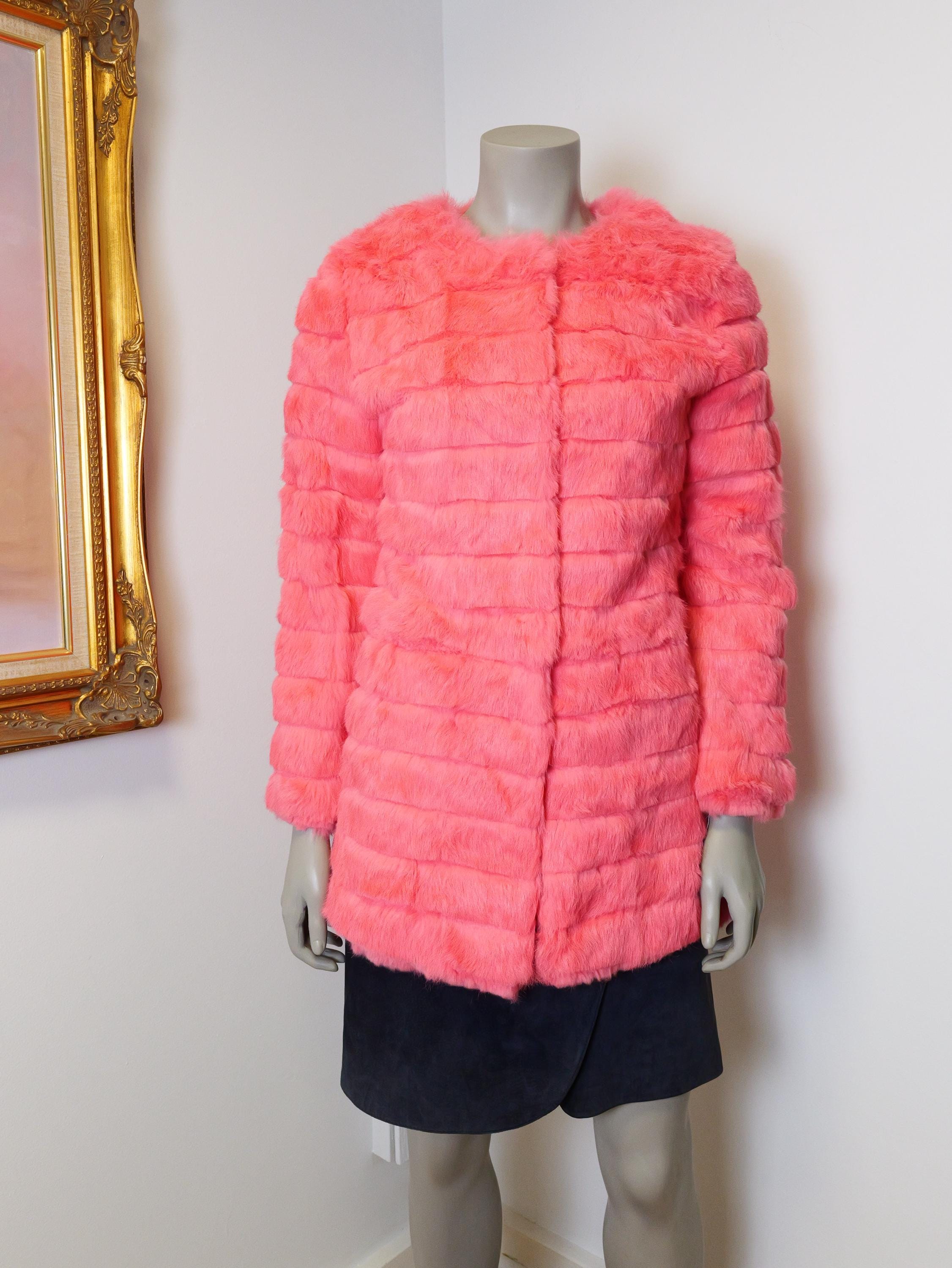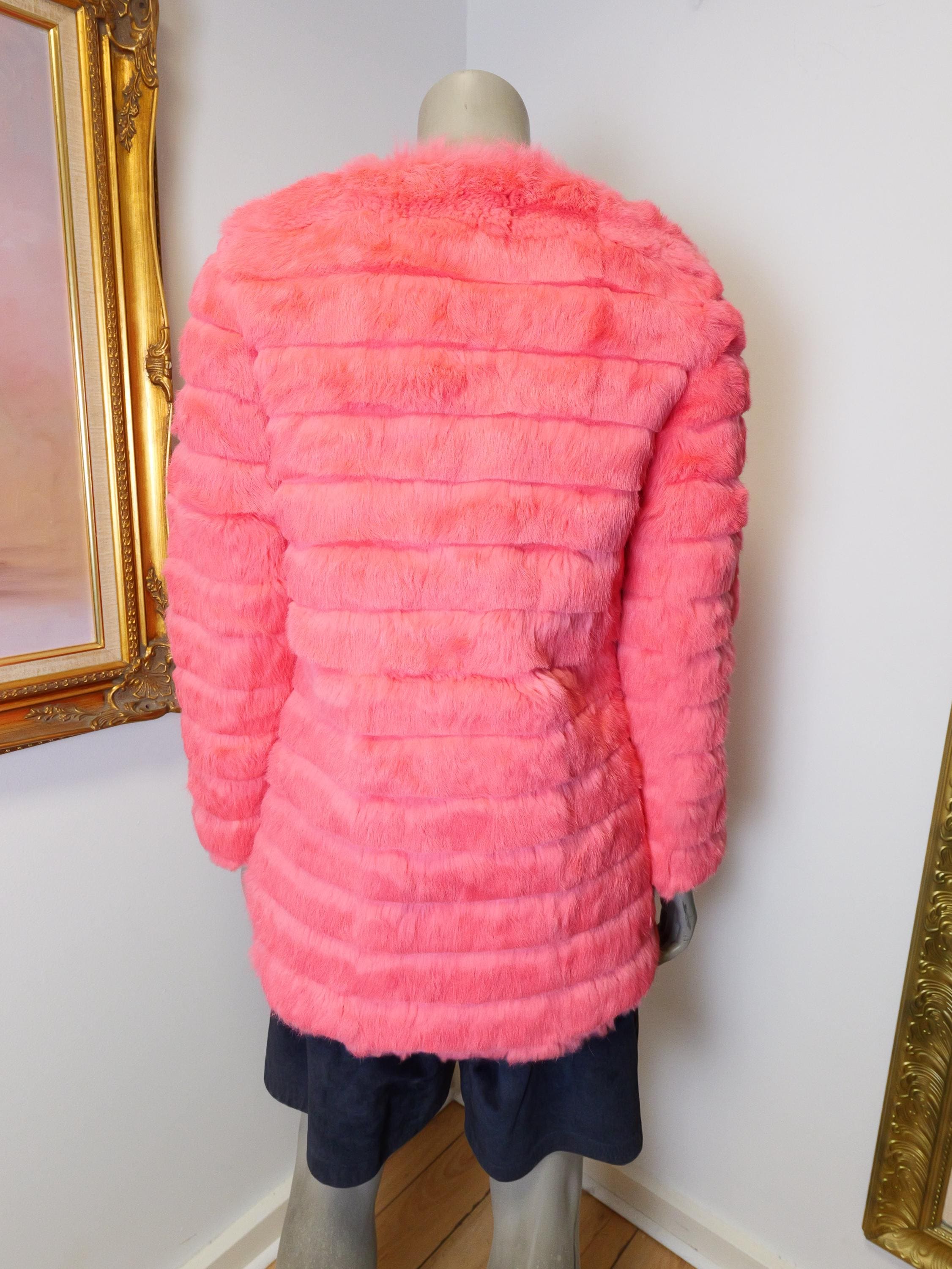 Best fit will be an XS to Small. Closes with hidden fur clips. Close snaps down.