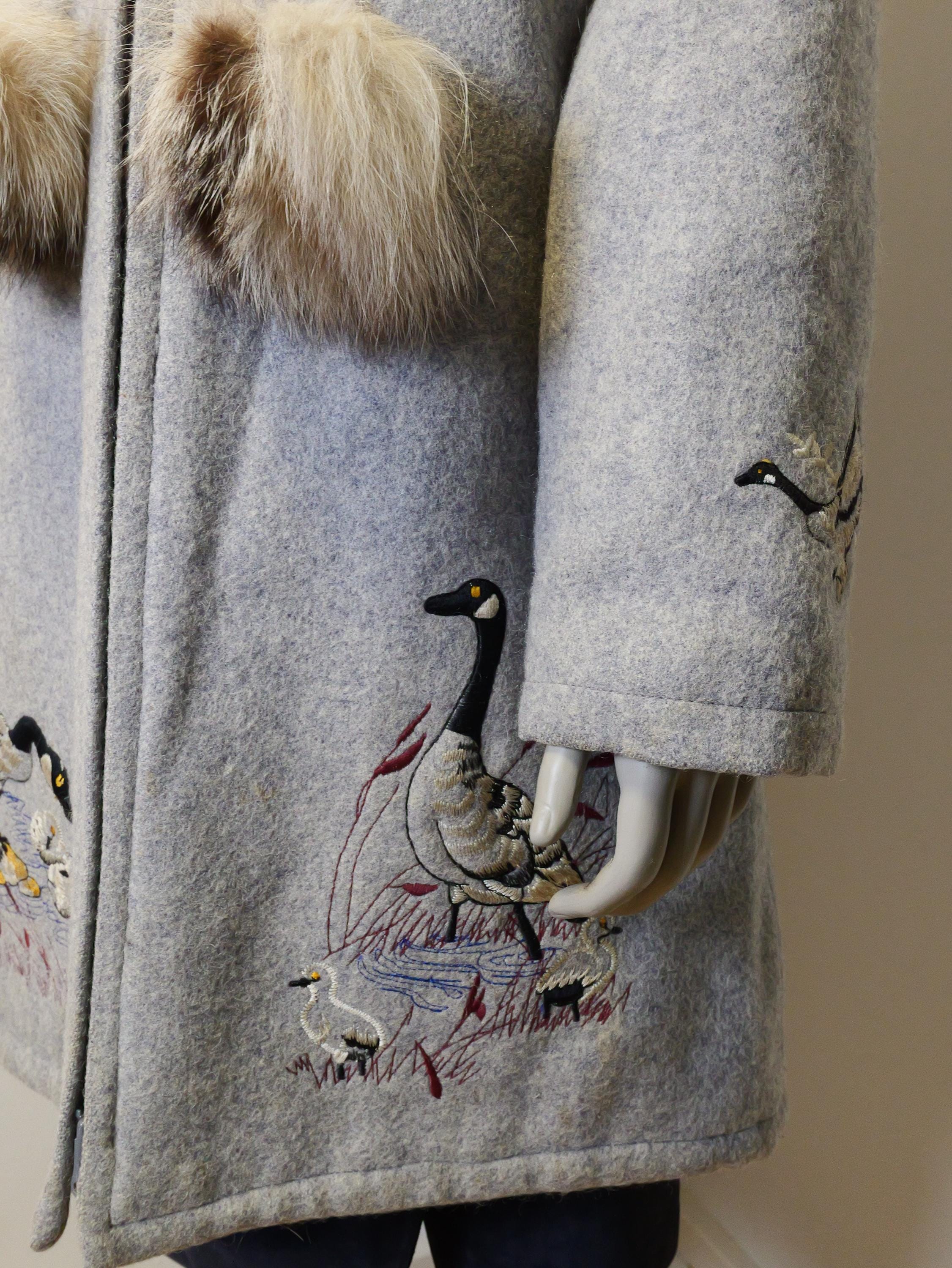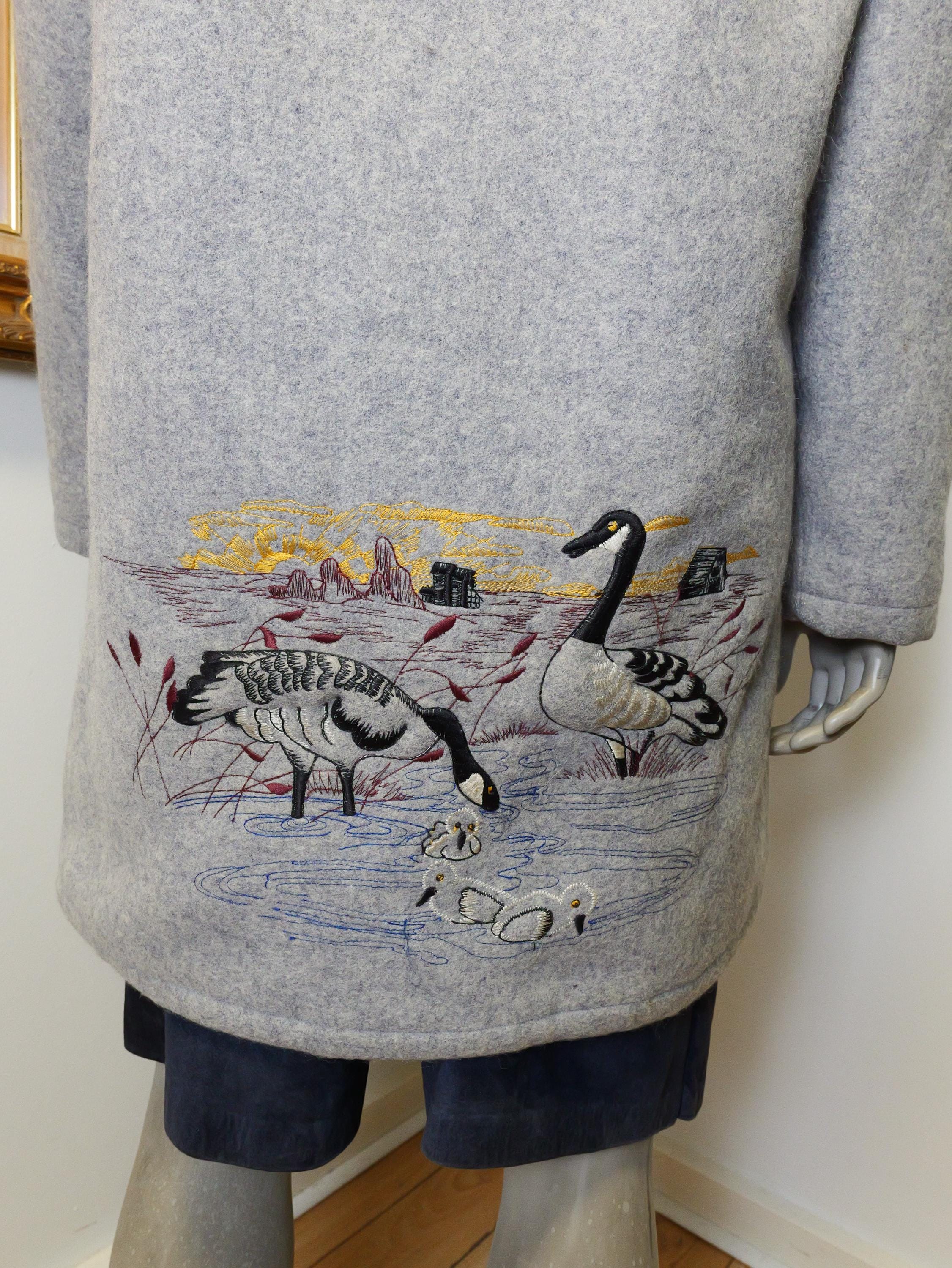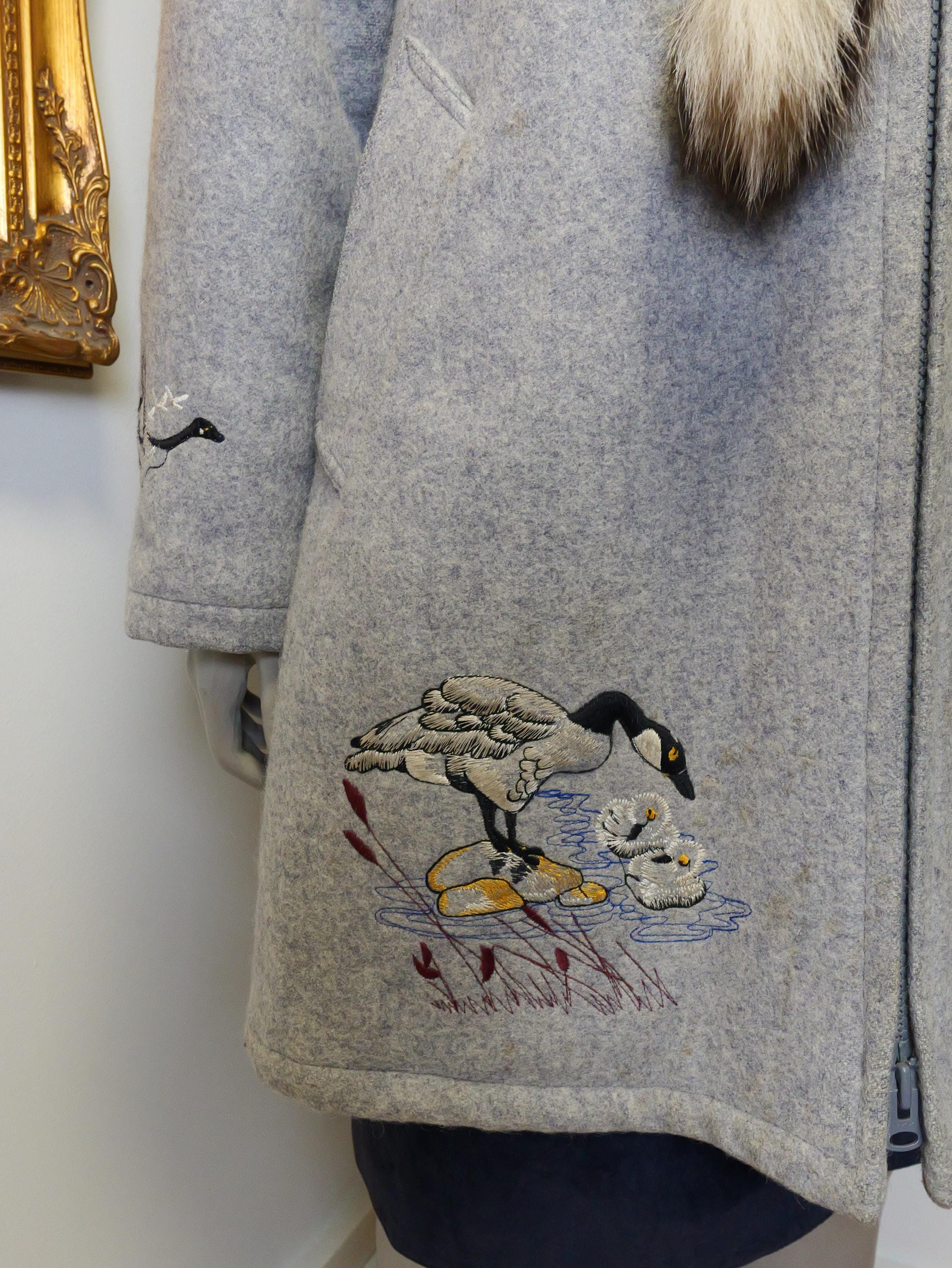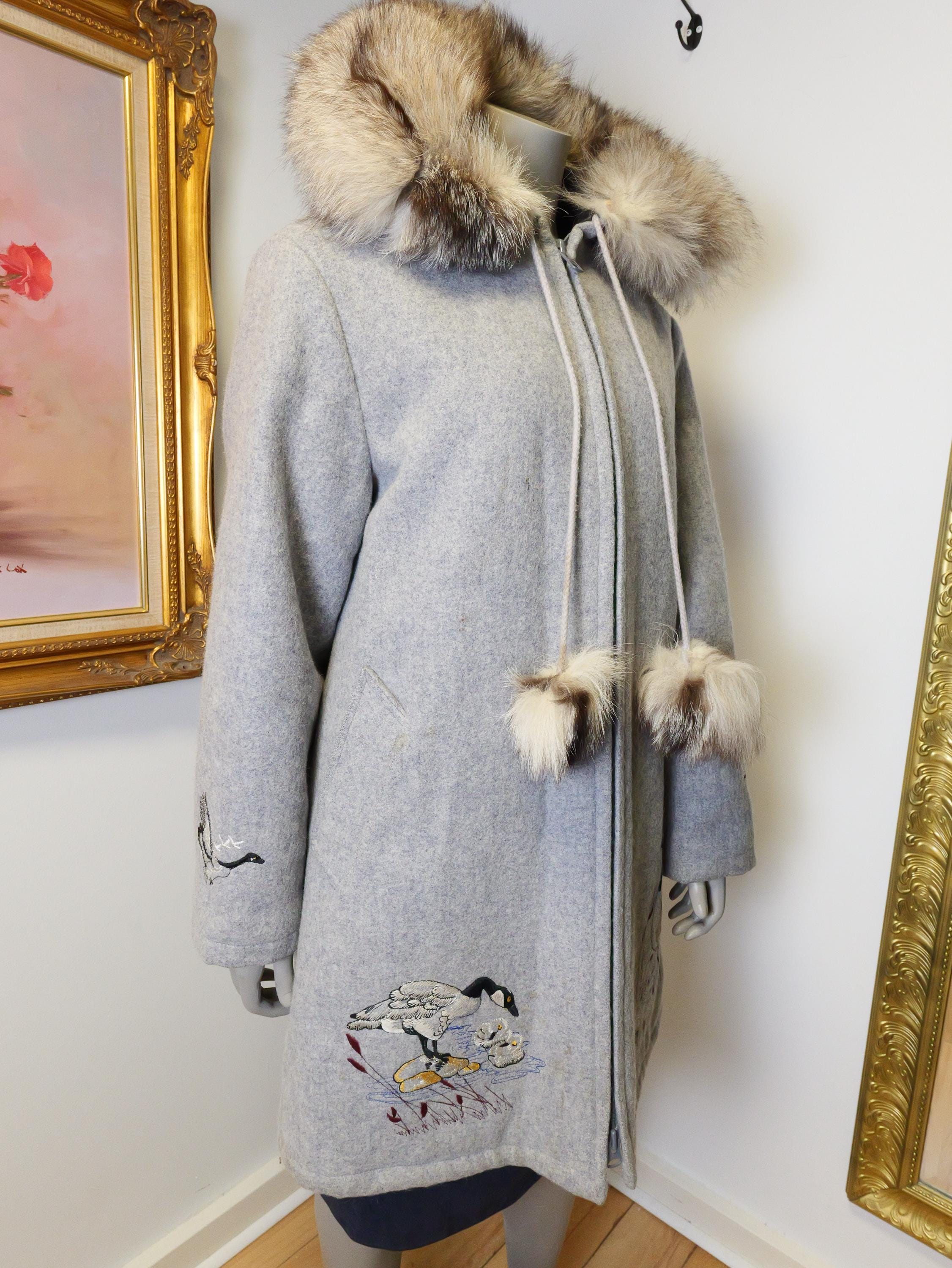 100% wool. Great quality vintage Winter coat, shows some light past use and wear. Can still be worn many years to come!