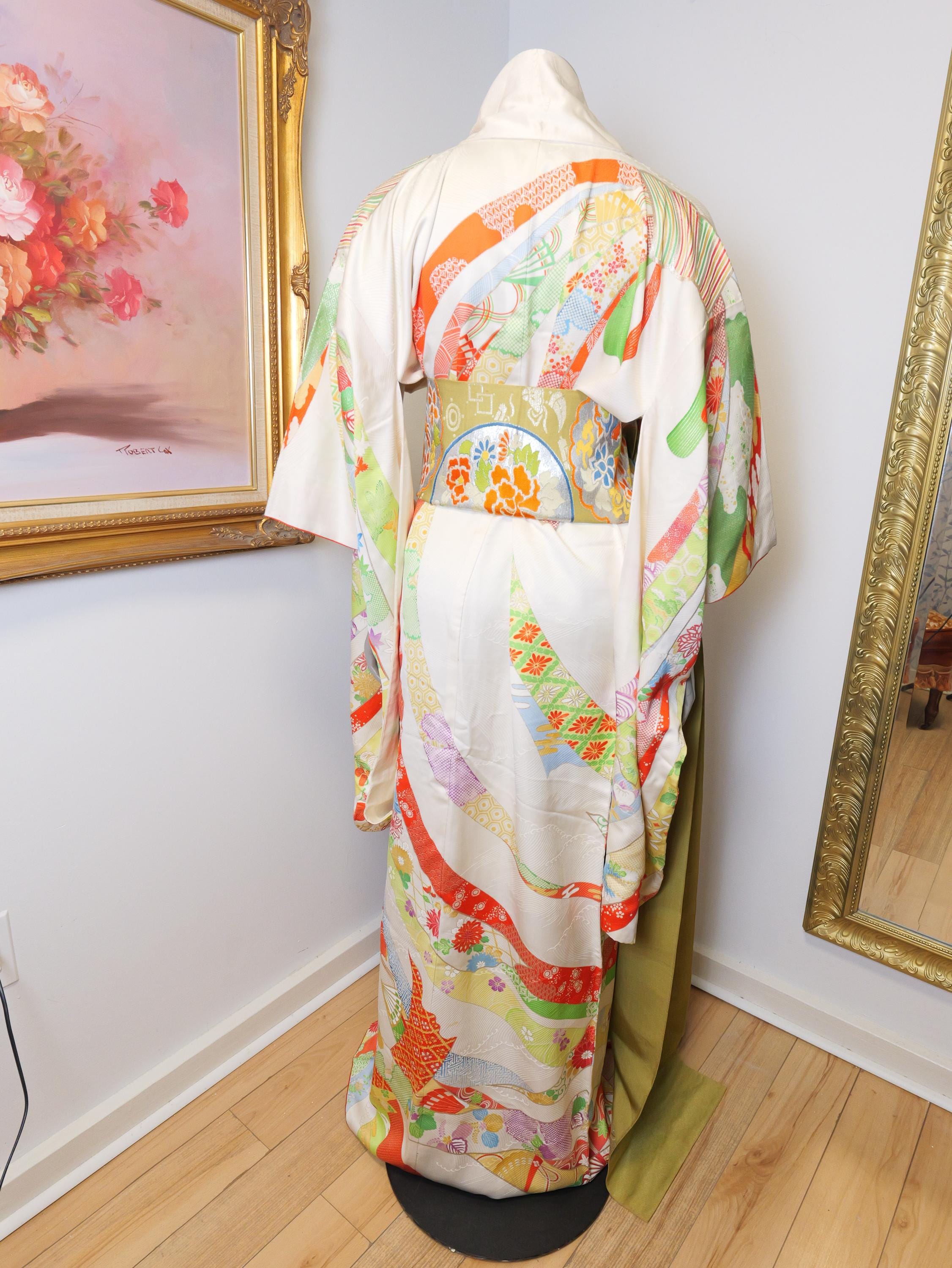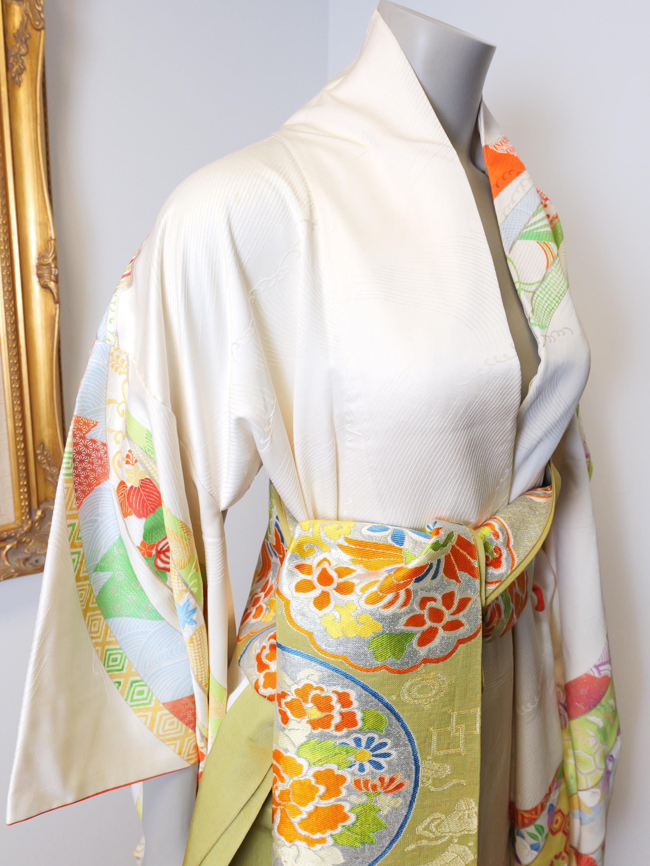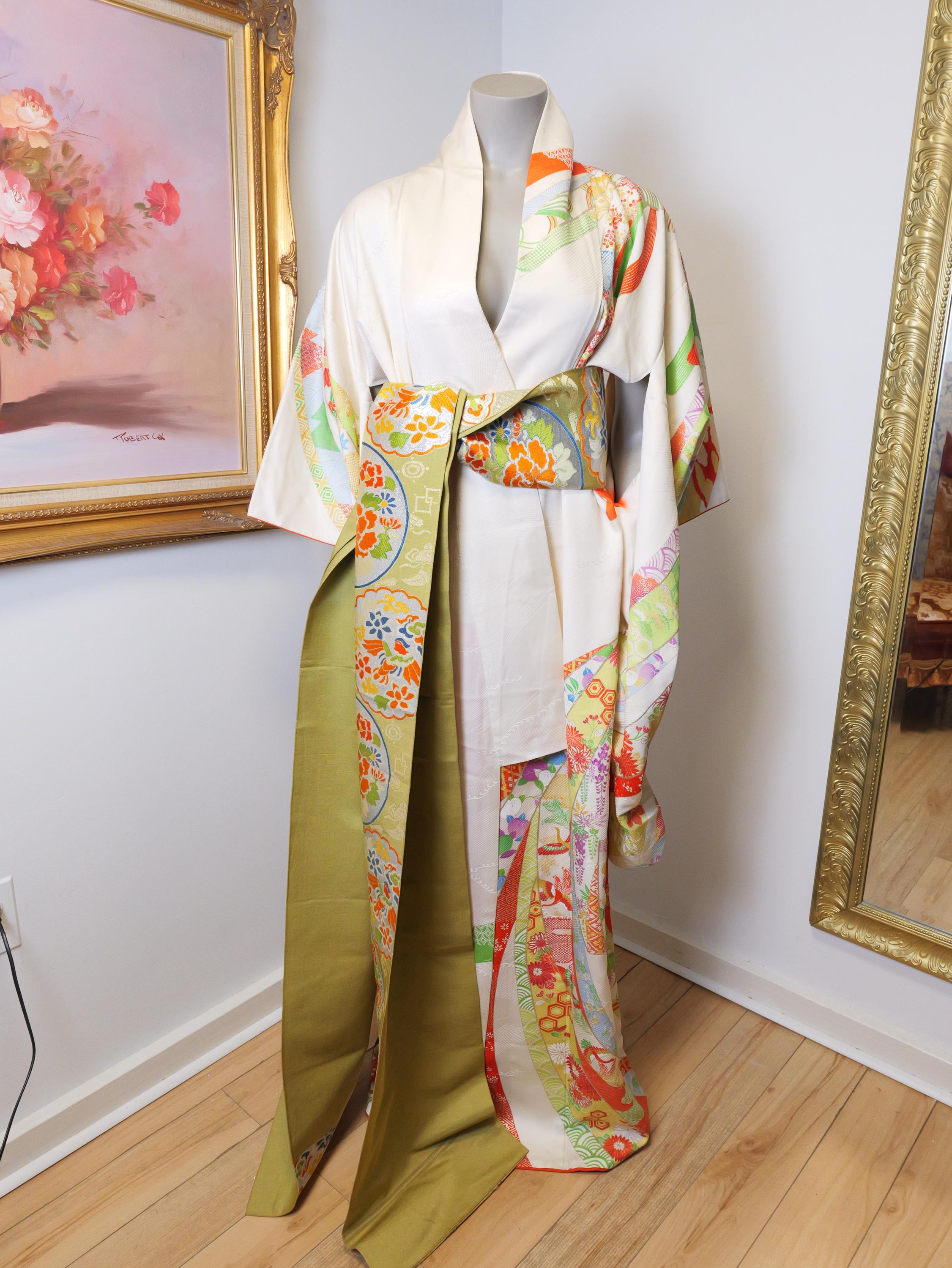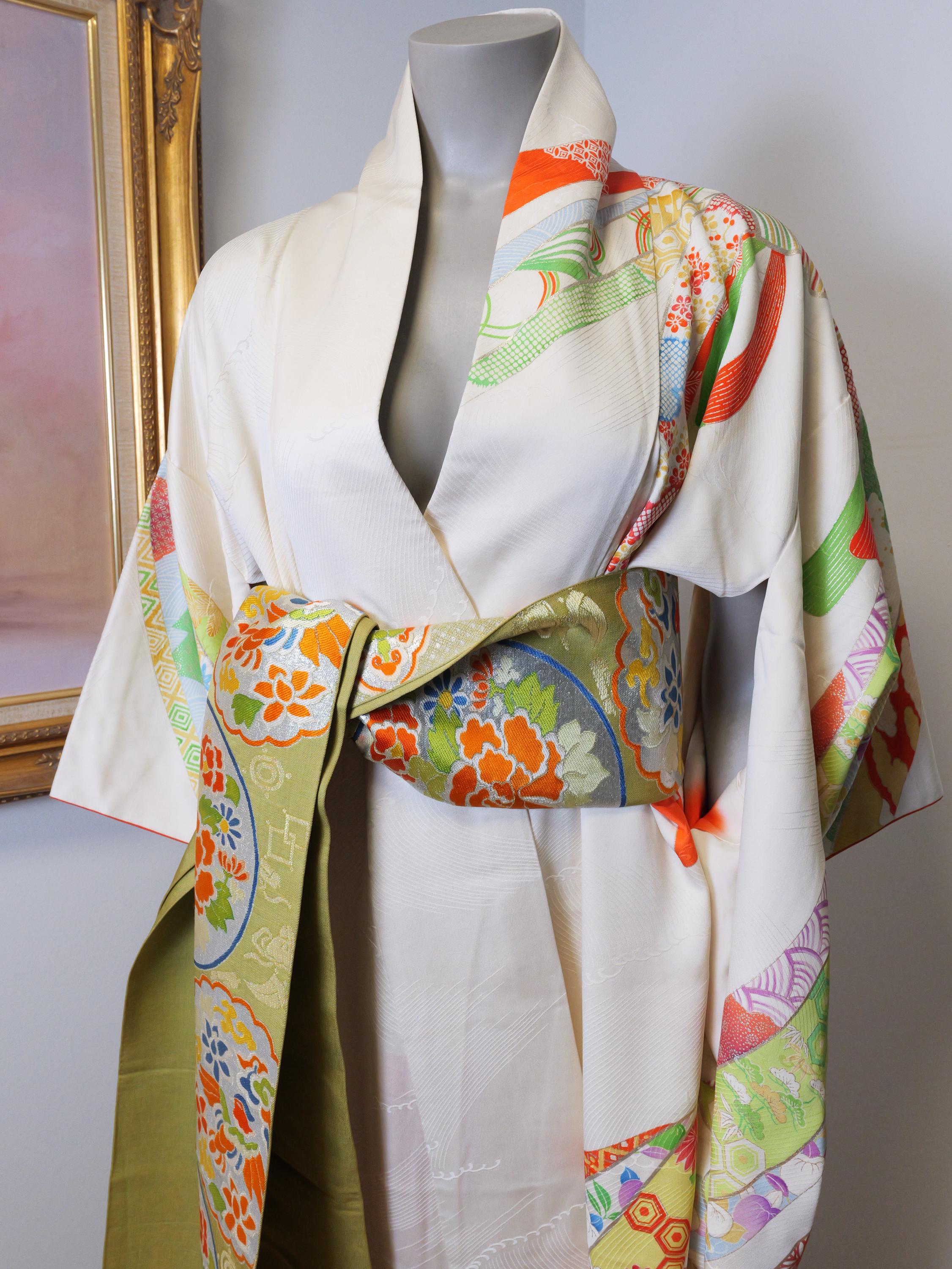Beautiful vintage kimono robe with matching Obi belt.