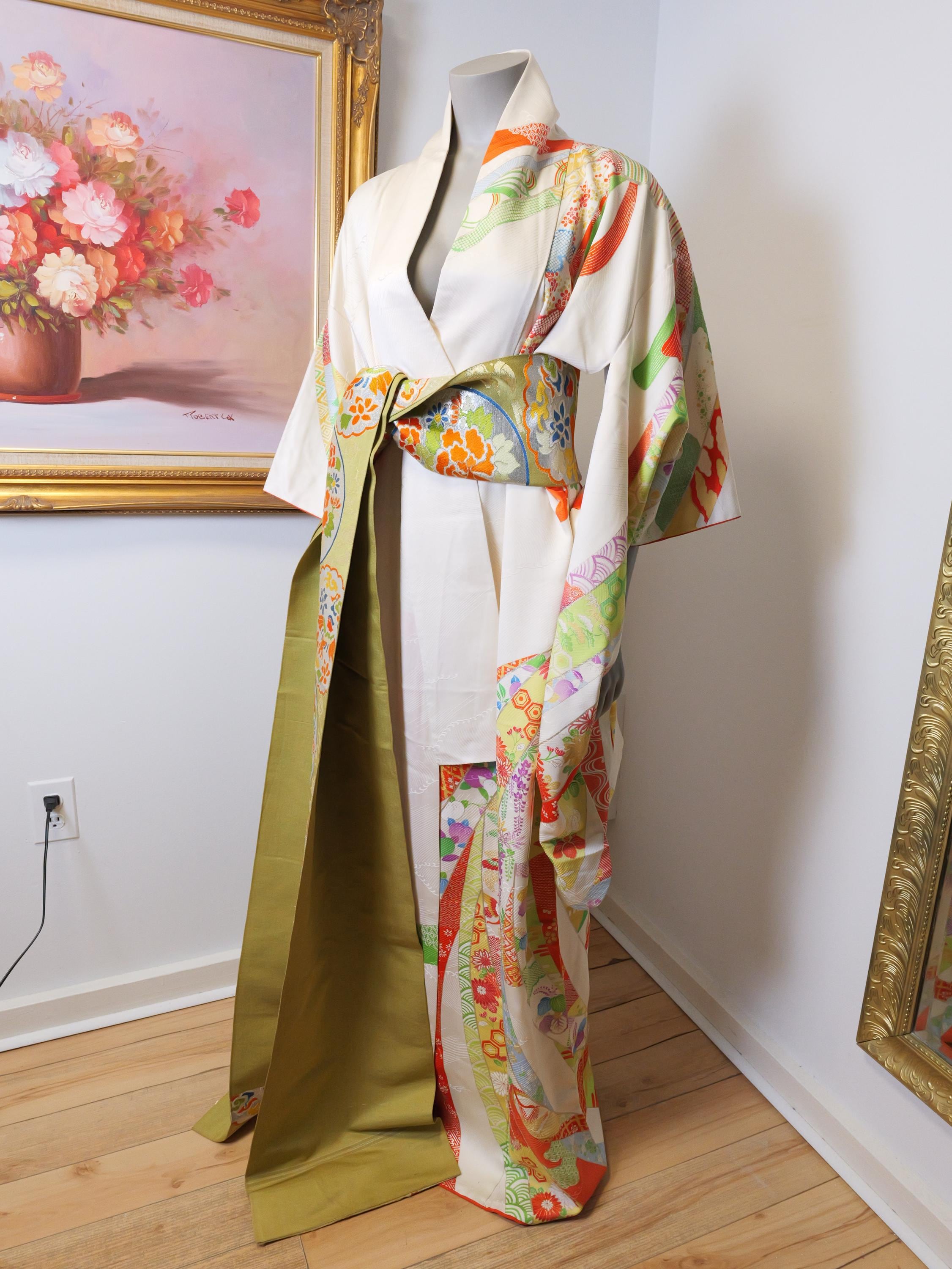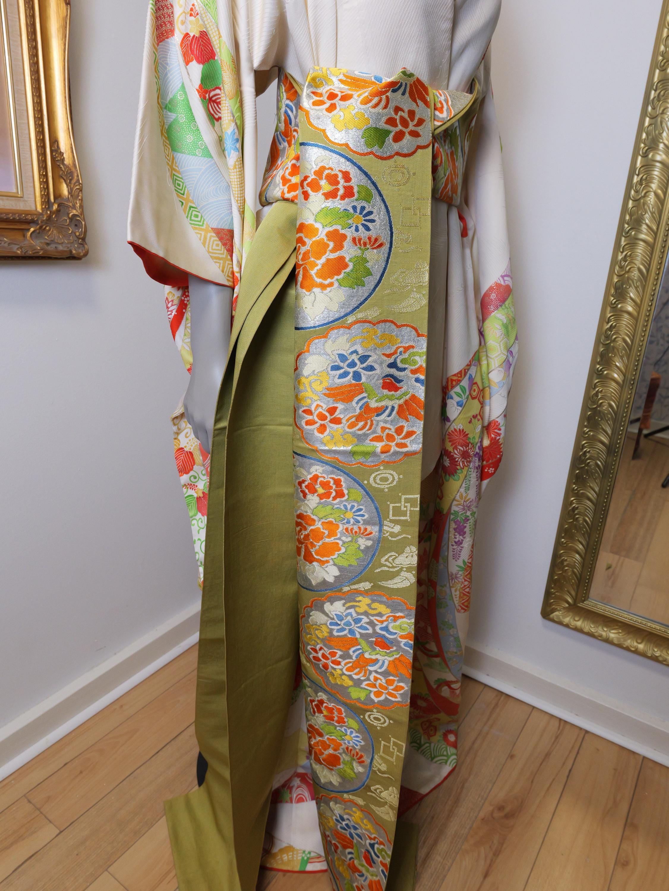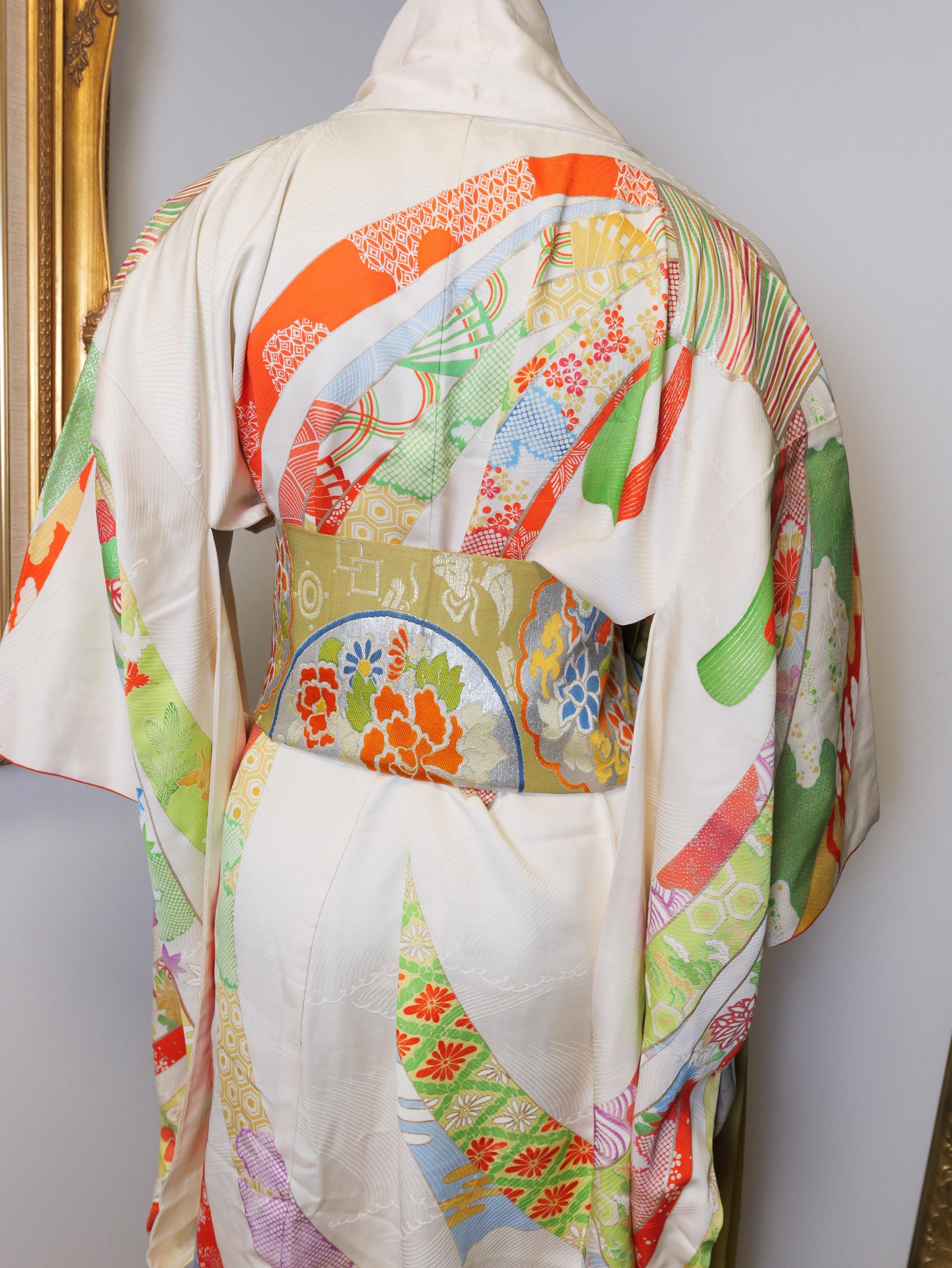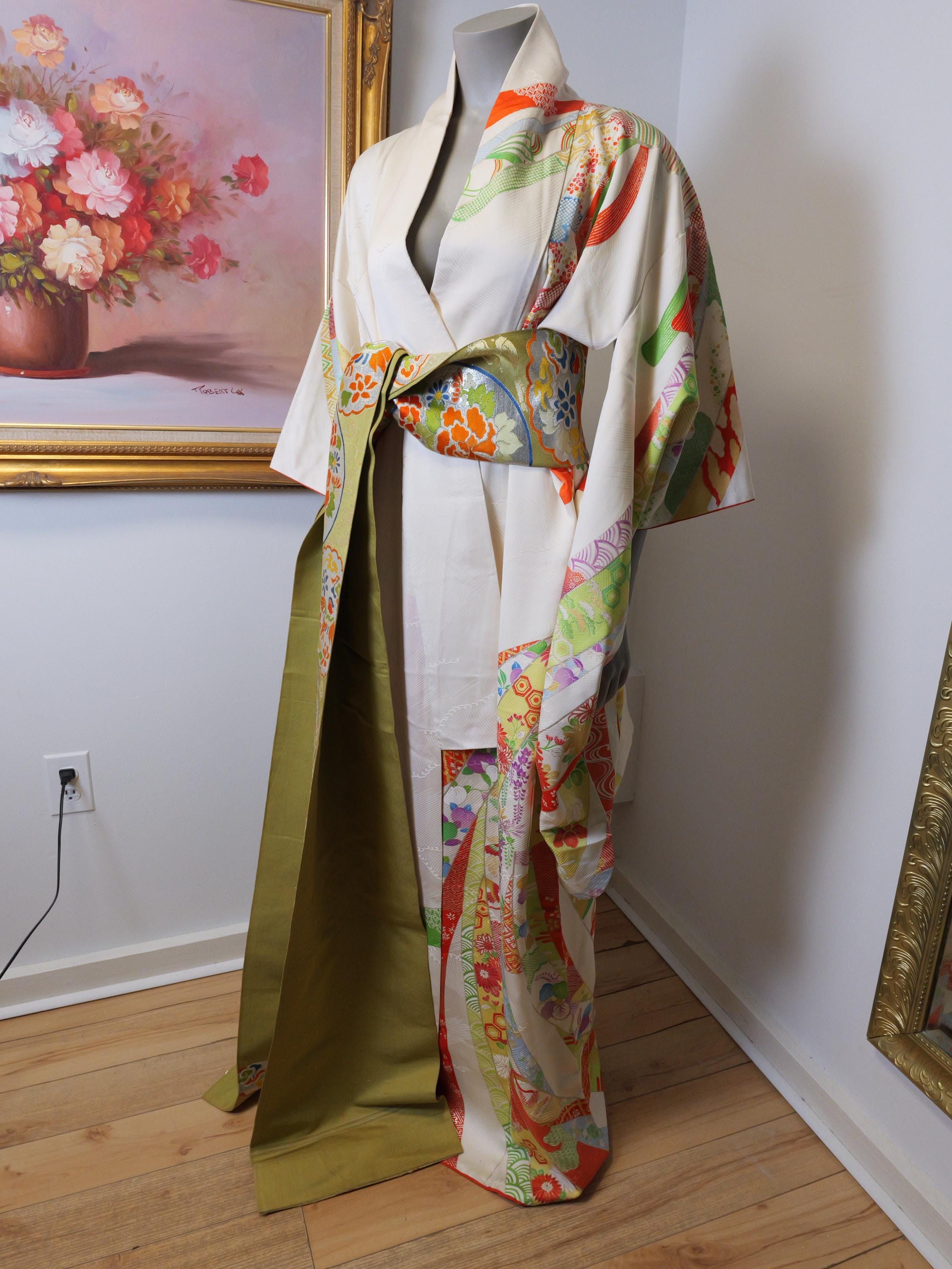 Beautiful vintage kimono robe with matching Obi belt.