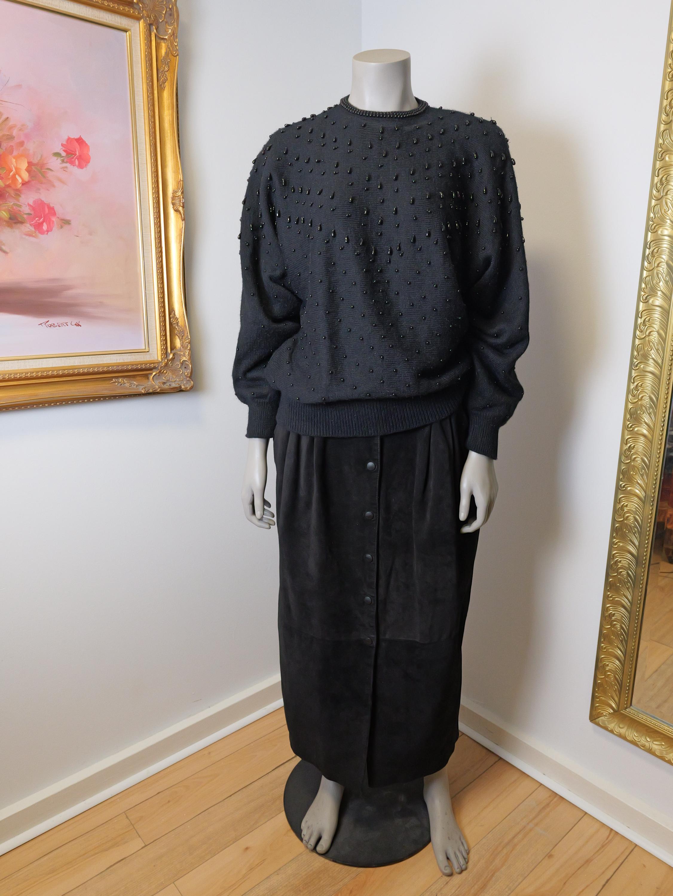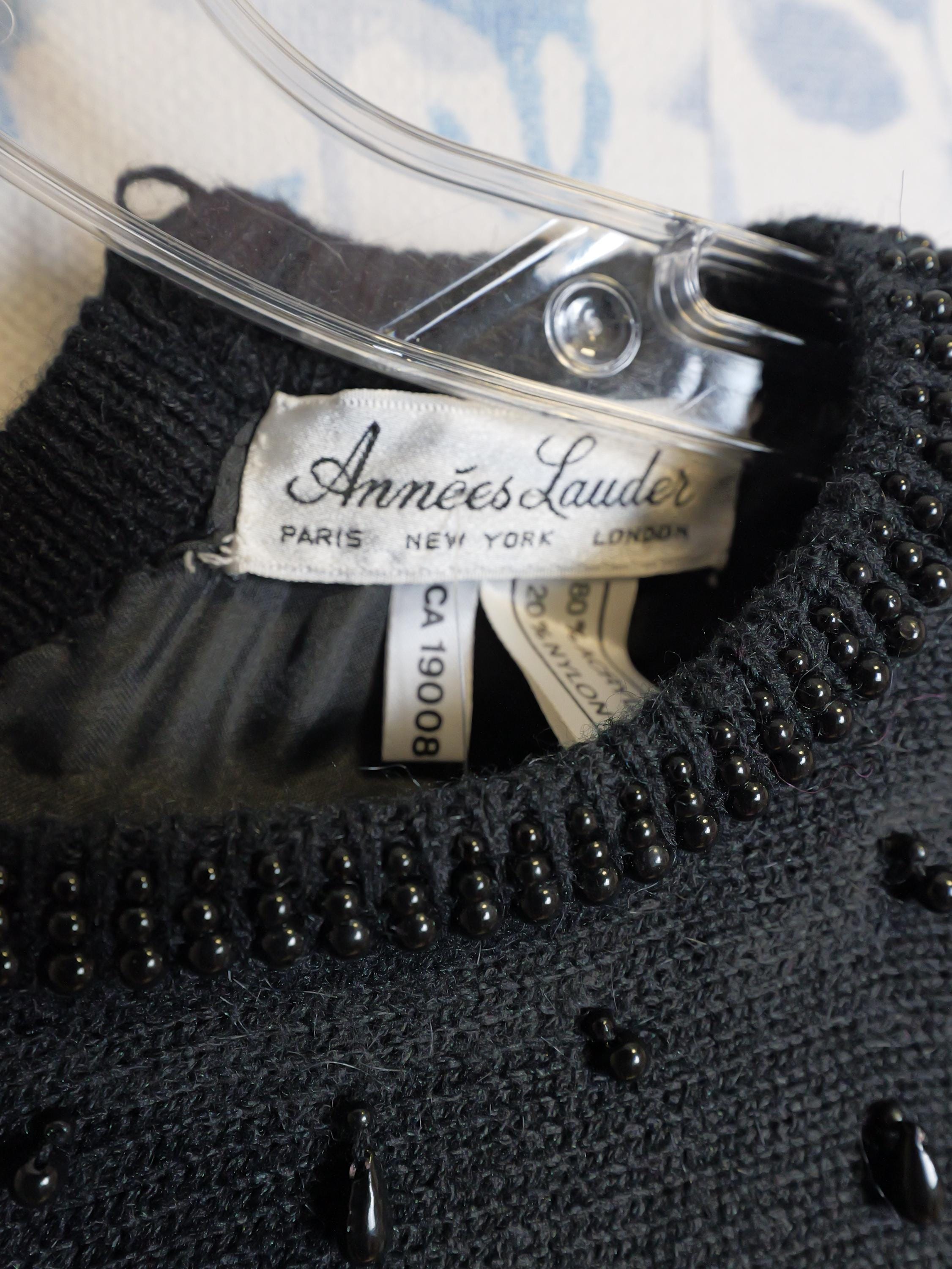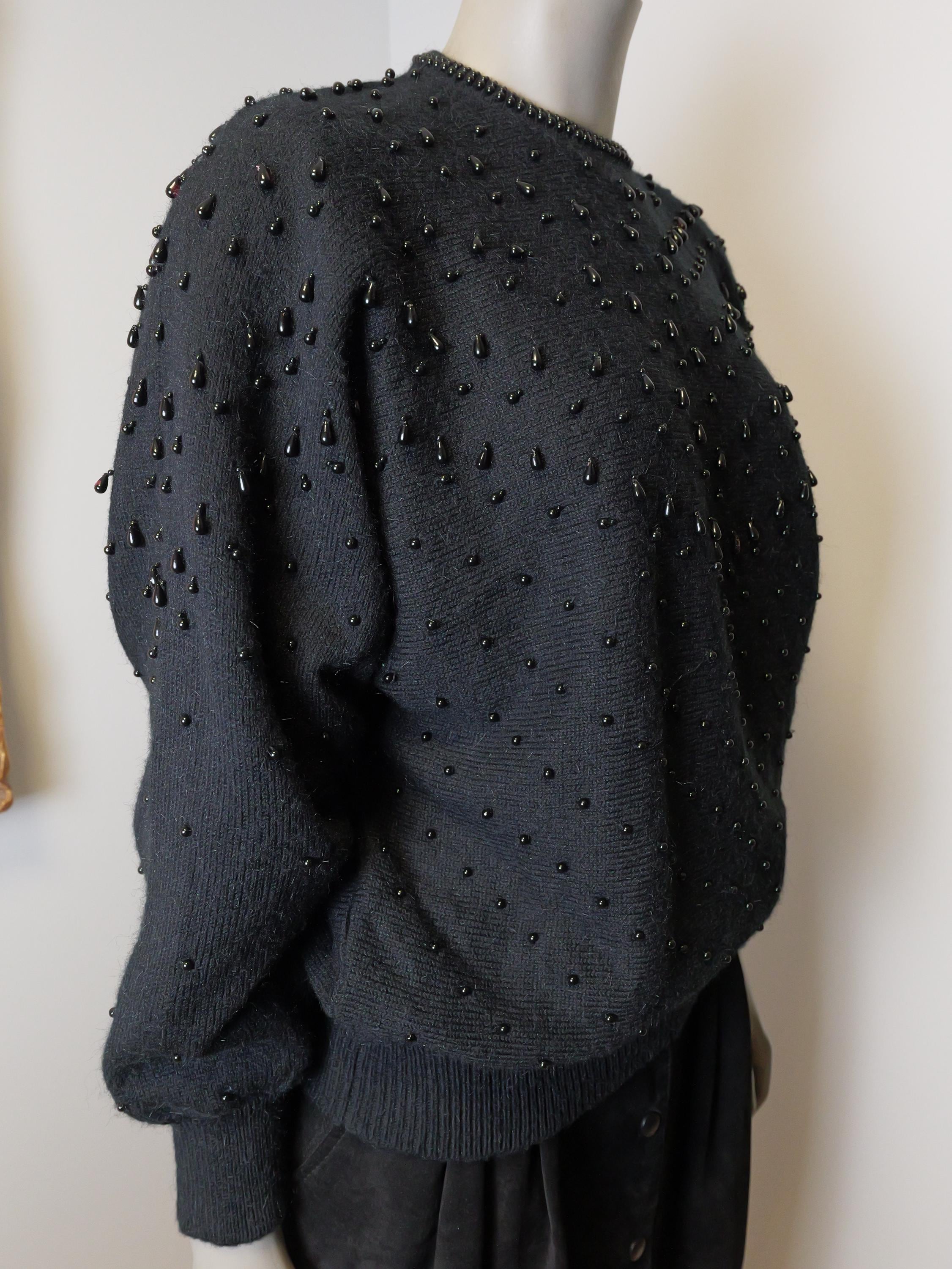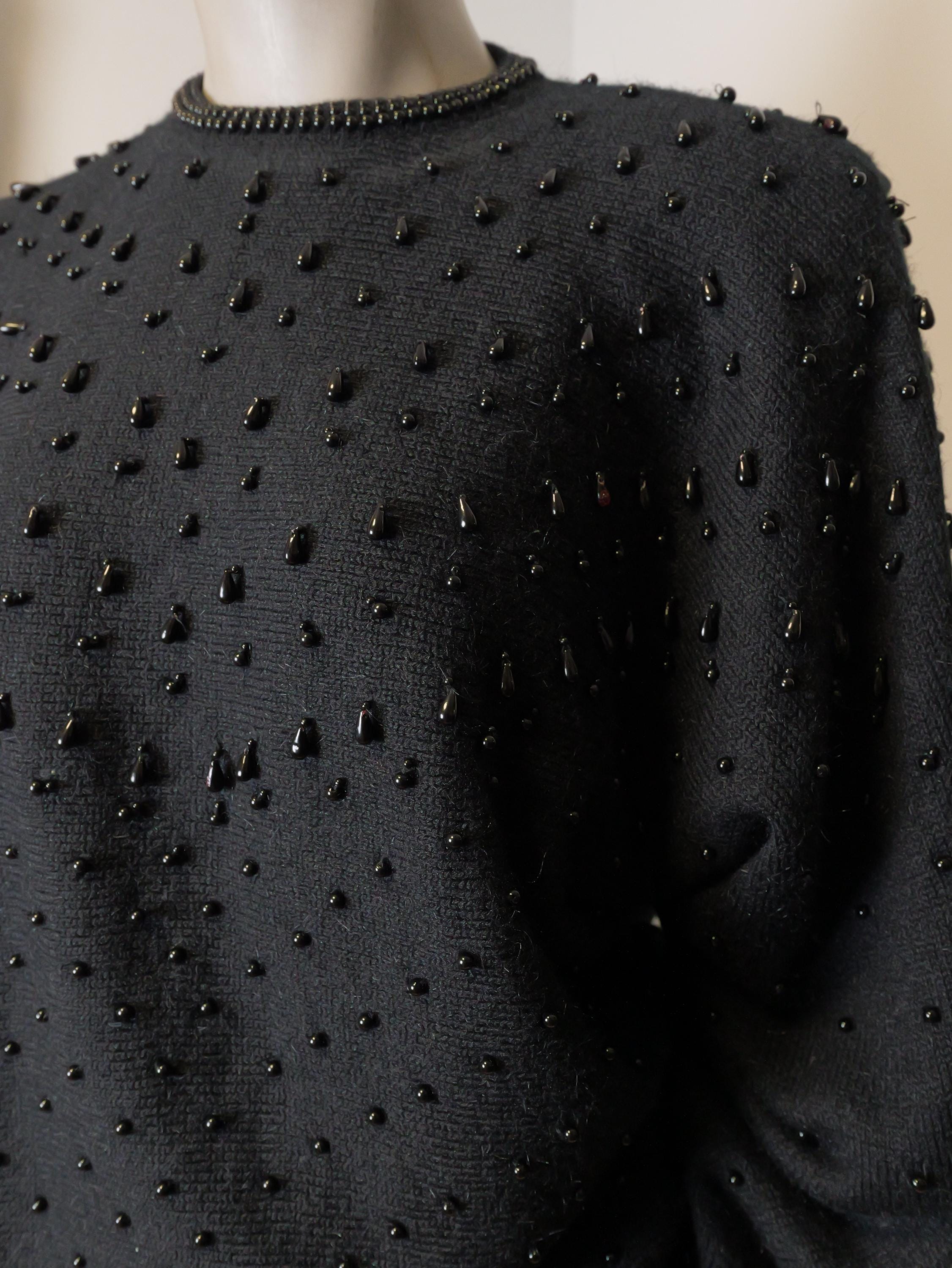 Women's 1980's black sweater with beaded neckline and a smattering of pretty tear drop shaped beads.