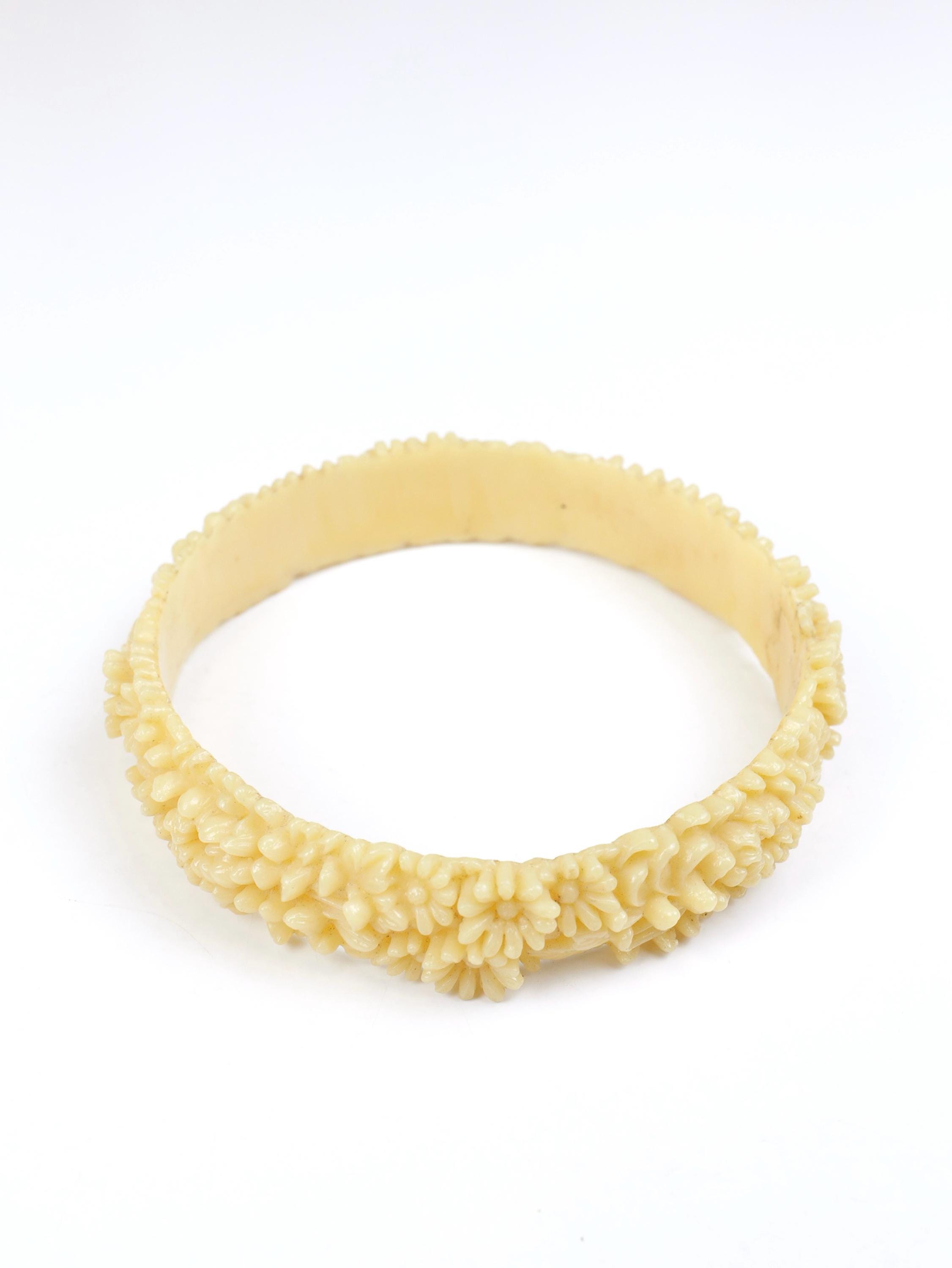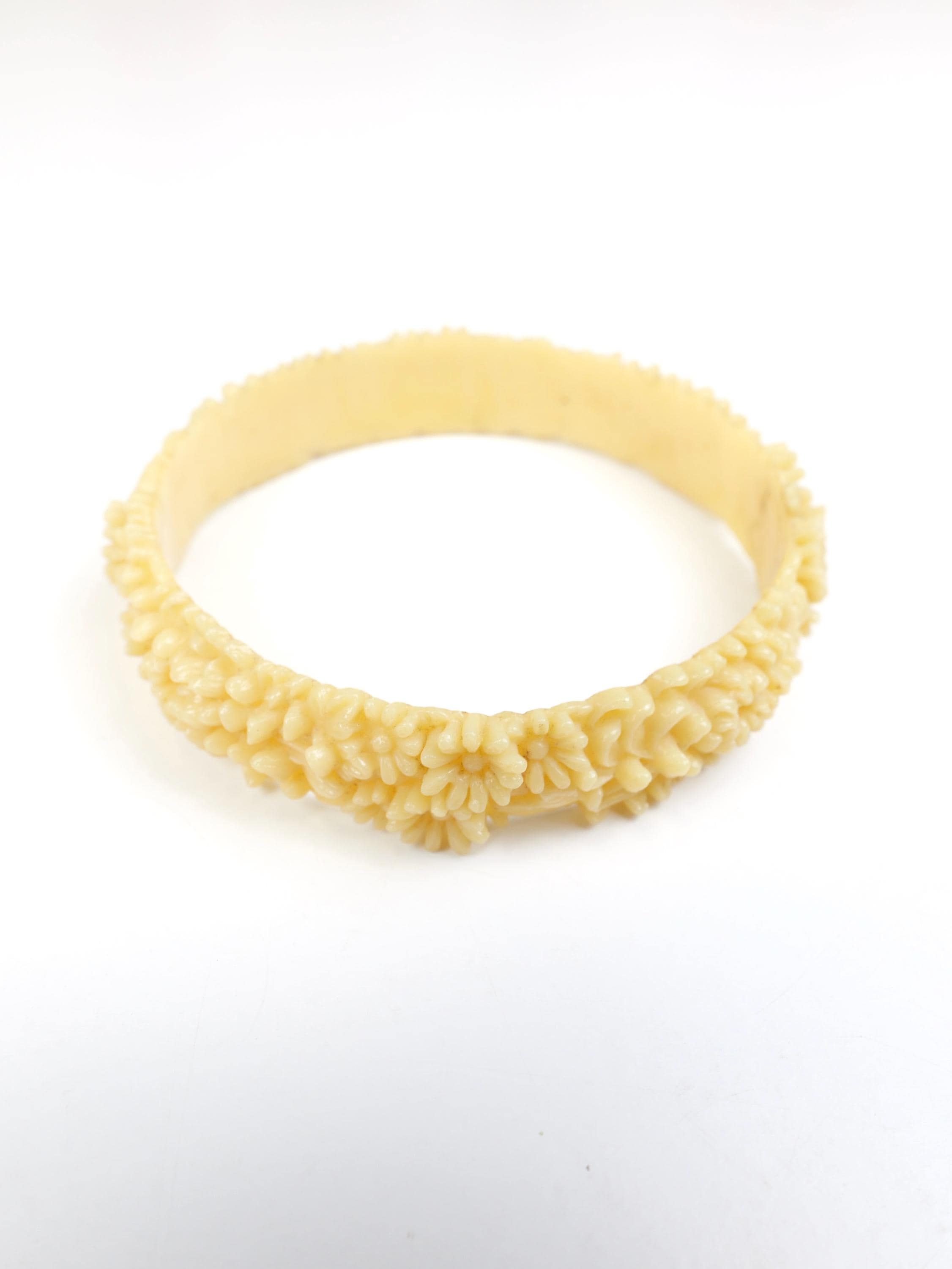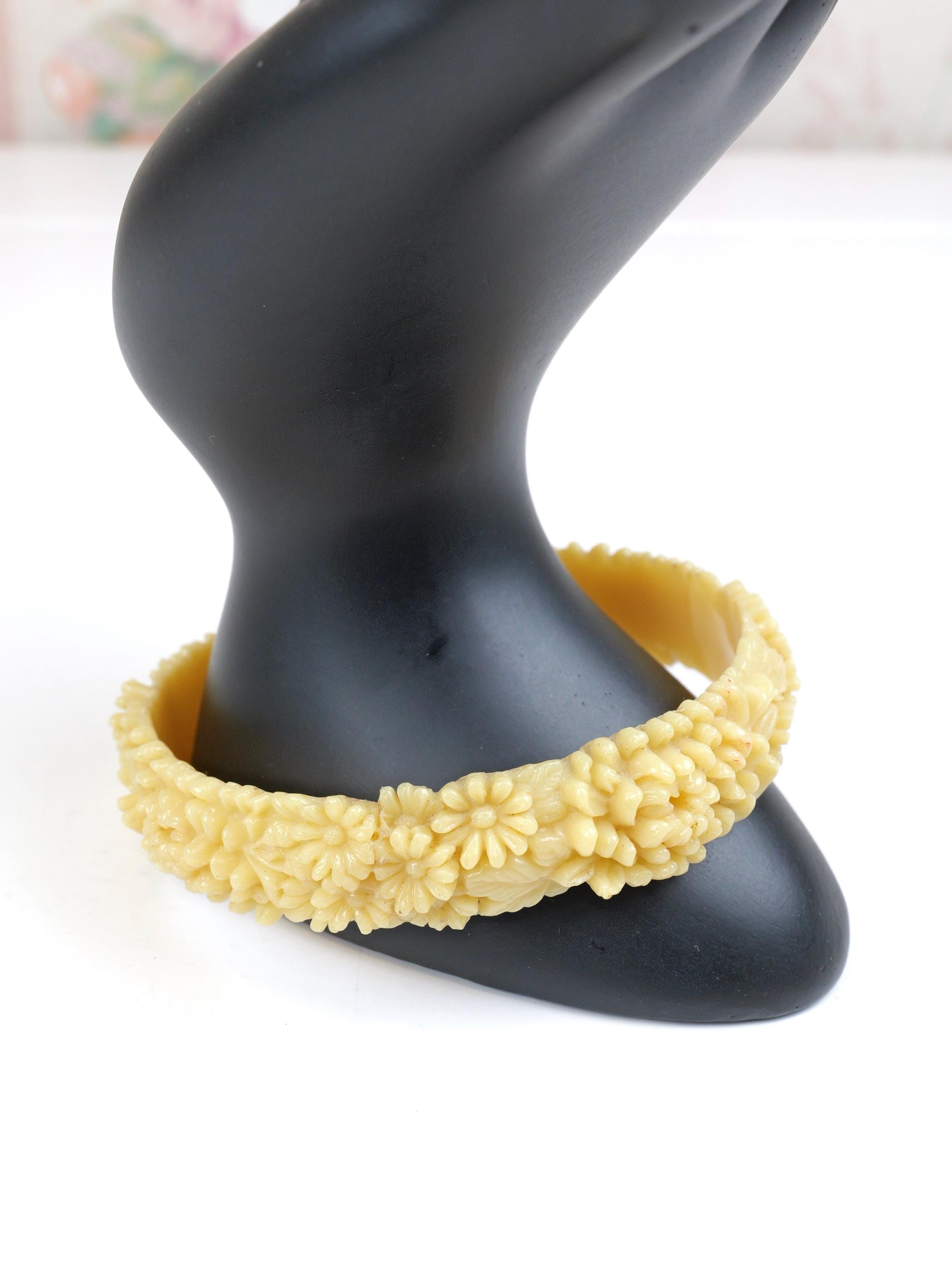 Super pretty 1940's to 1950's women's vintage bangle bracelet with a complete garden of pretty moulded flowers!