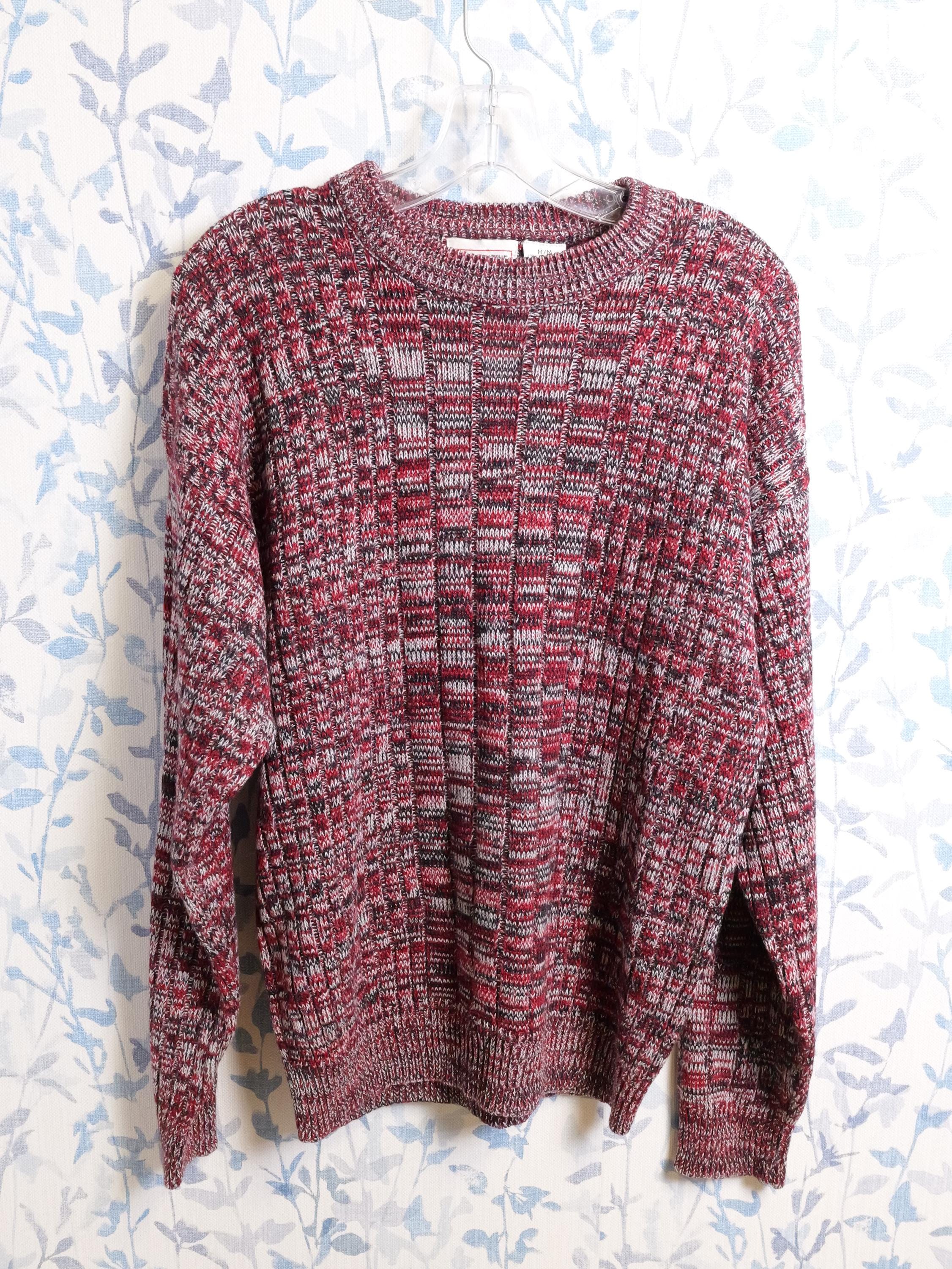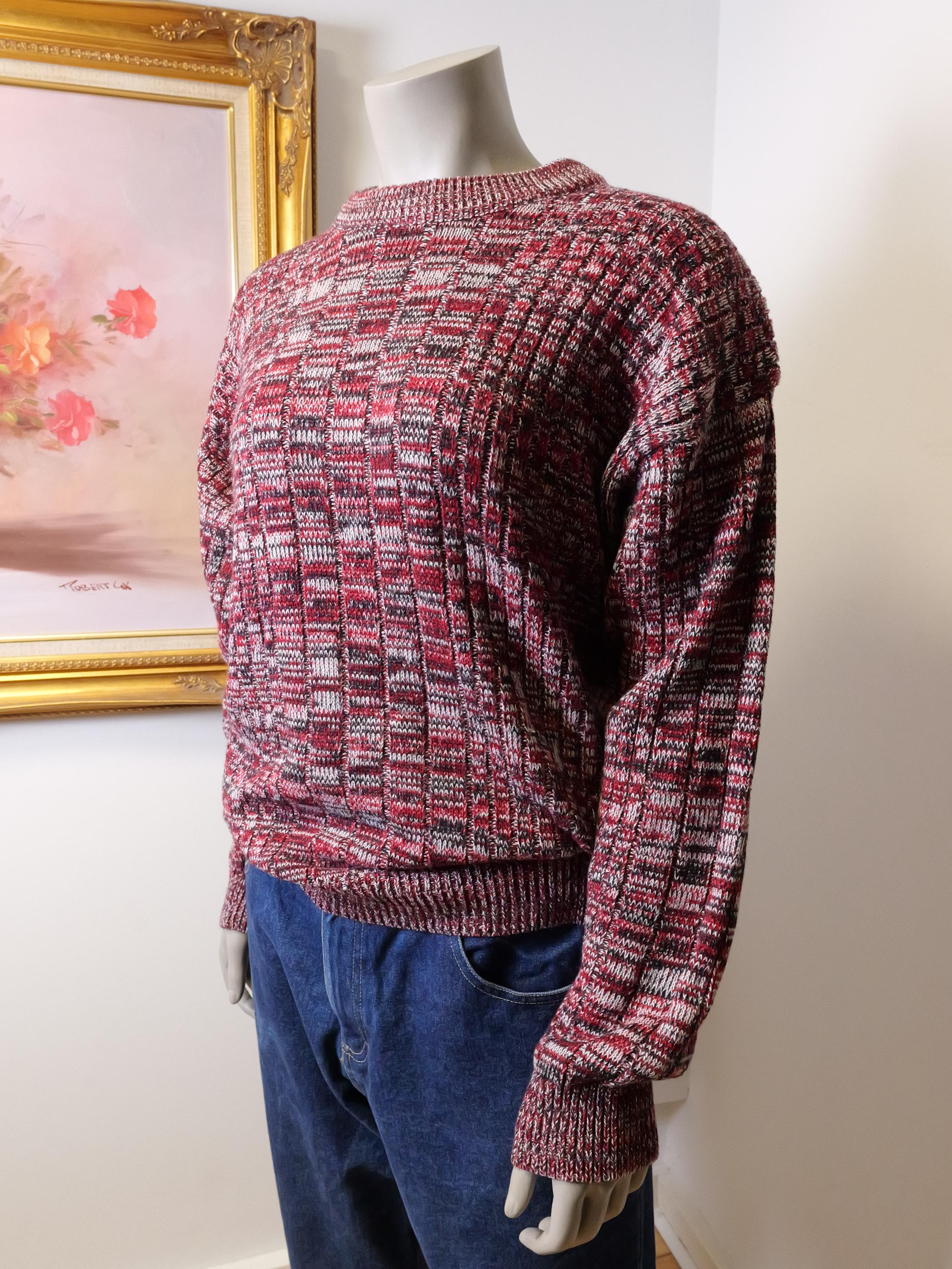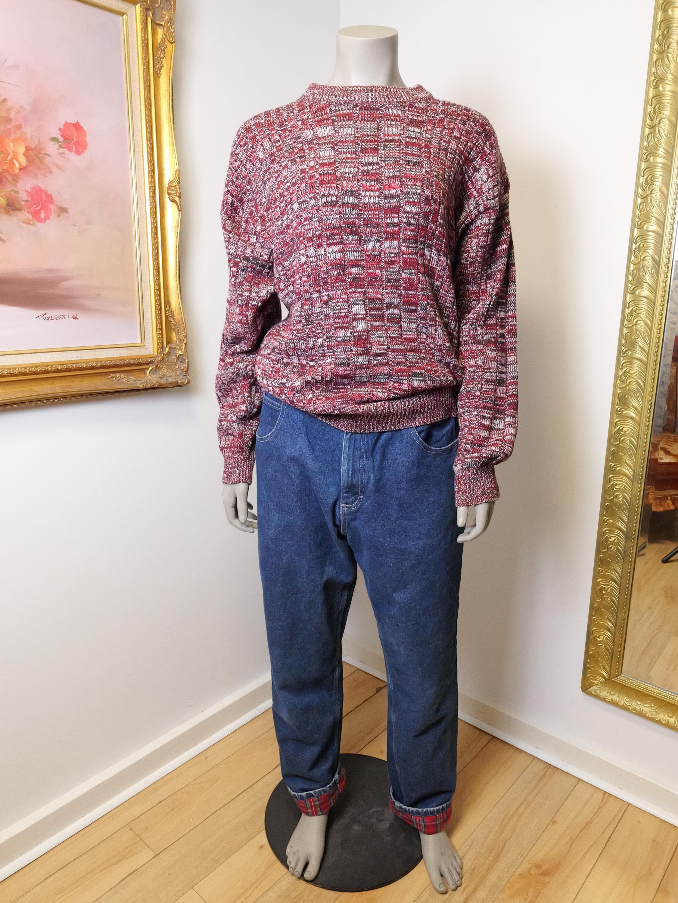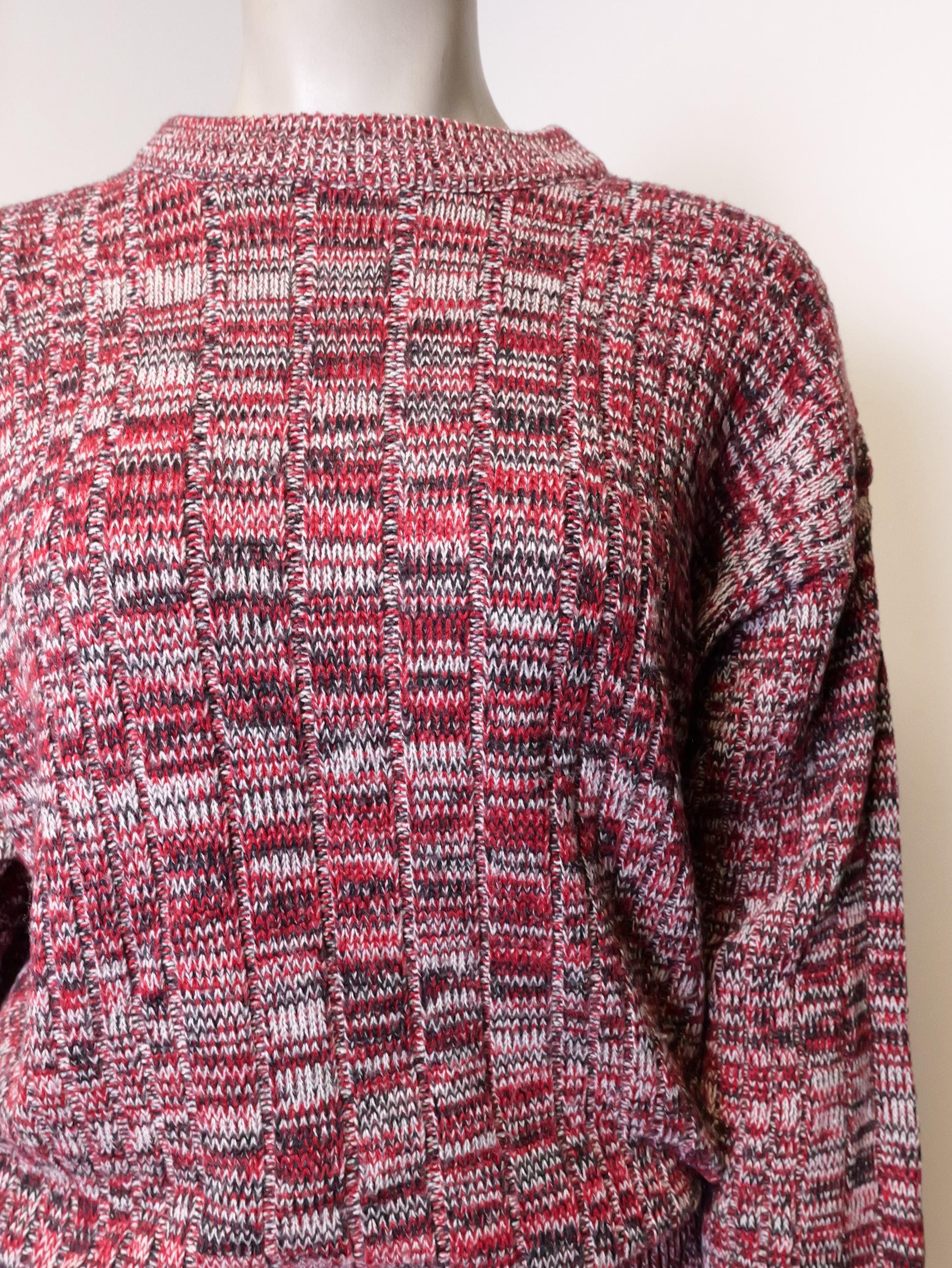 Acrylic, super comfy with stretch. Versatile piece to add to your winter vintage closet!
