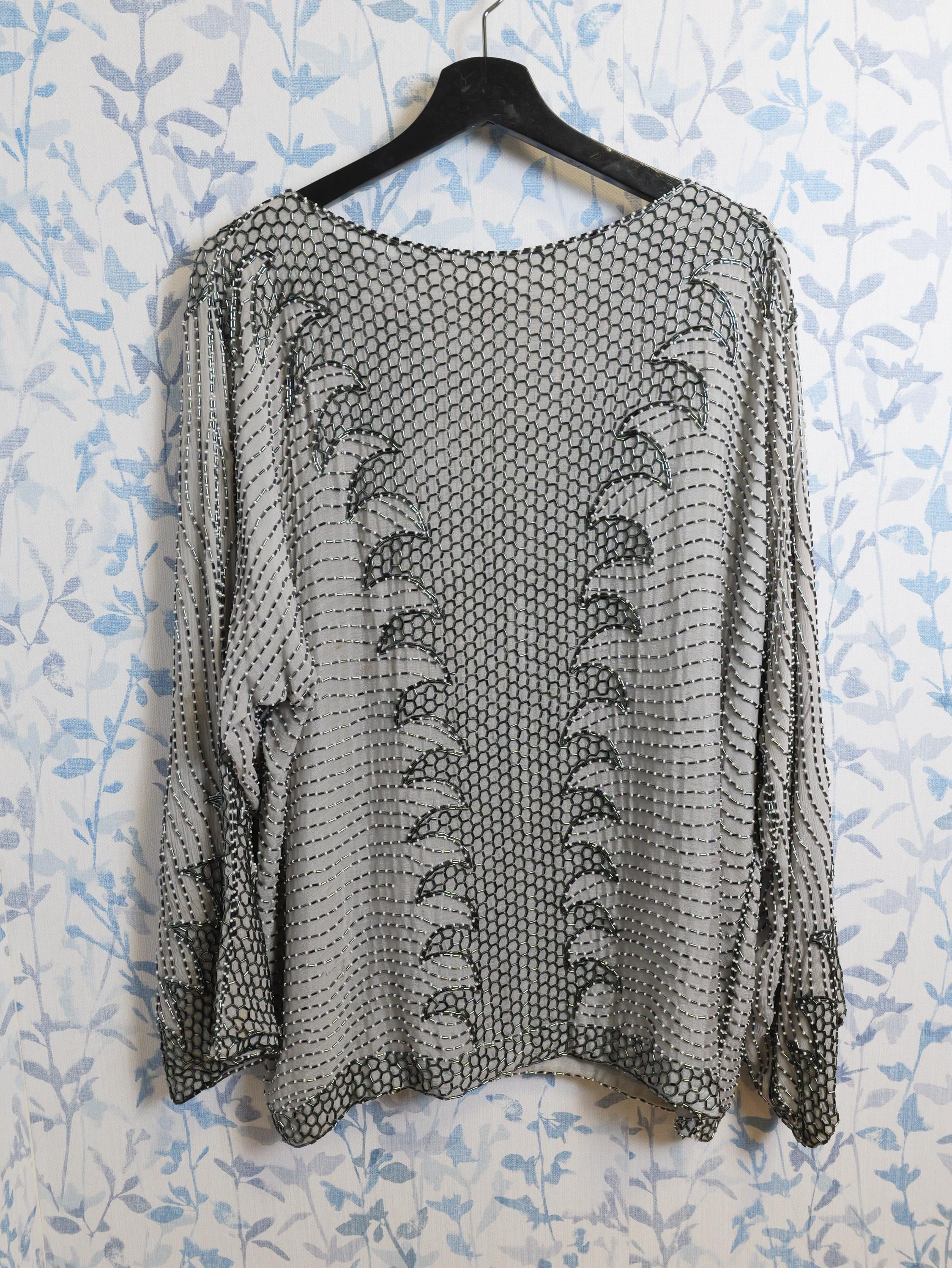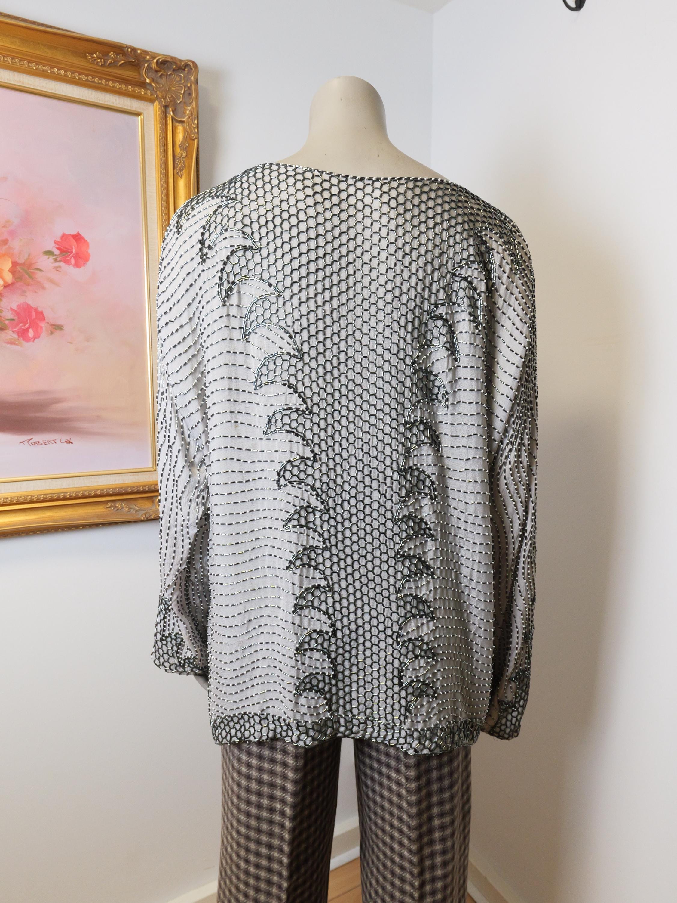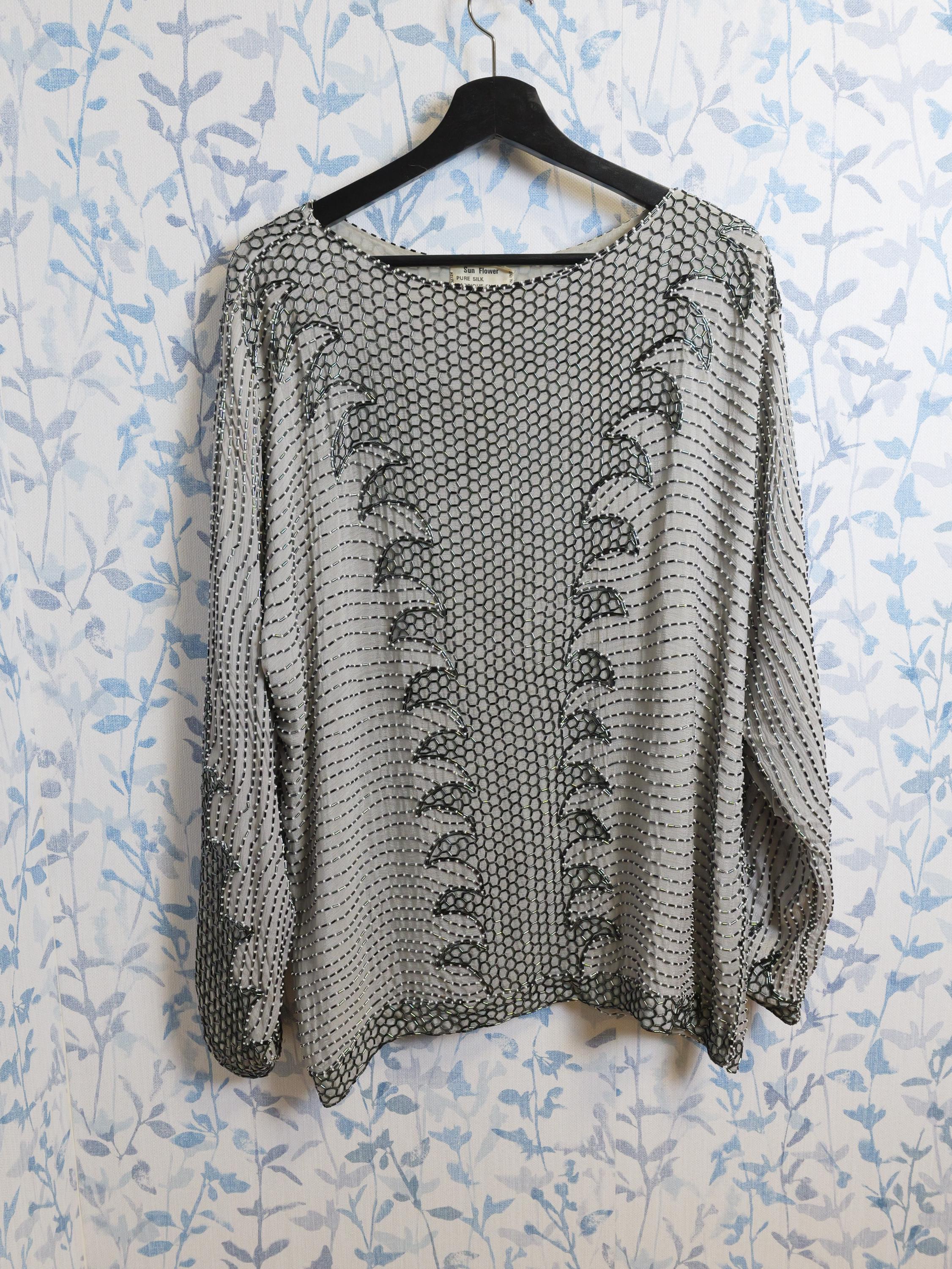 Lovely 100% silk tunic top completely covered in hand done bead work.