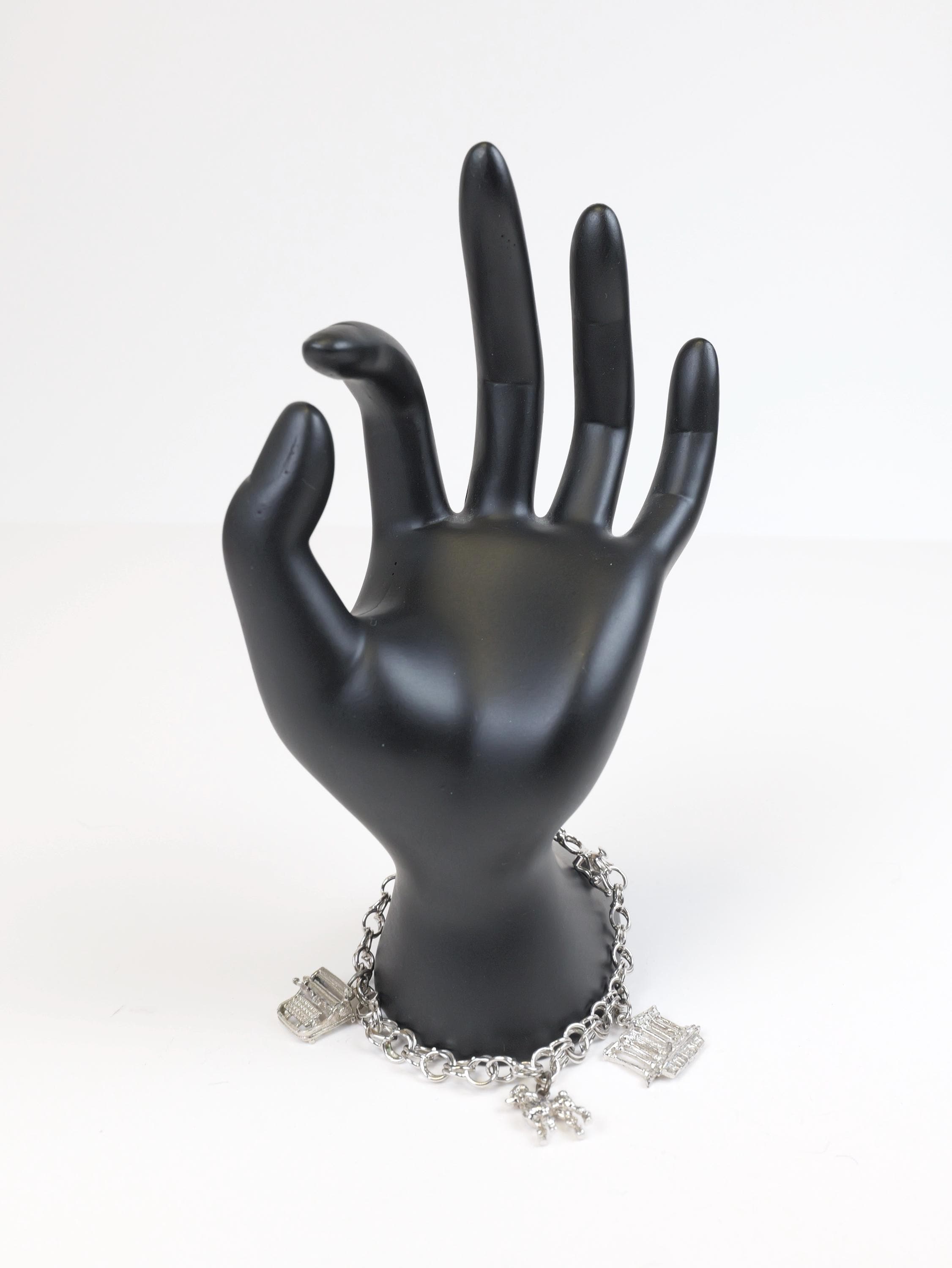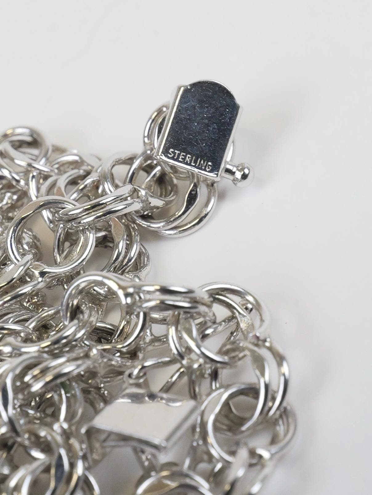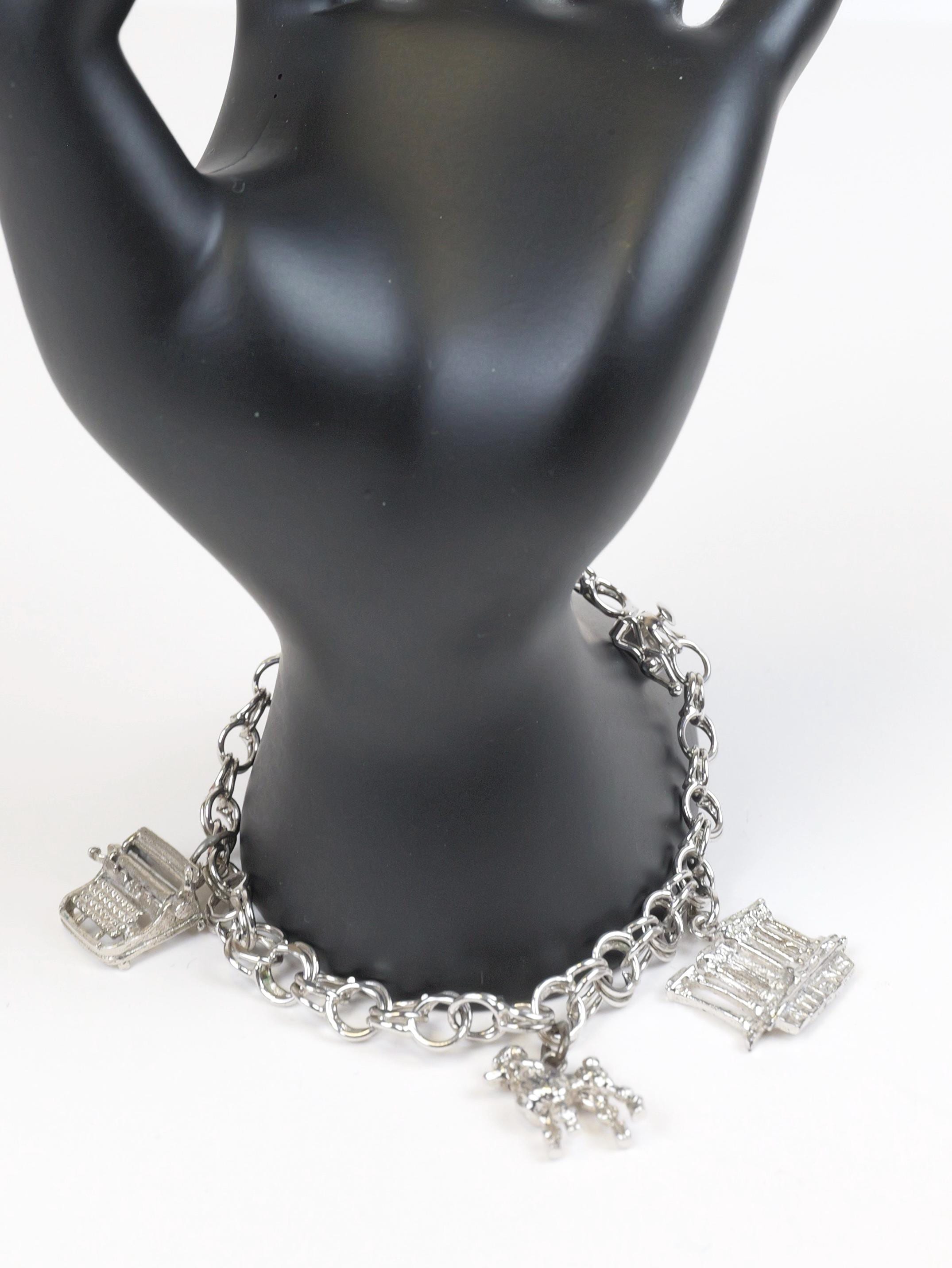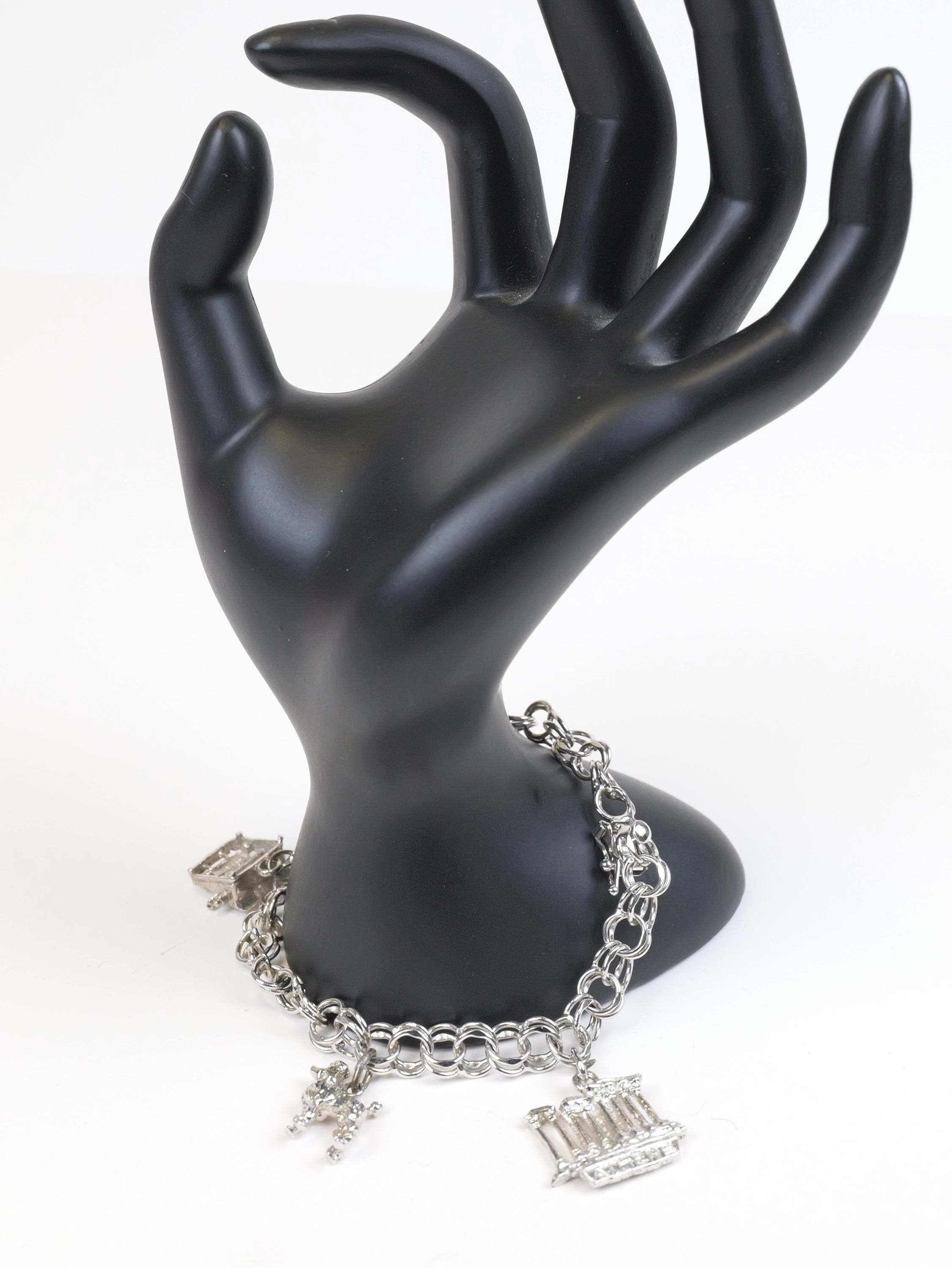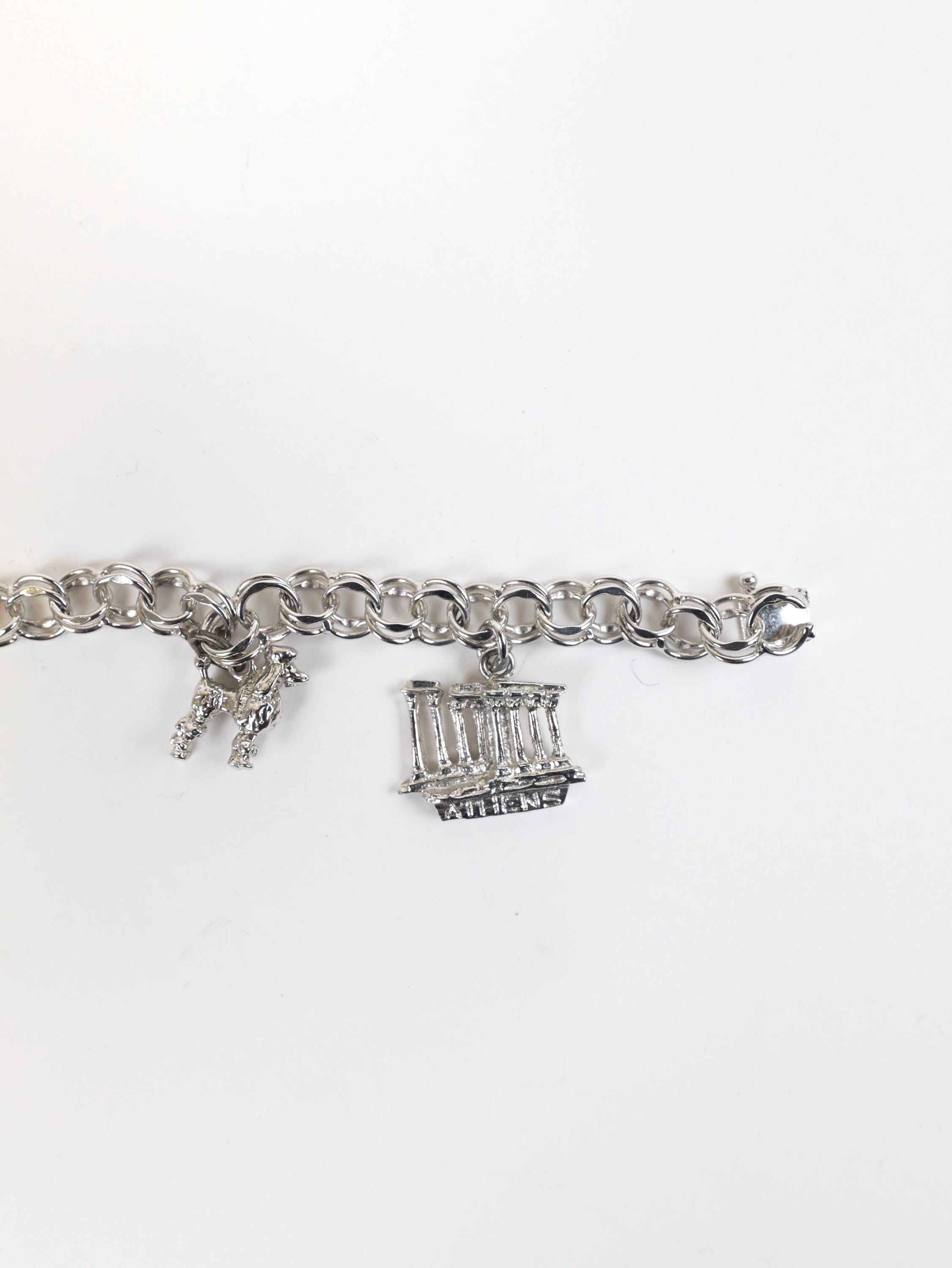 Vintage solid sterling silver chain link bracelet with three sterling charms.