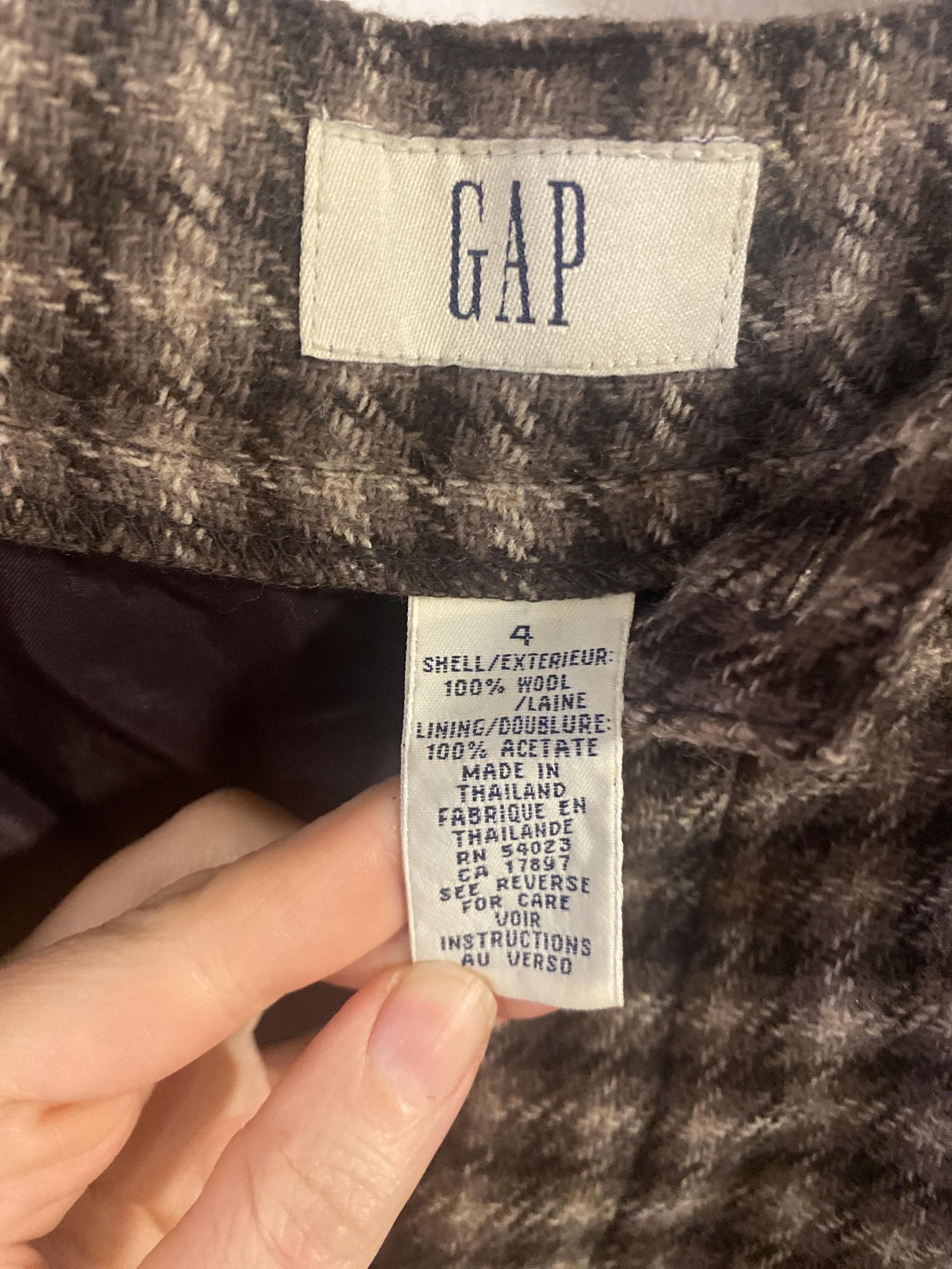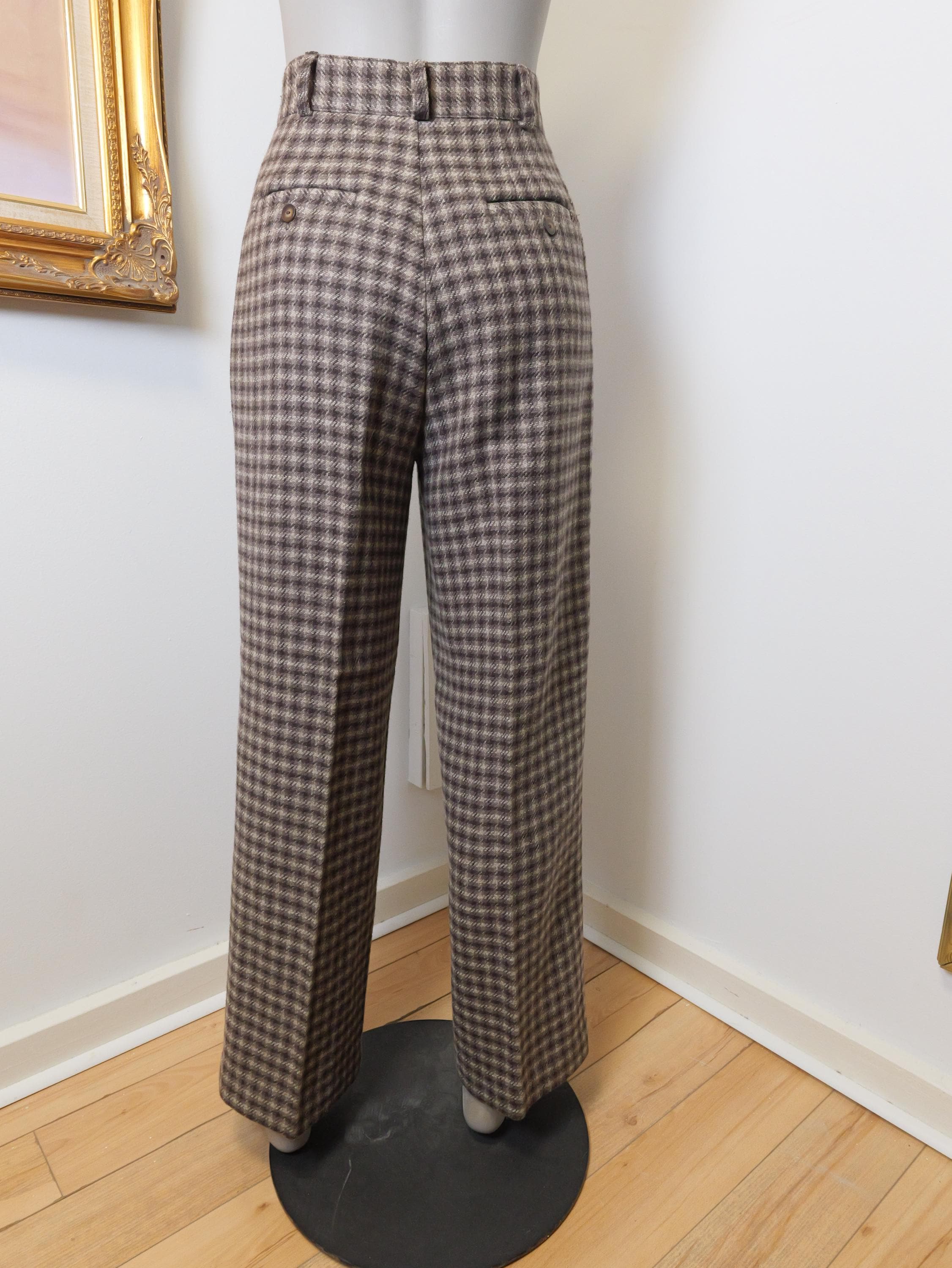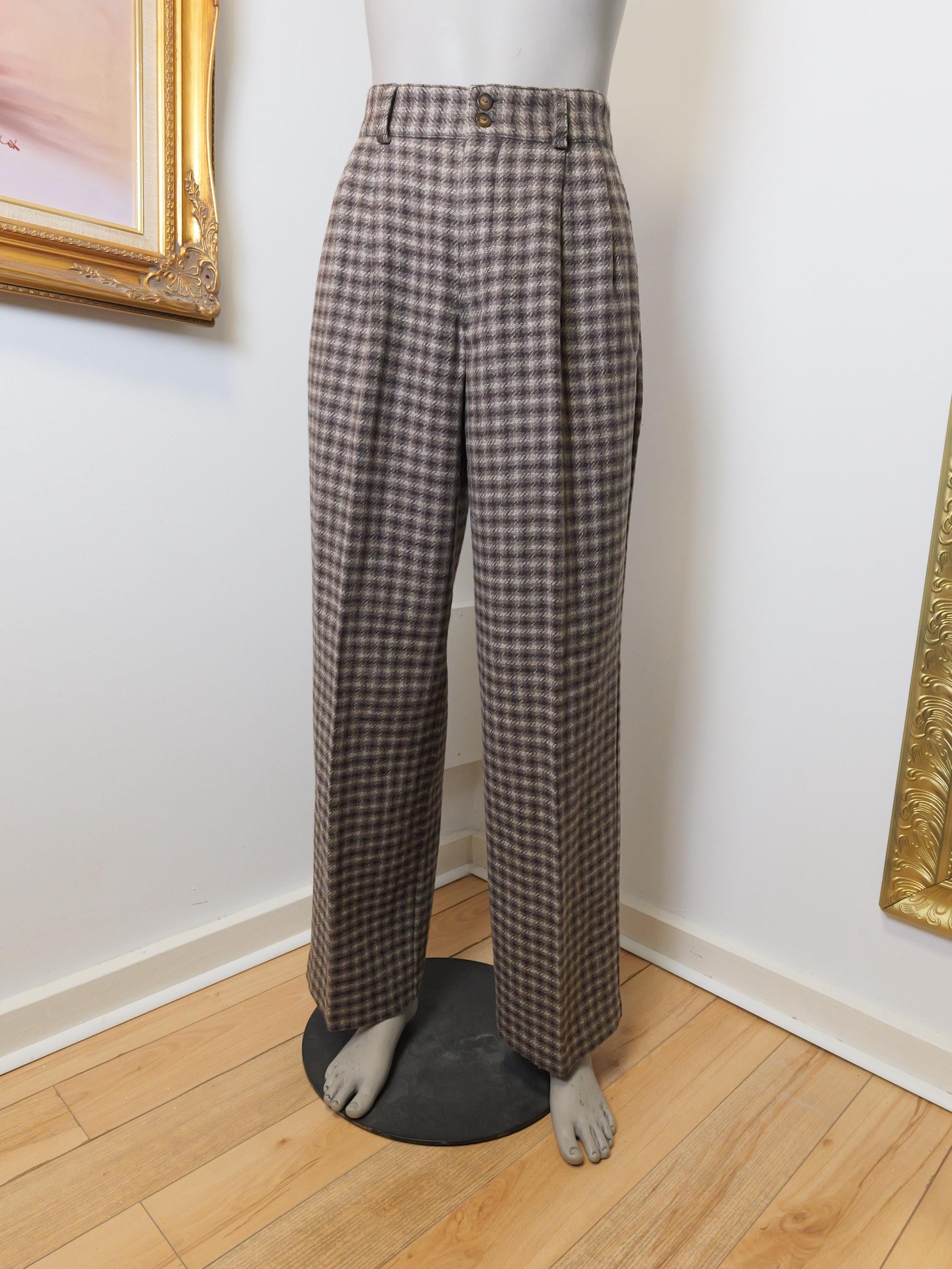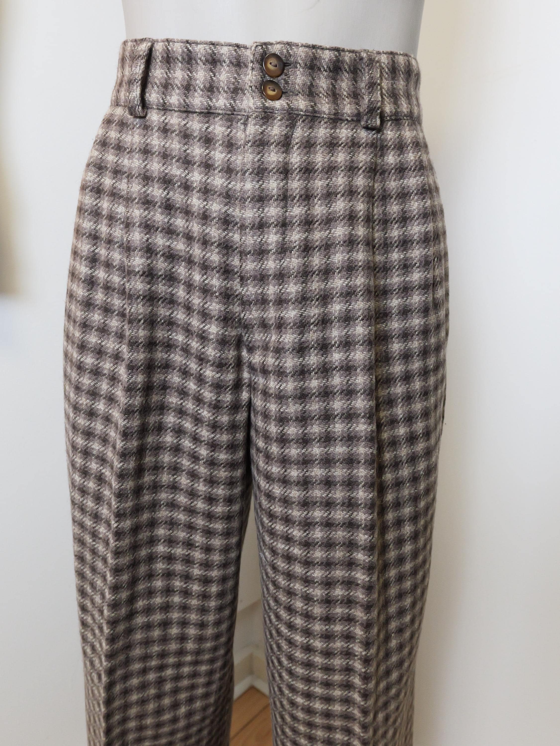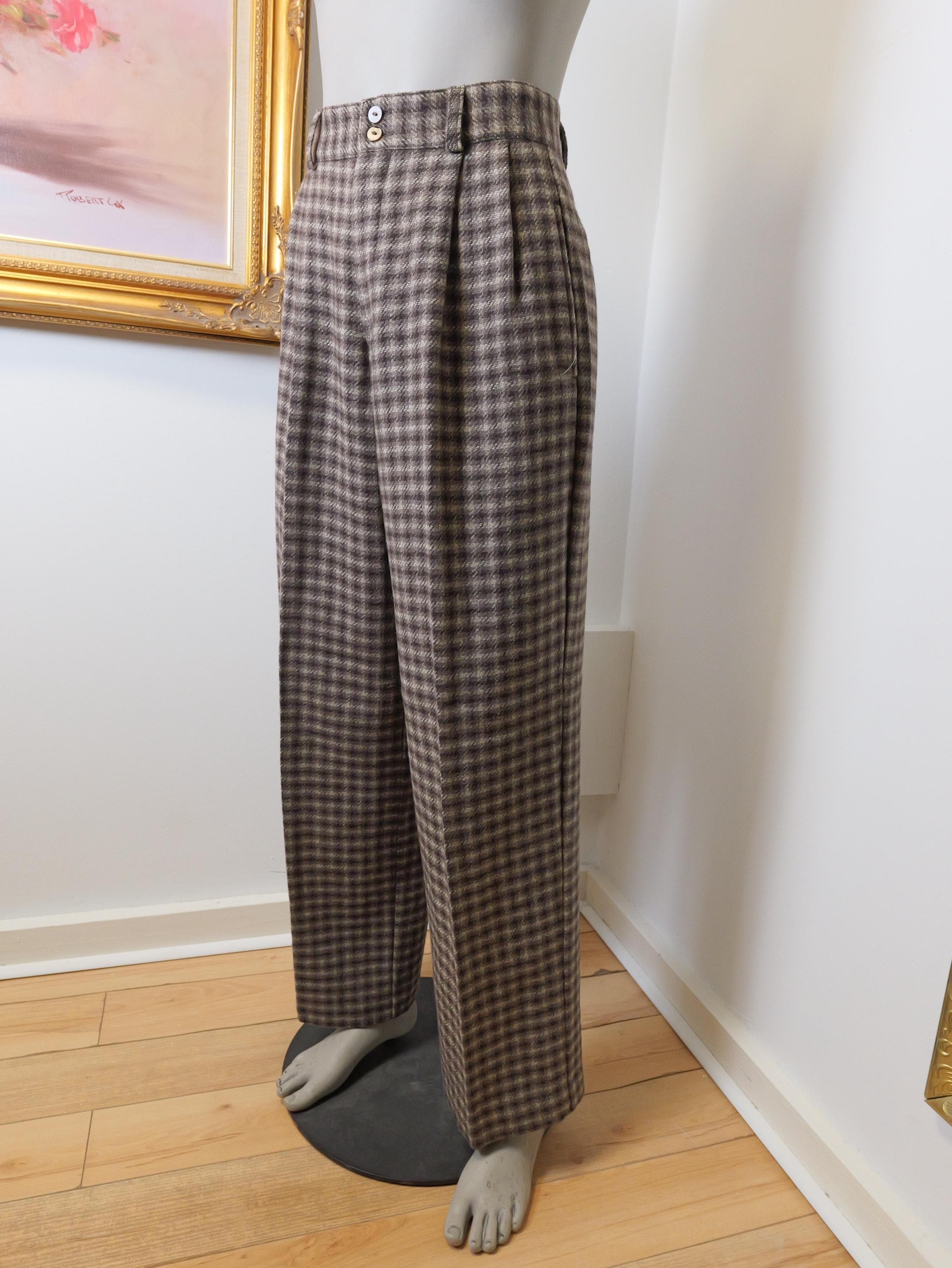 Authentic vintage GAP trousers in 100% wool brown plaid print.