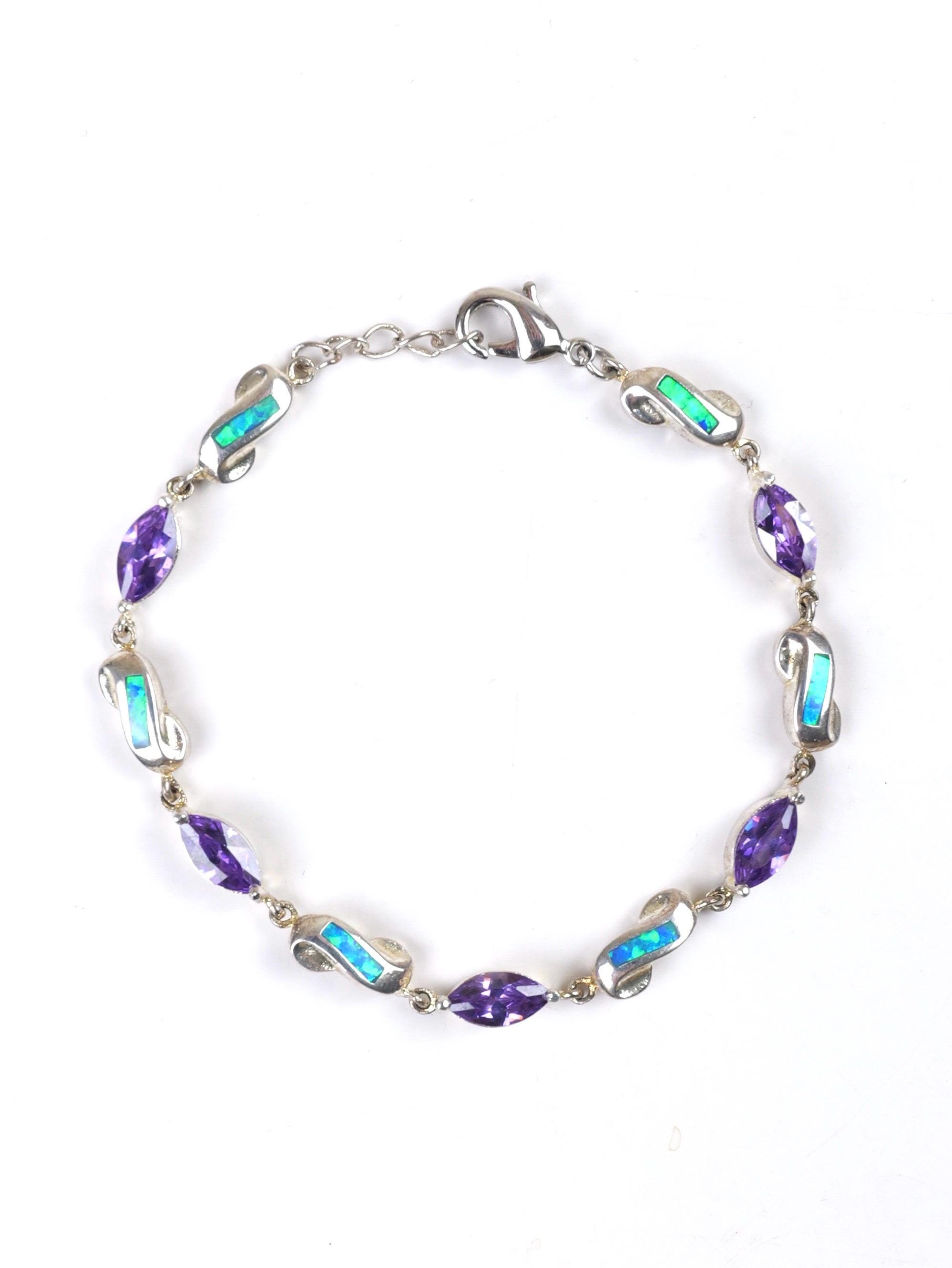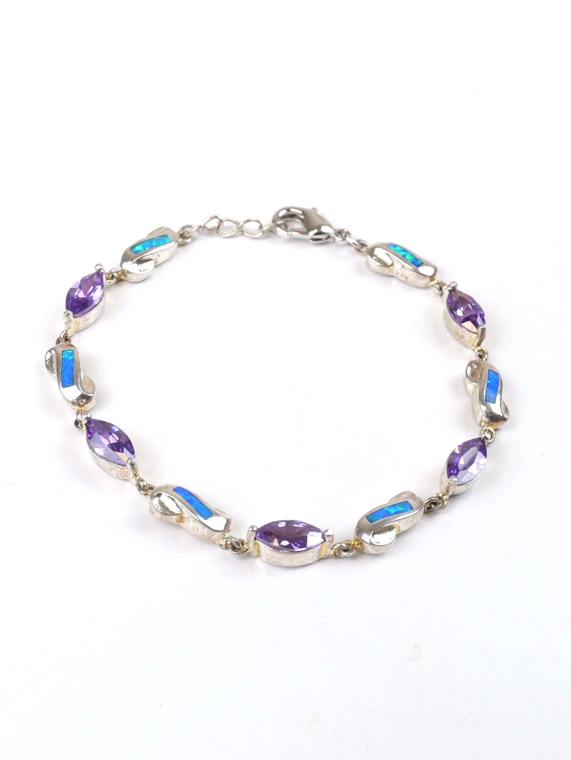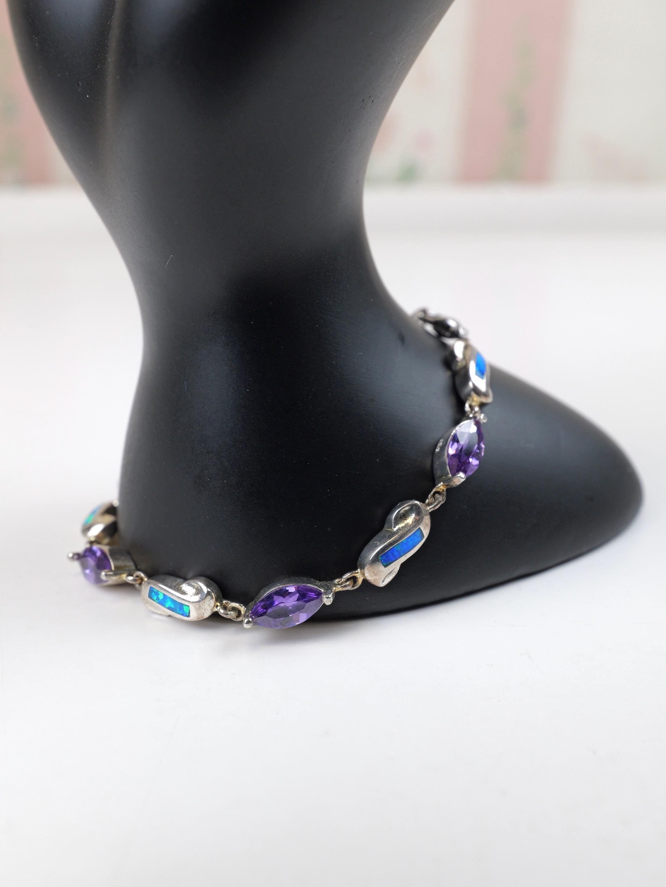 Faux blue opal and purple glass stones alternating in a really pretty pattern!