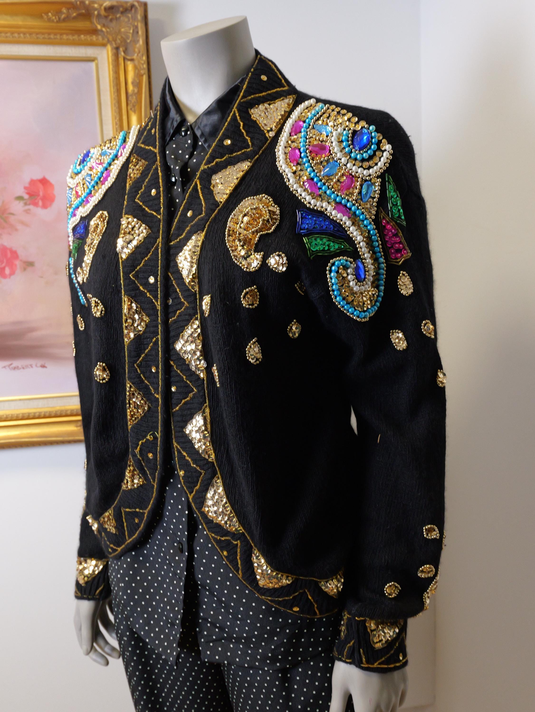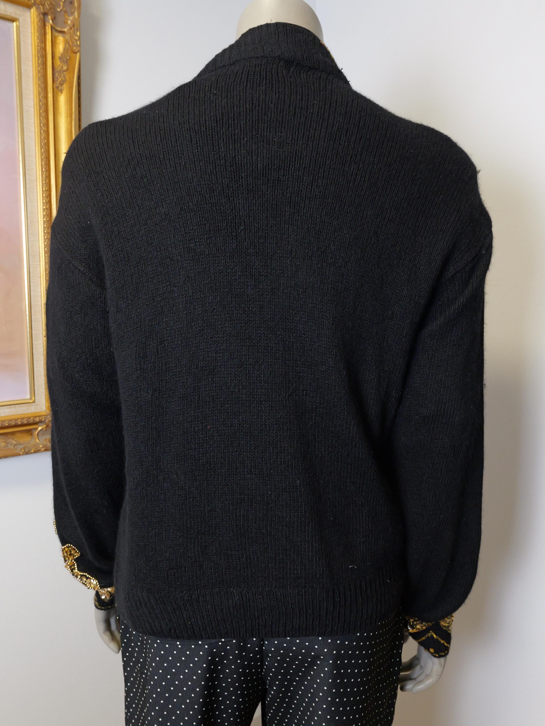 Vintage women’s black cardigan sweater with loads of pearls, beads and sequins.