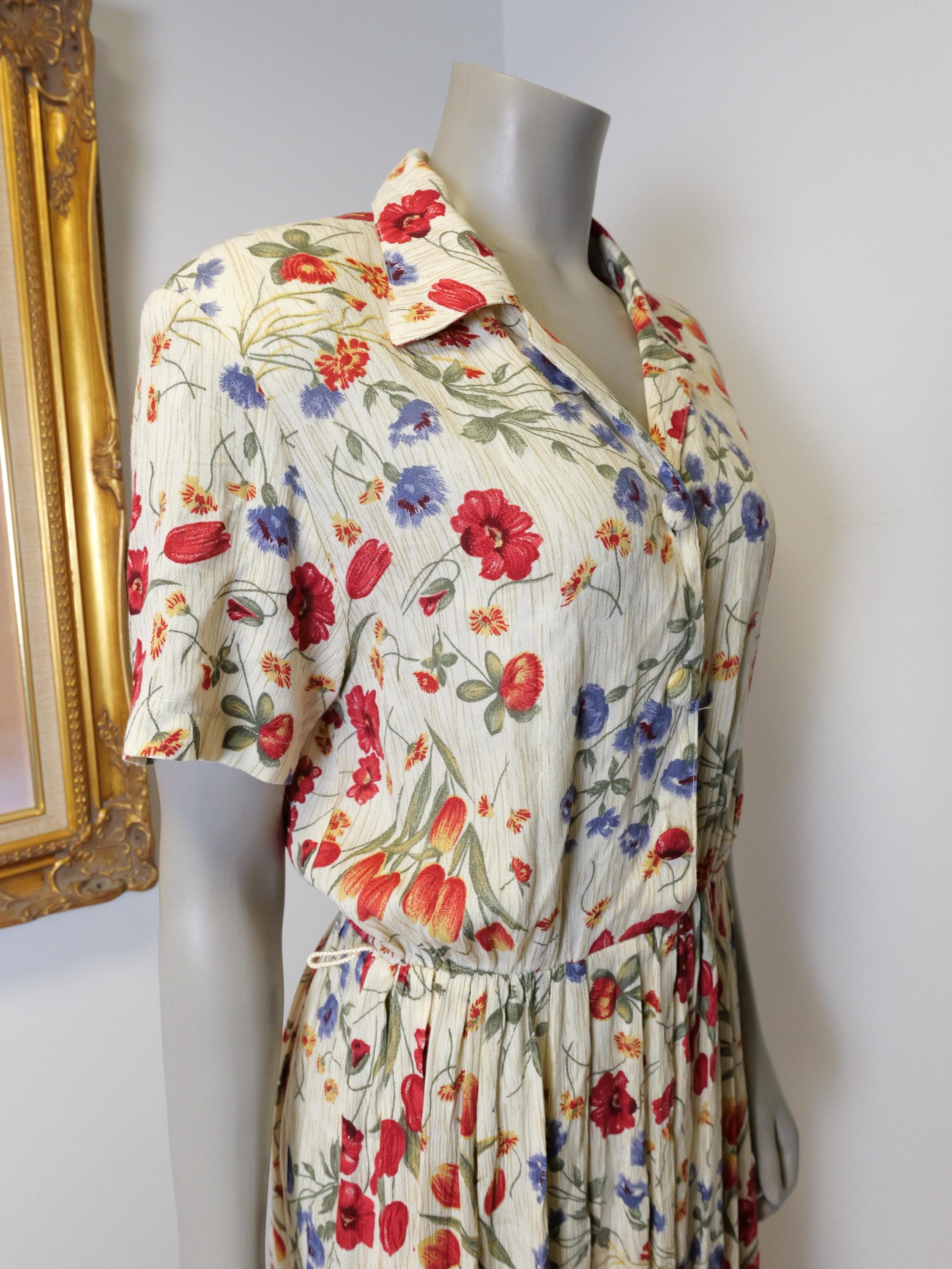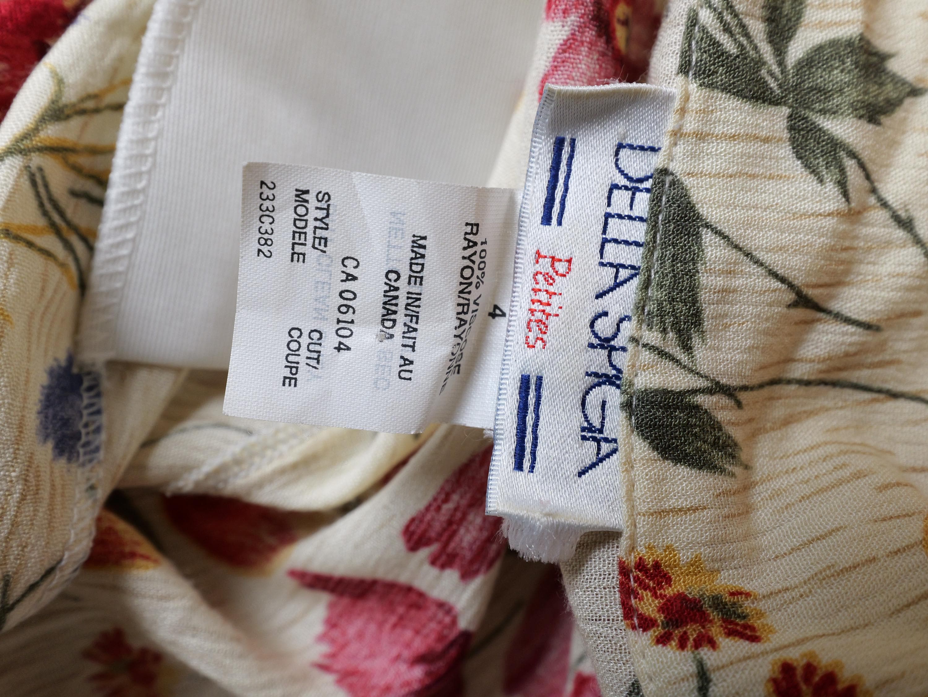 Marked a size 4. Will fit a modern Small to Medium. Has light shoulder pads that can be removed if desired.