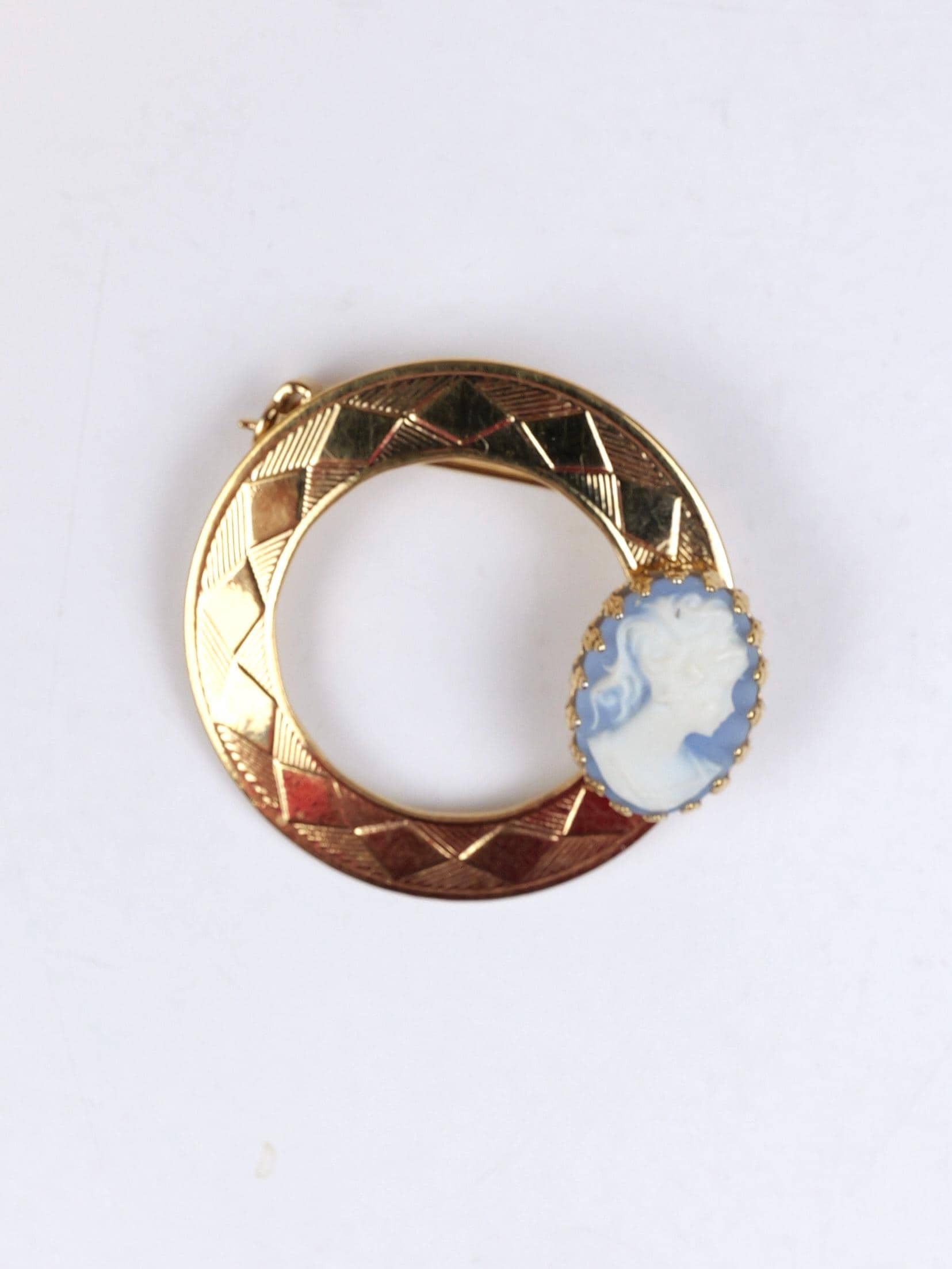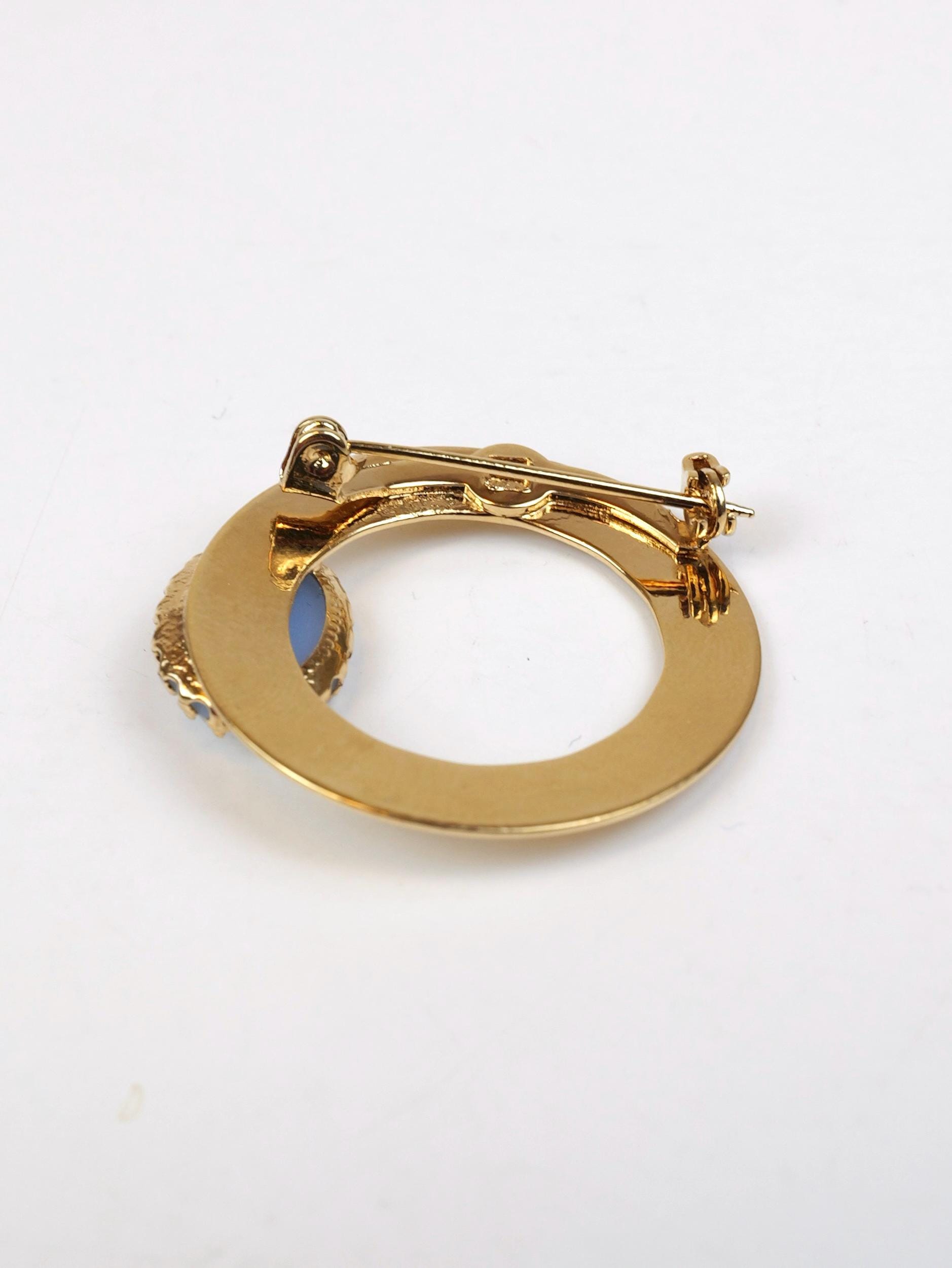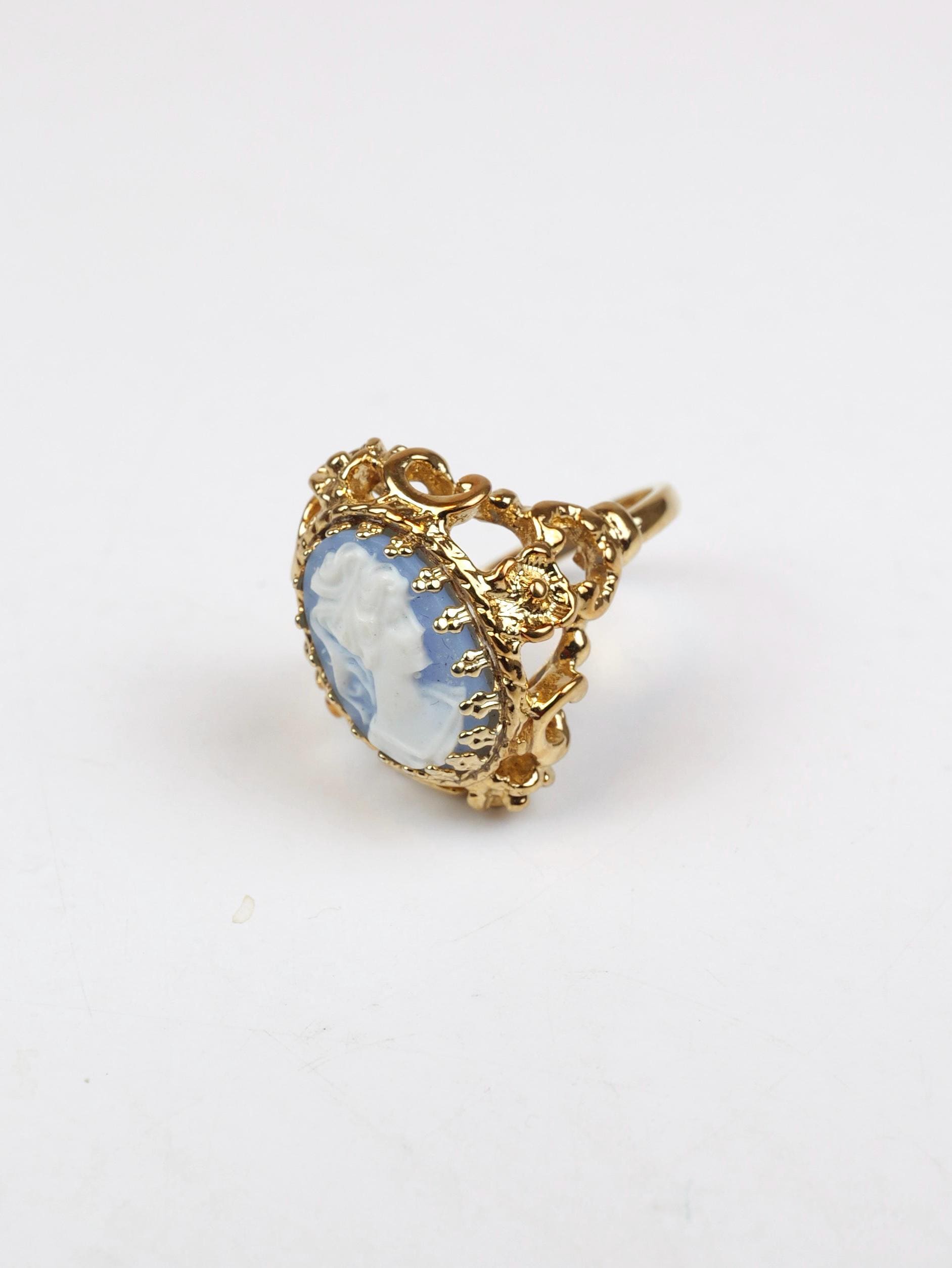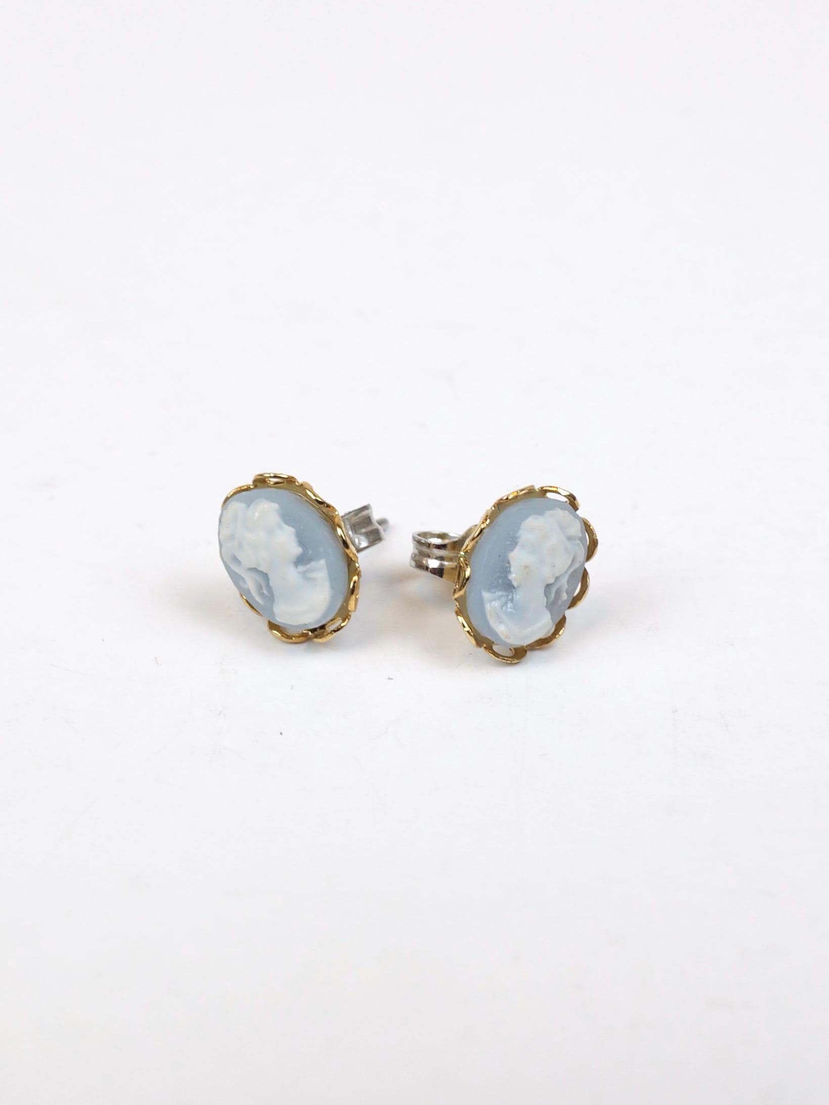 Blue Wedgwood style cameo's set in romantic 14k electroplated gold.