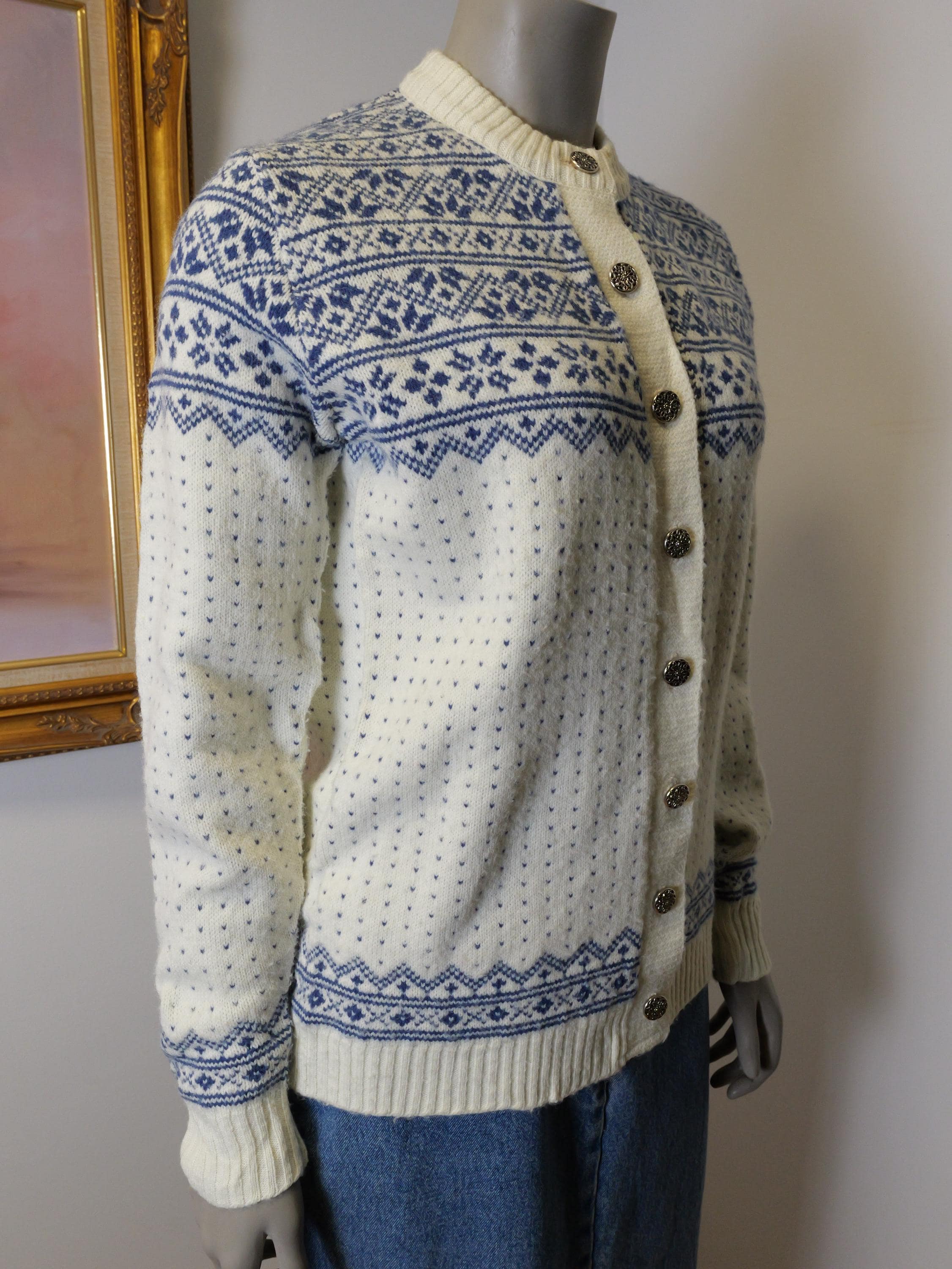 Vintage women’s 1960’s cardigain sweater with silver buttons.