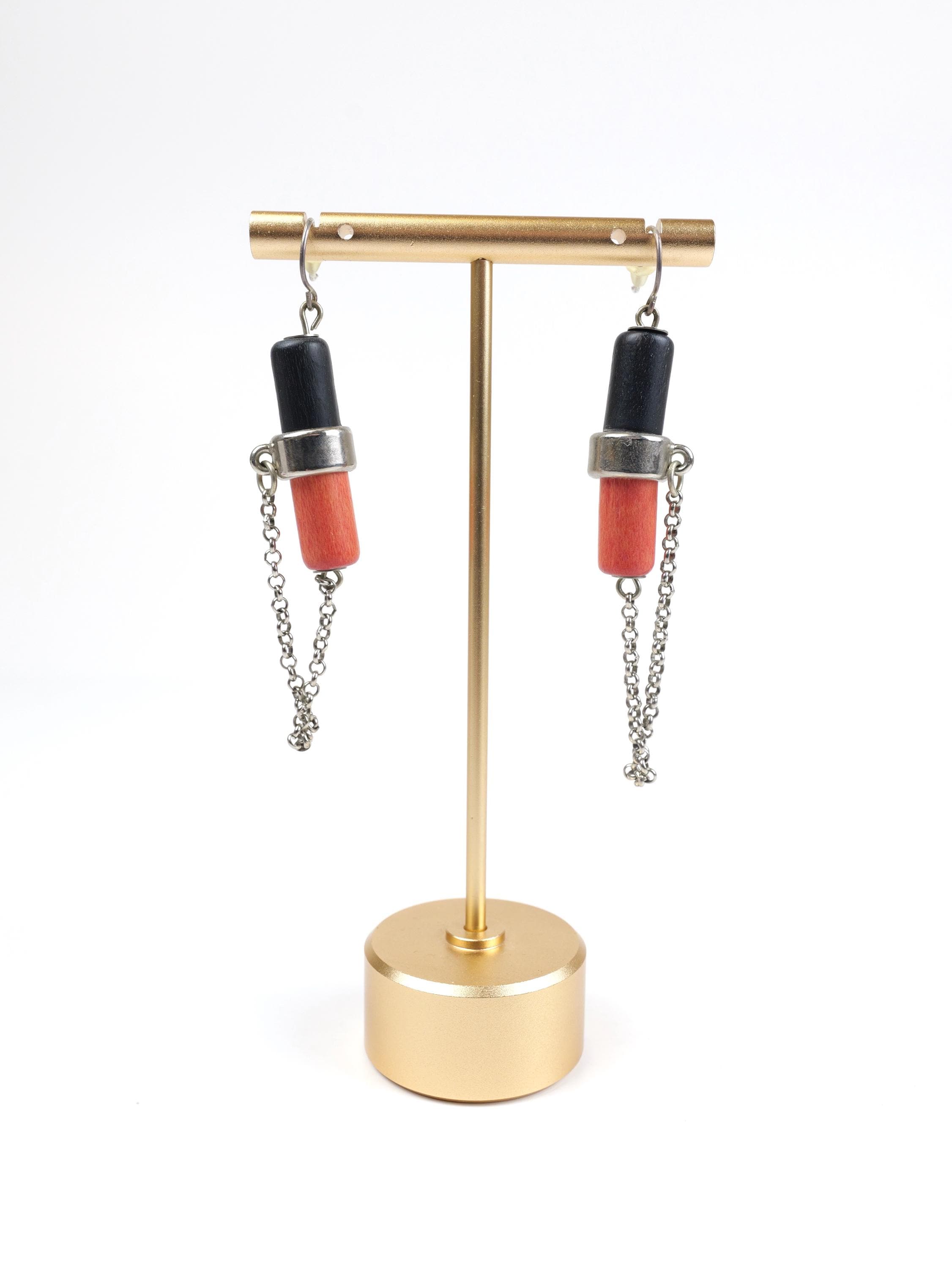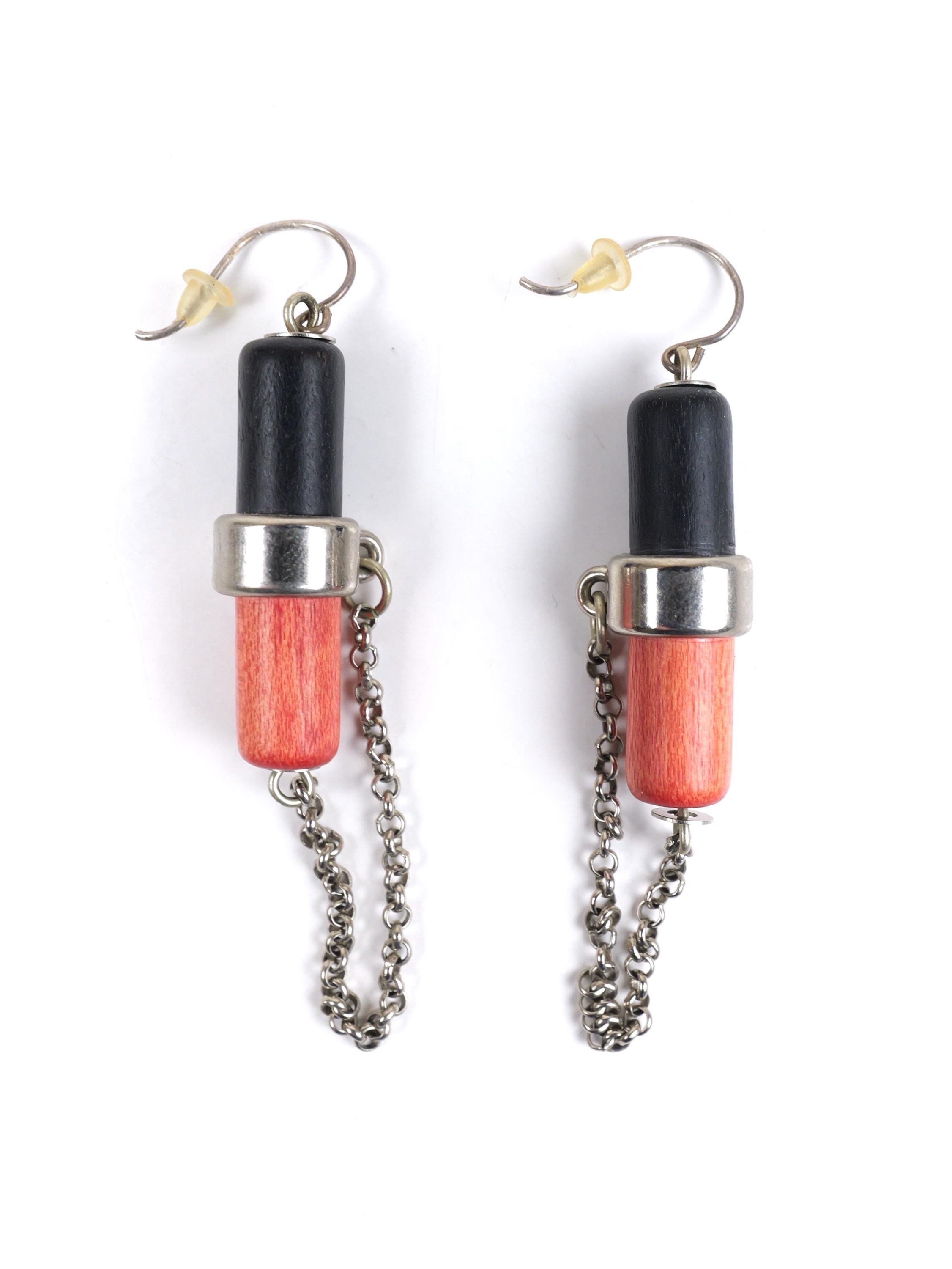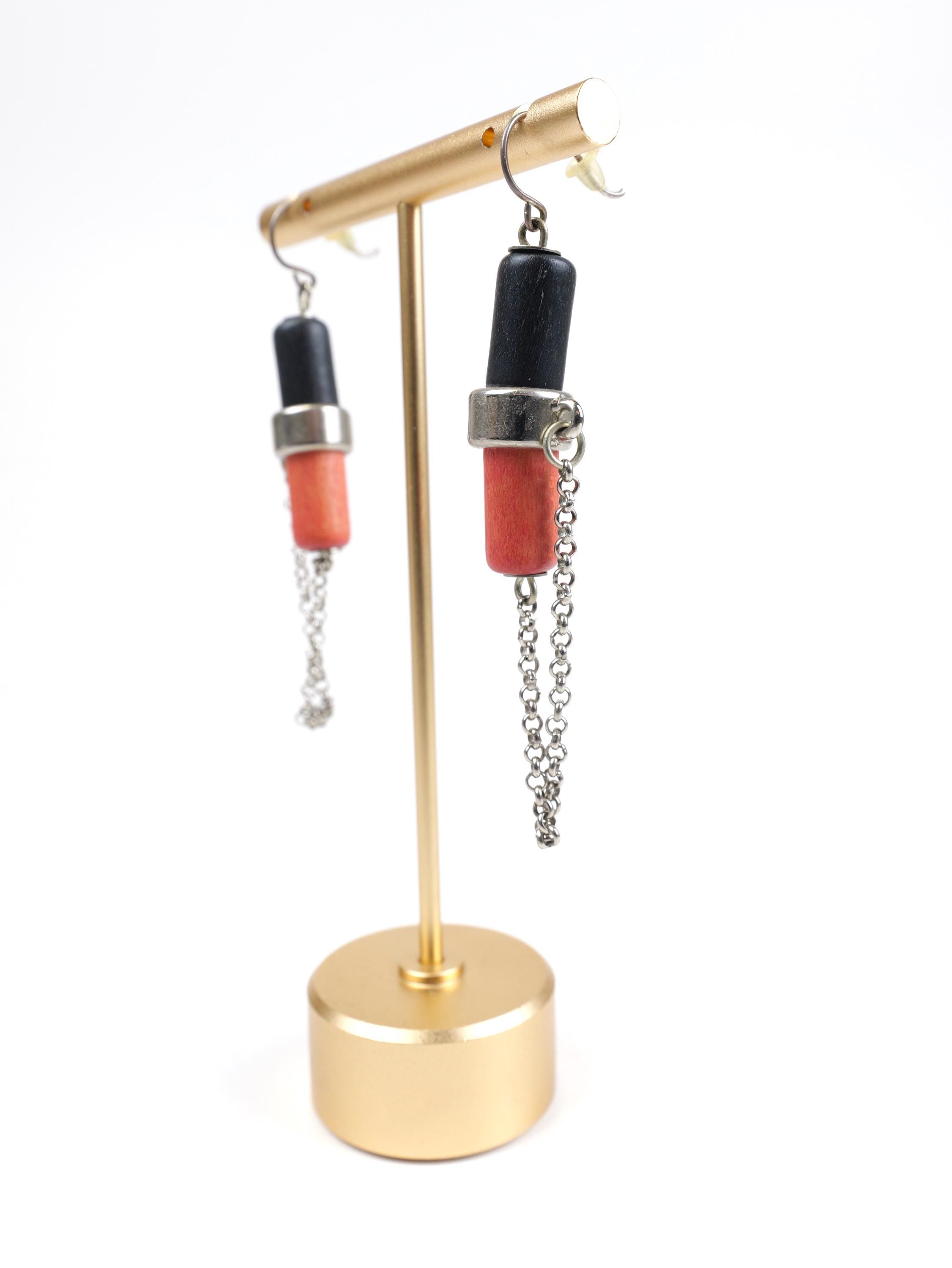 Vintage Aarikka Finland atomic geometric wooden earrings.