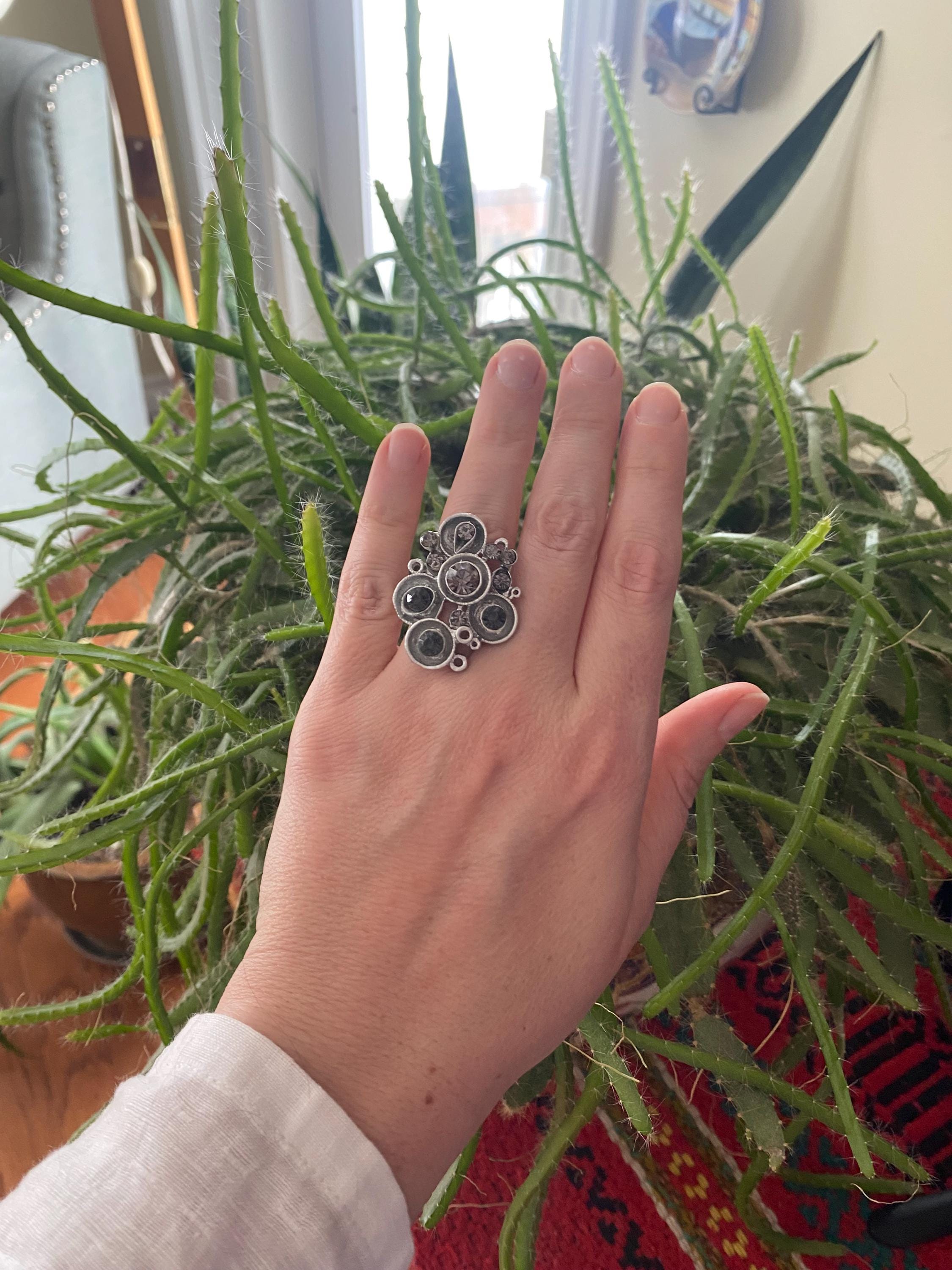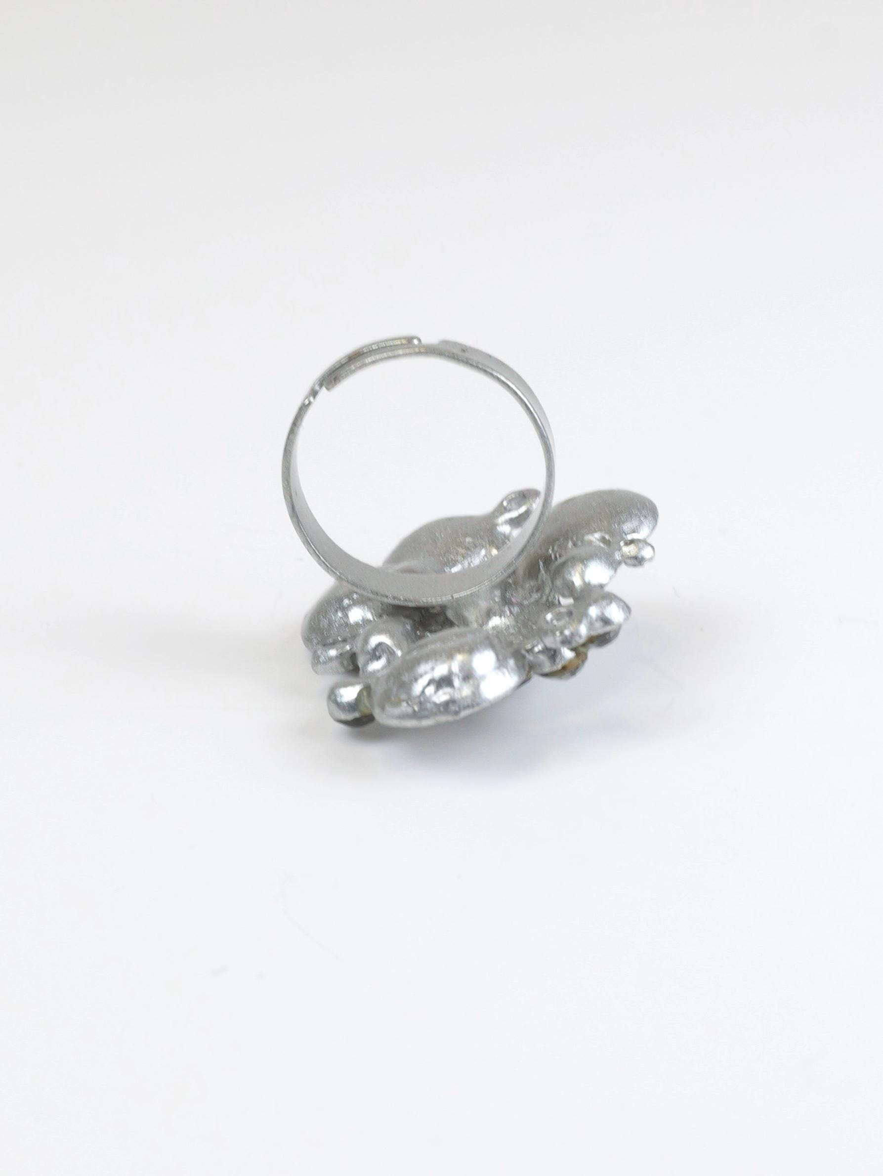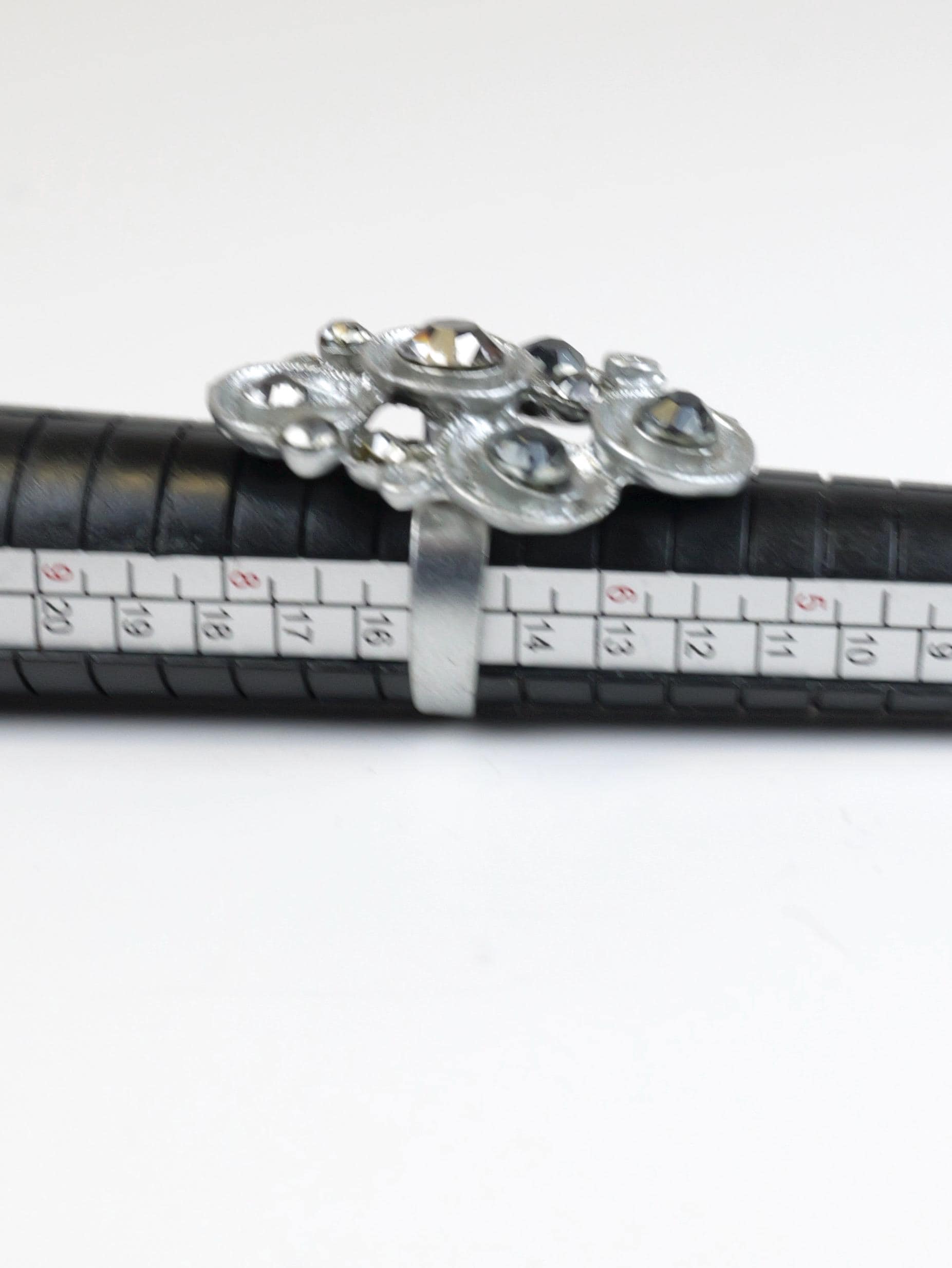 Large with a low profile, comfy to wear! Adjustable ring fit around a size 7 and larger.