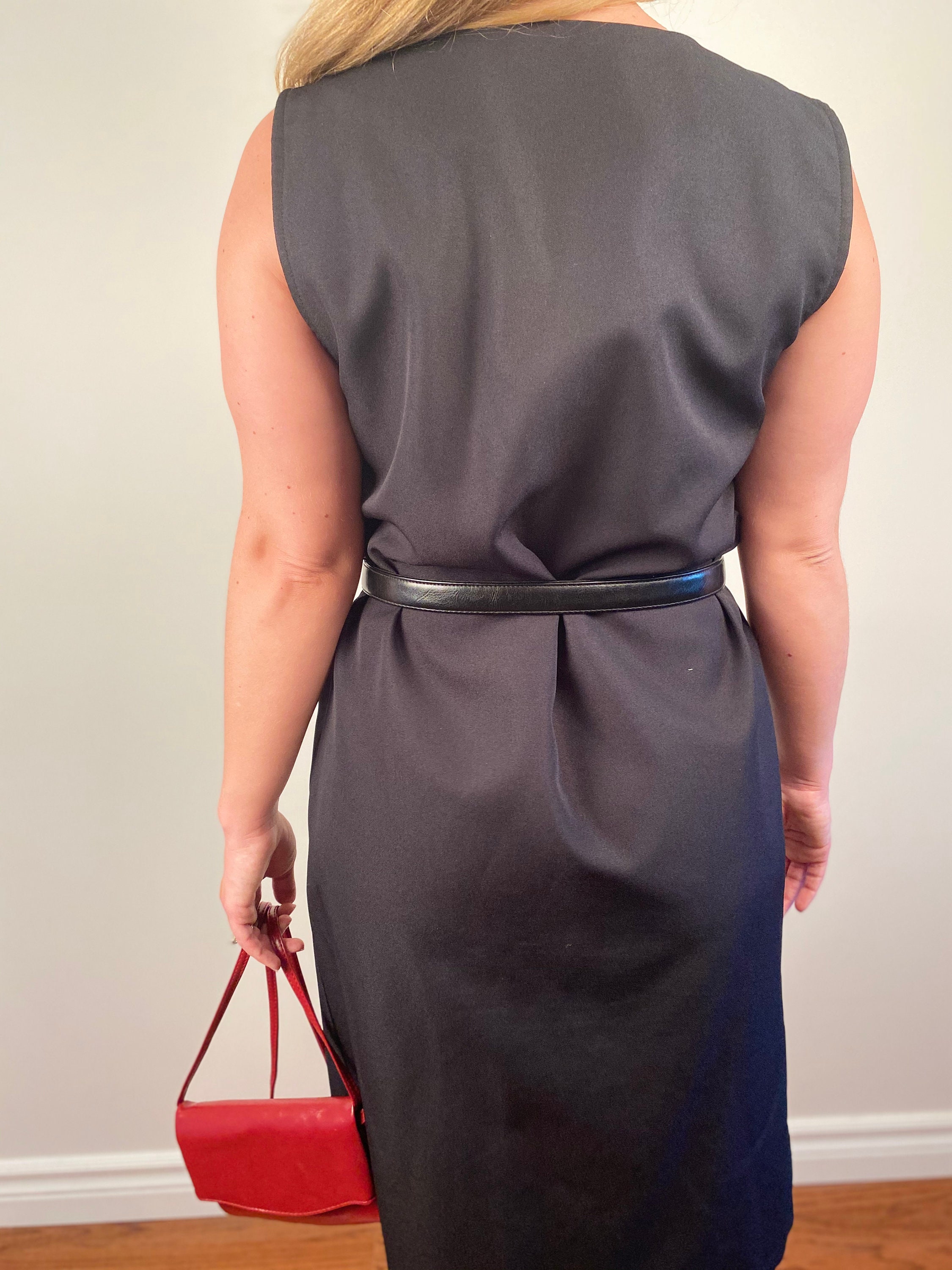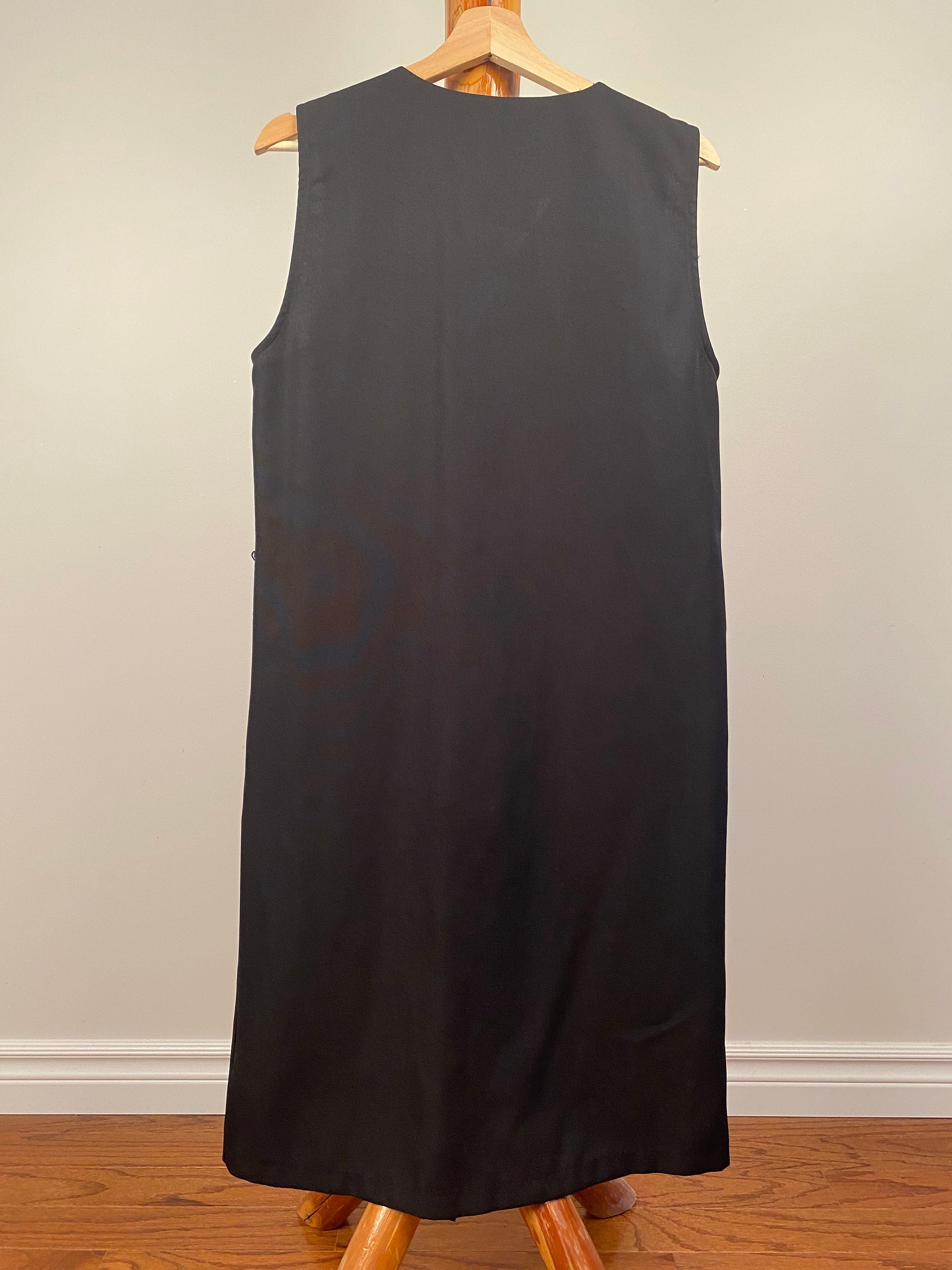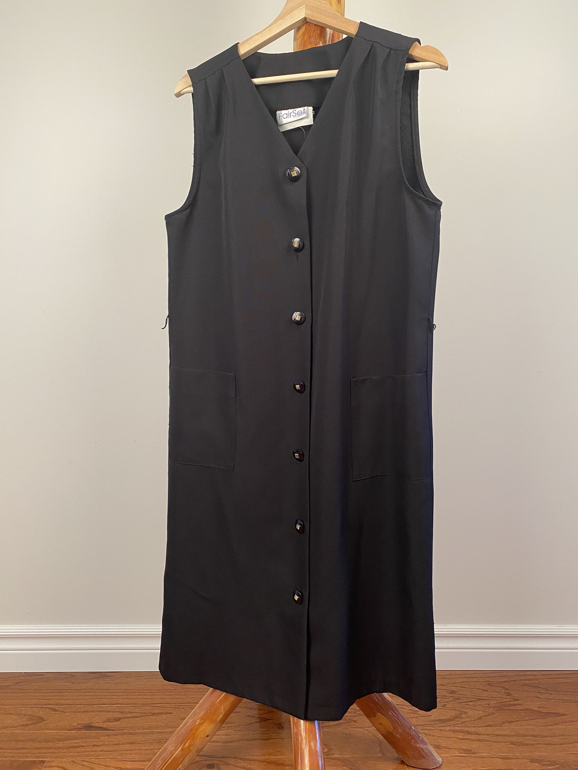 Fits 8 to 10 Size Medium by todays standards. Would look cute with a turtle neck and boots for fall!